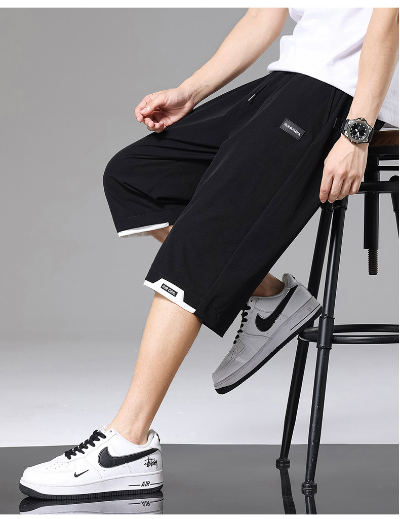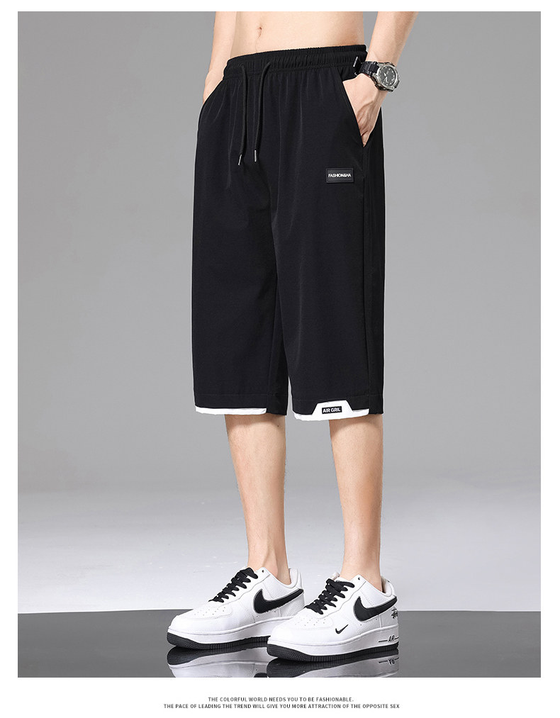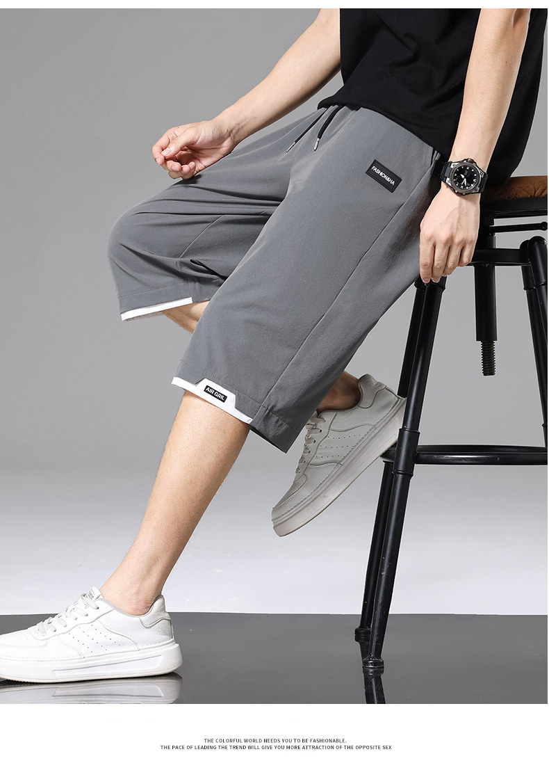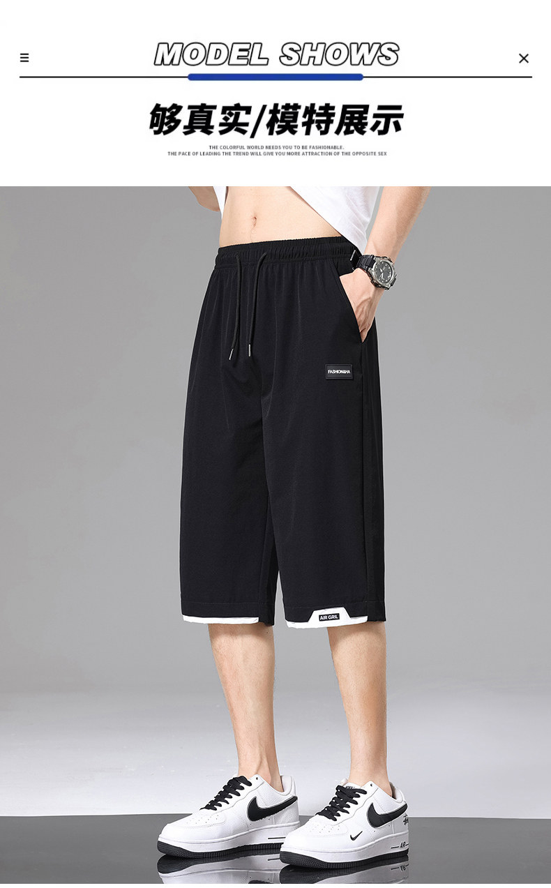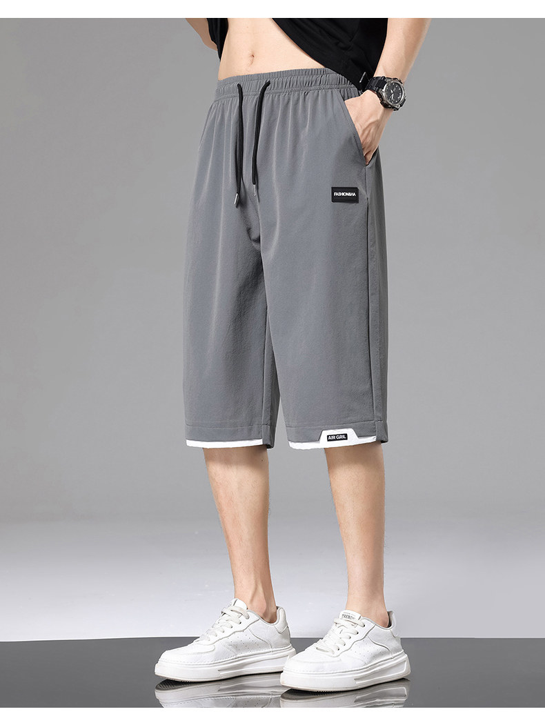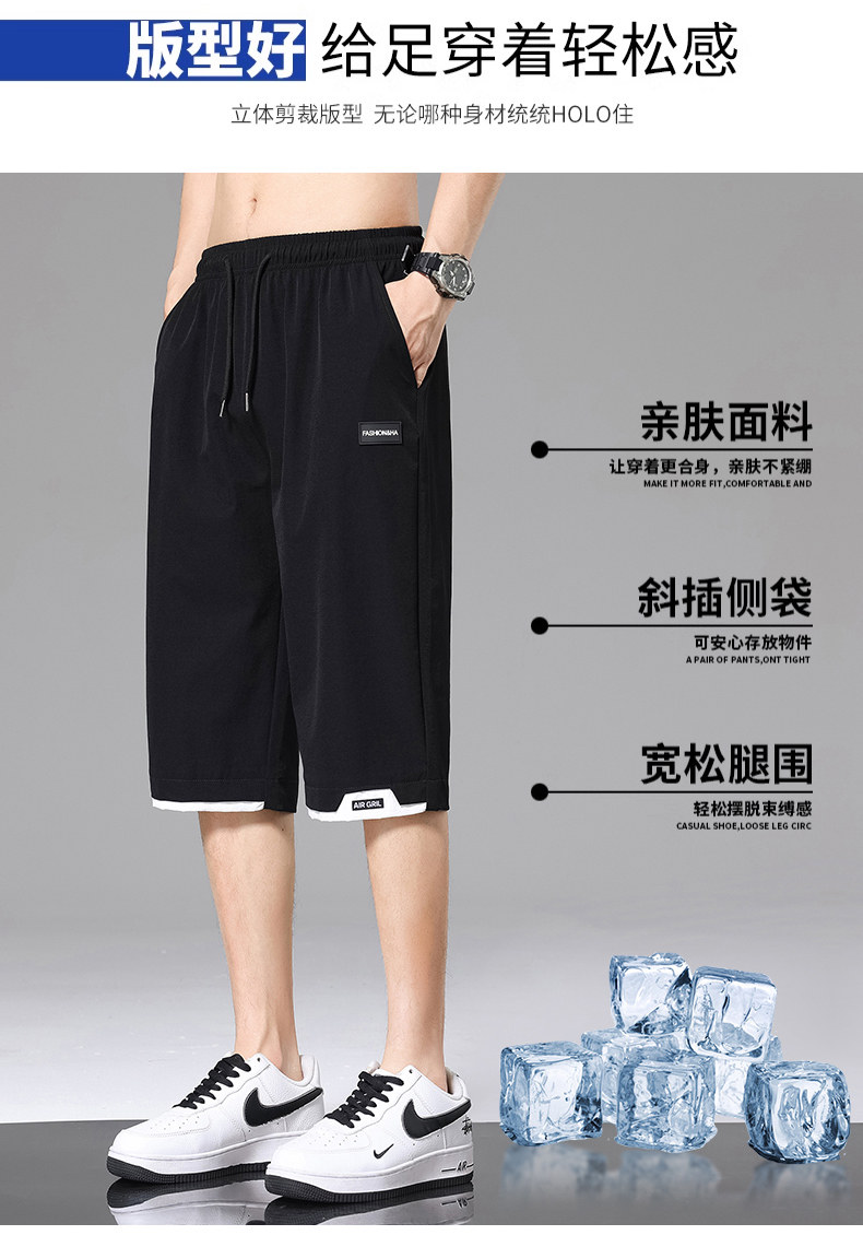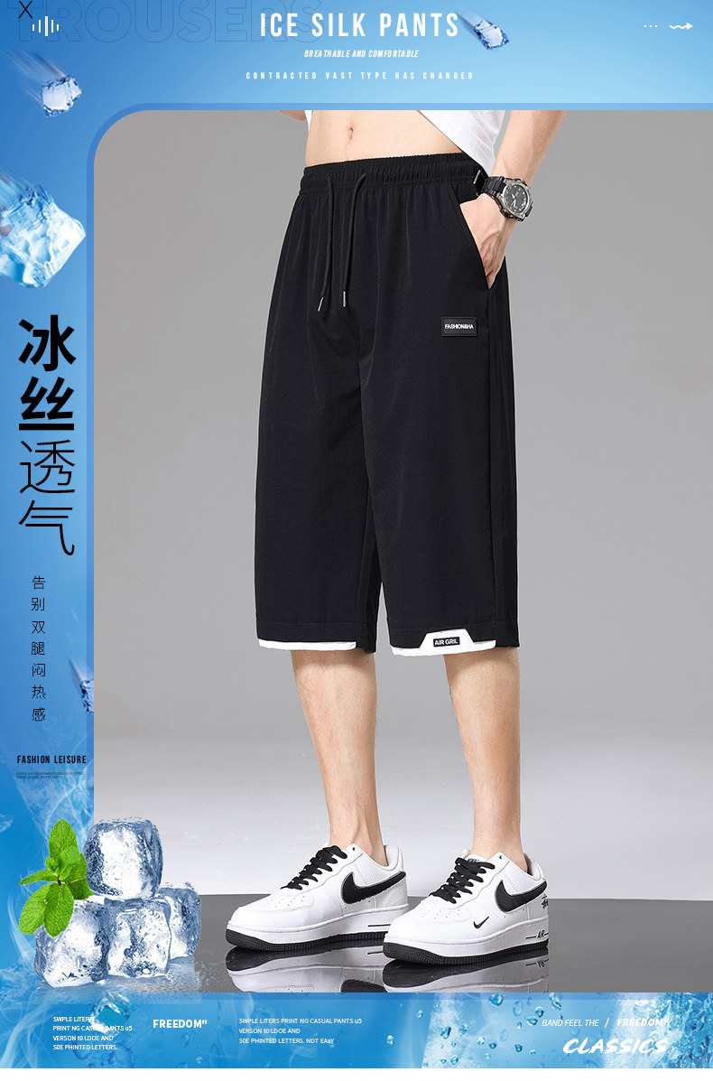 Summer Quick-Drying Ice Silk 7-Point Shorts for Men, Trendy Brand, Teenagers, Middle and High School Students, Casual Sports 8-Point Pants