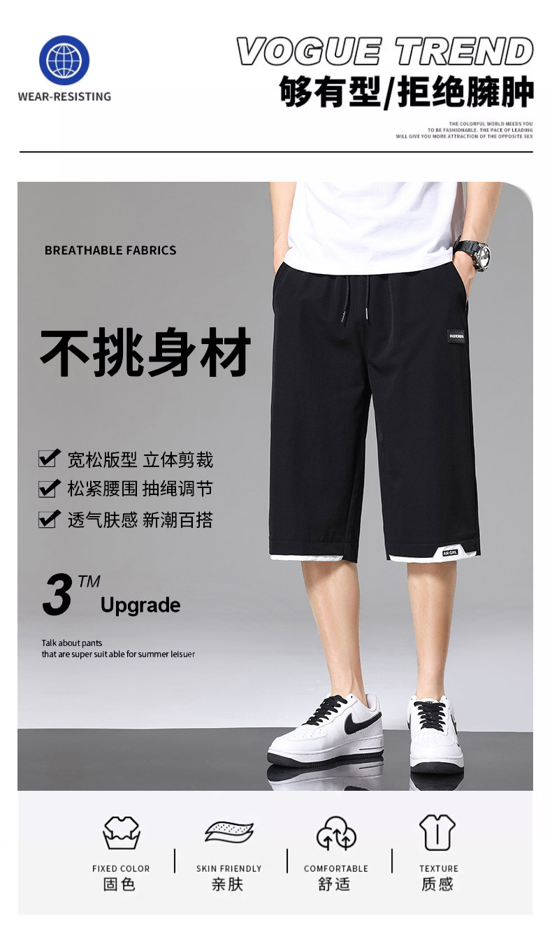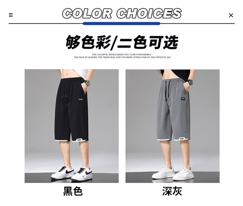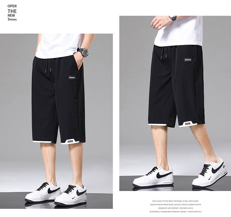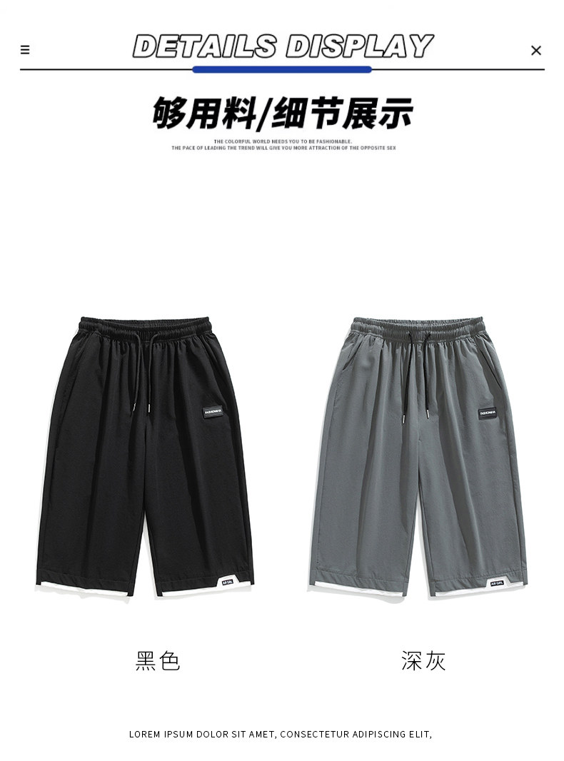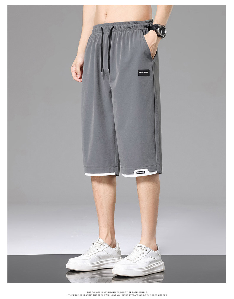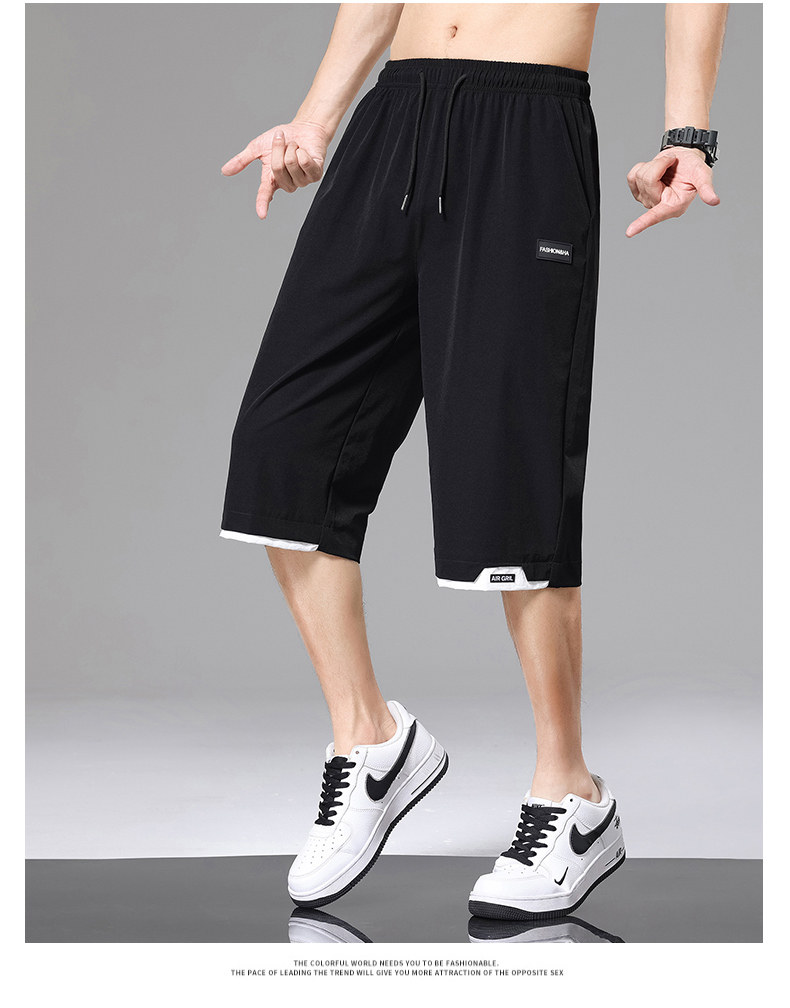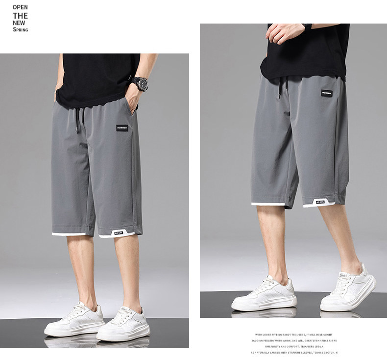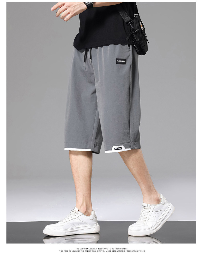 Summer Quick-Drying Ice Silk 7-Point Shorts for Men, Trendy Brand, Teenagers, Middle and High School Students, Casual Sports 8-Point Pants