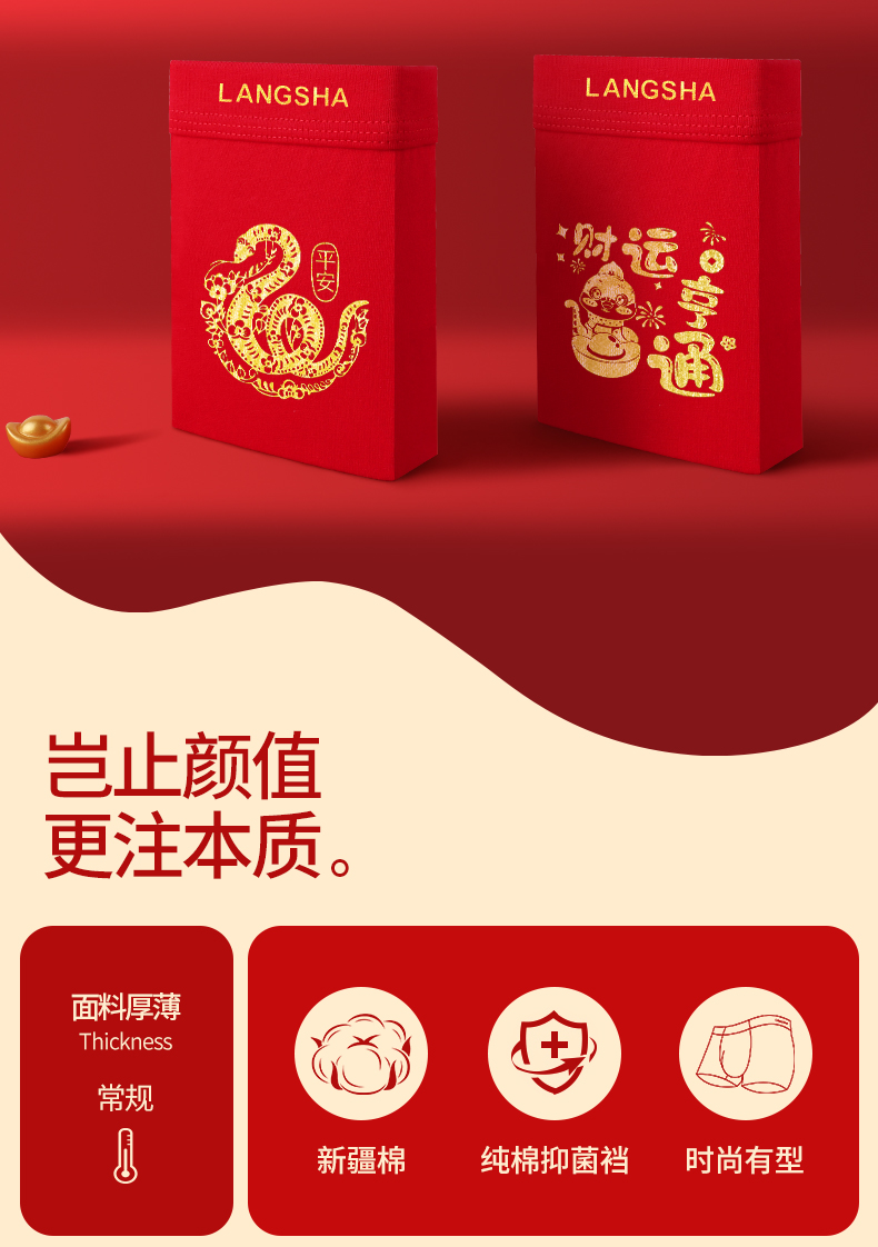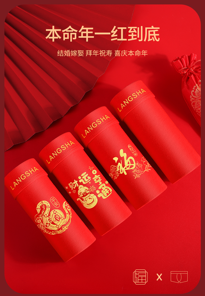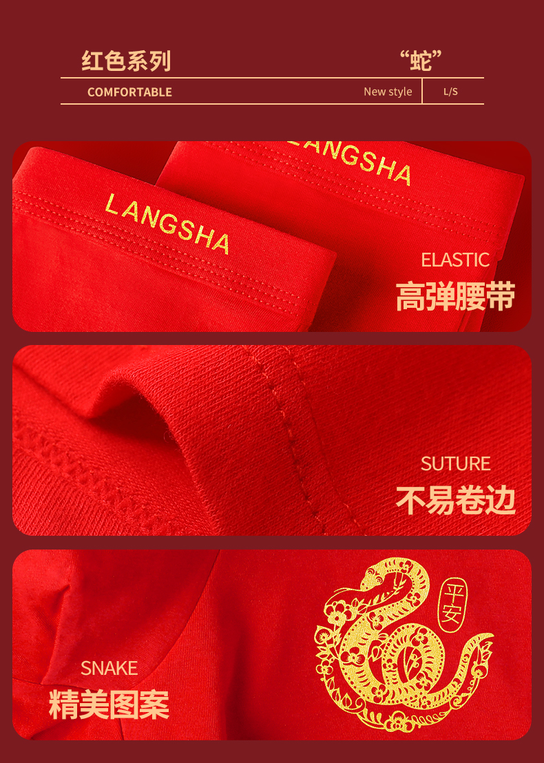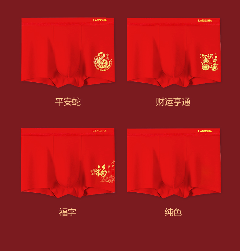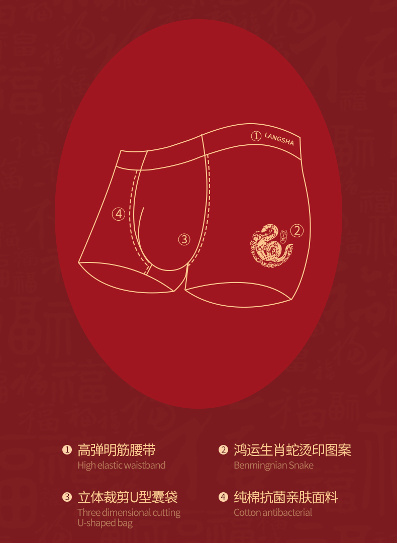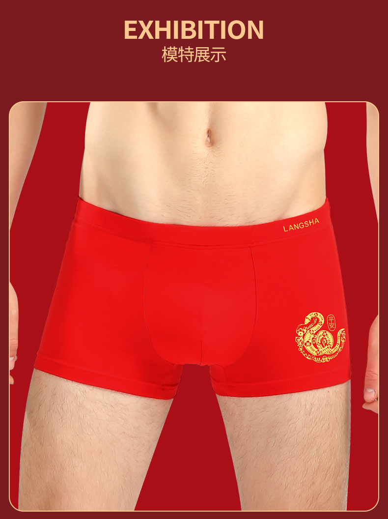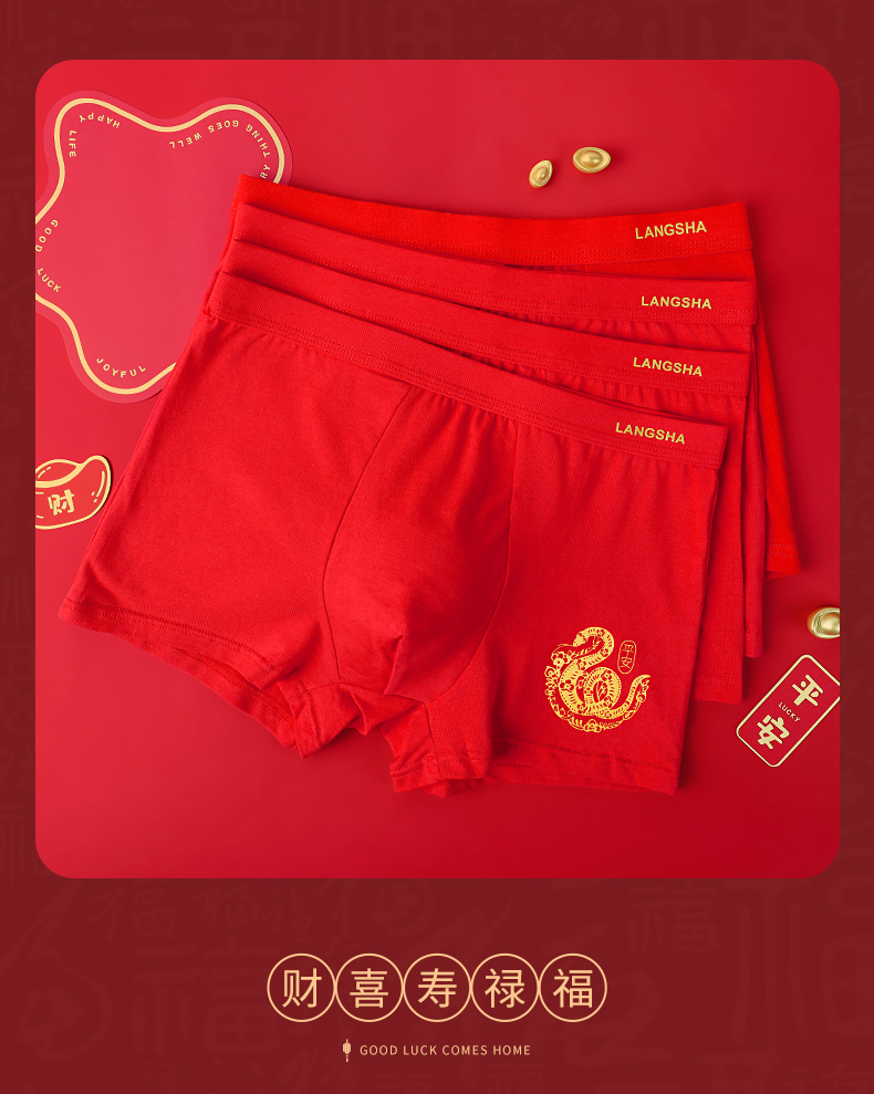 Langsha's Zodiac Year Men Underwear pure cotton Red Year of the Snake Boys' Wedding Socks Suit Cotton Four Corners shorts
