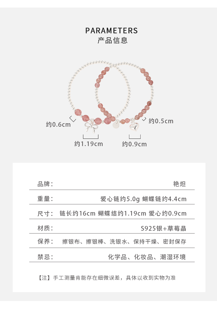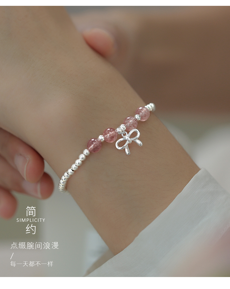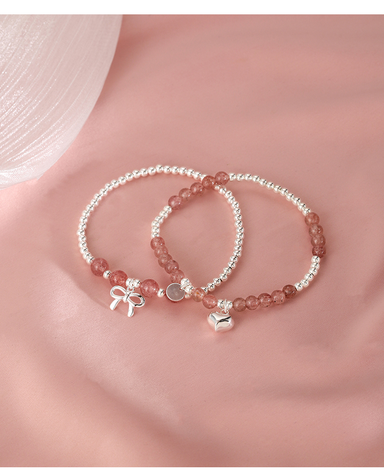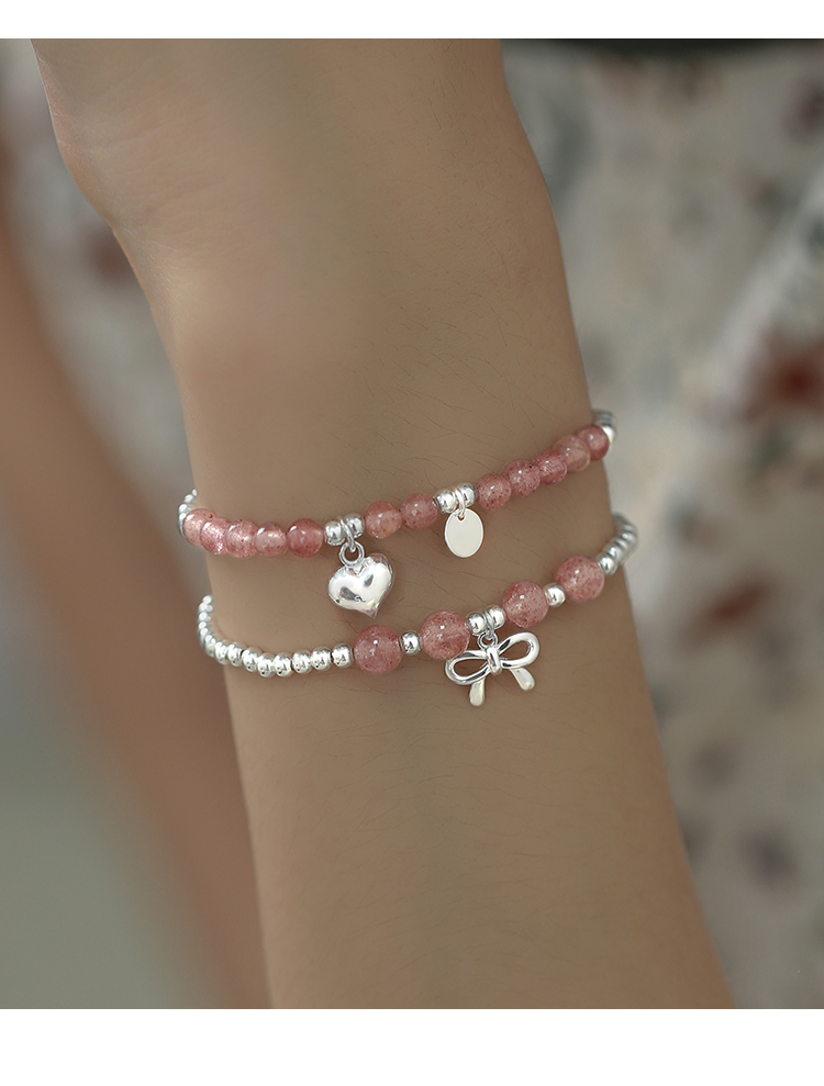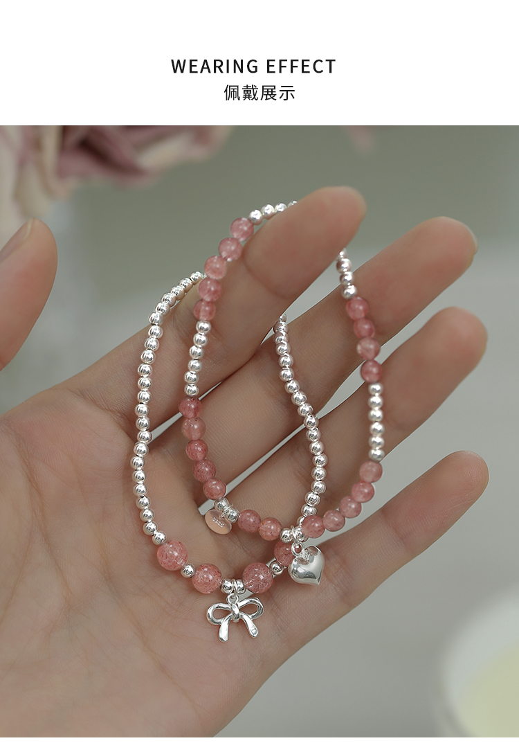 Yanxing 925 Silver Bows Bracelet Girls cute Sweet Easiest for match Strawberry Crystal Heart Bracelet Sterling Silver Bracelet Summer