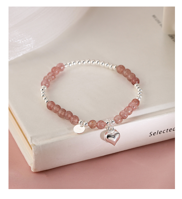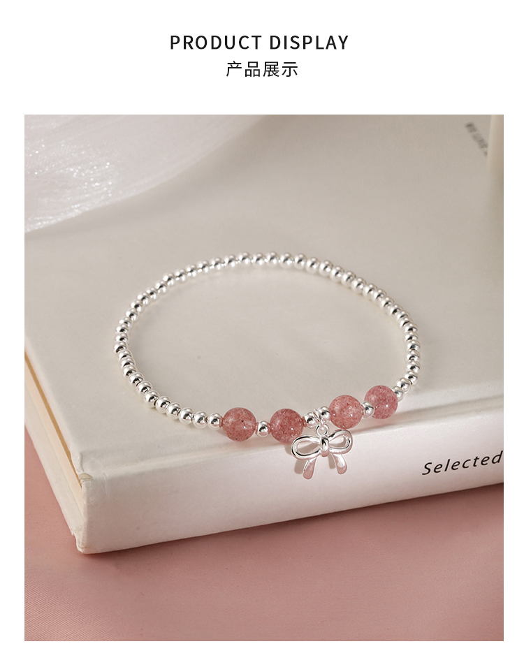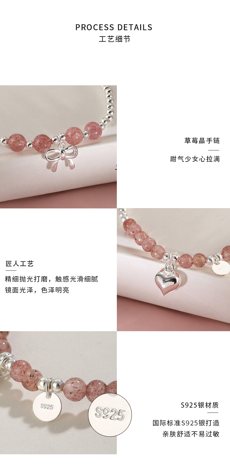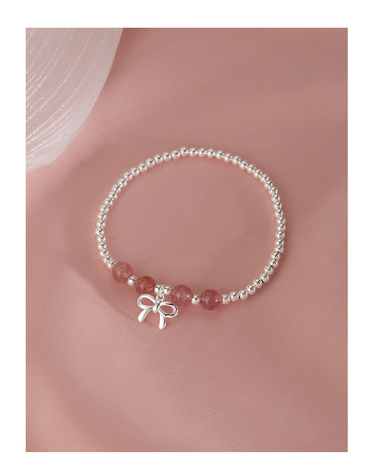 Yanxing 925 Silver Bows Bracelet Girls cute Sweet Easiest for match Strawberry Crystal Heart Bracelet Sterling Silver Bracelet Summer