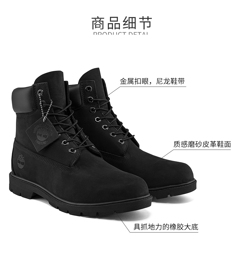 Timberland Official Indestructible Men's Shoes Martin Boots Winter Outdoor Black Leather Waterproof | 19039
