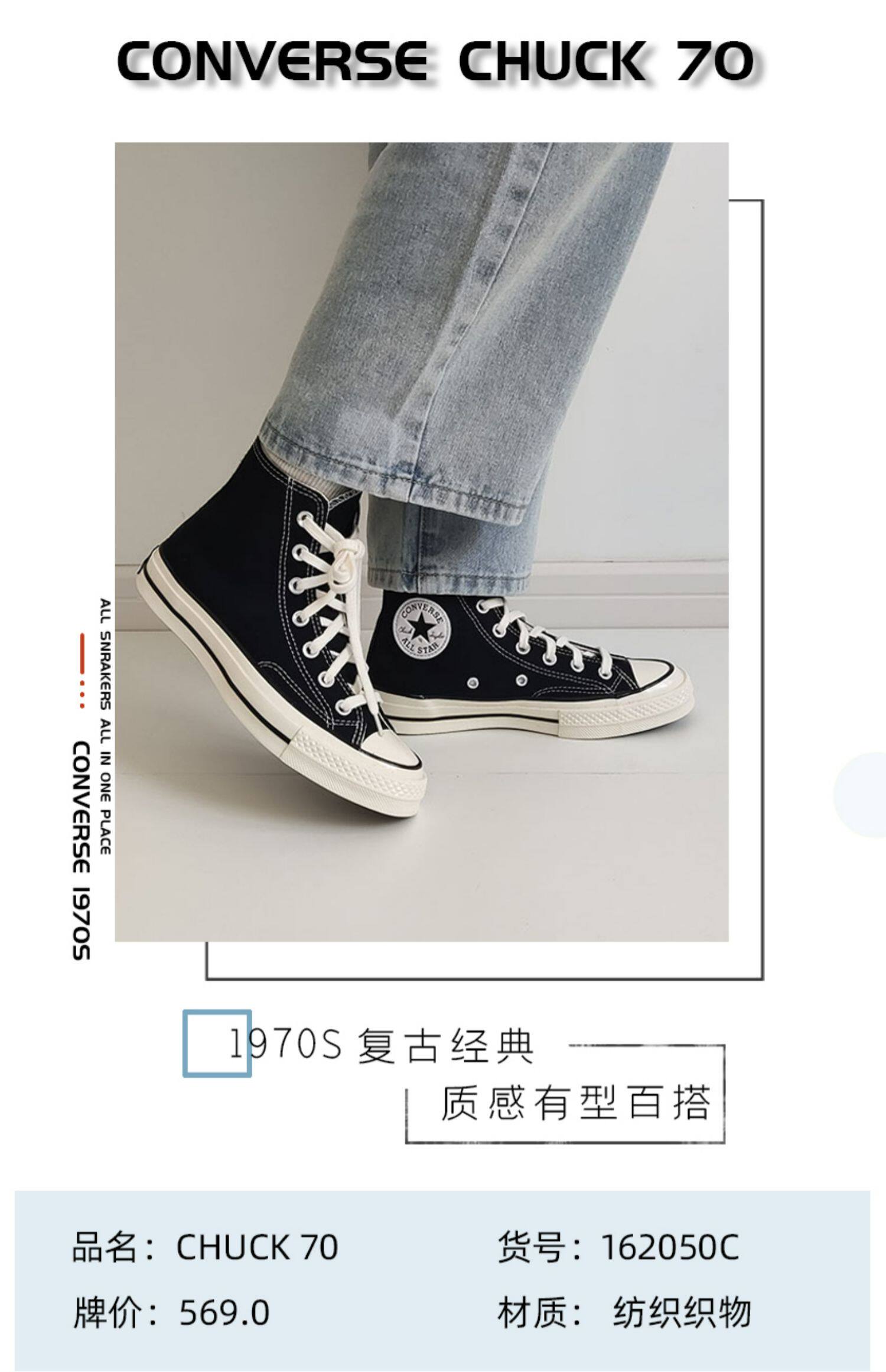 Converse 1970S Classic Three-Star Logo Black High-Top Canvas Shoes for Men and Women 162050C 162058C