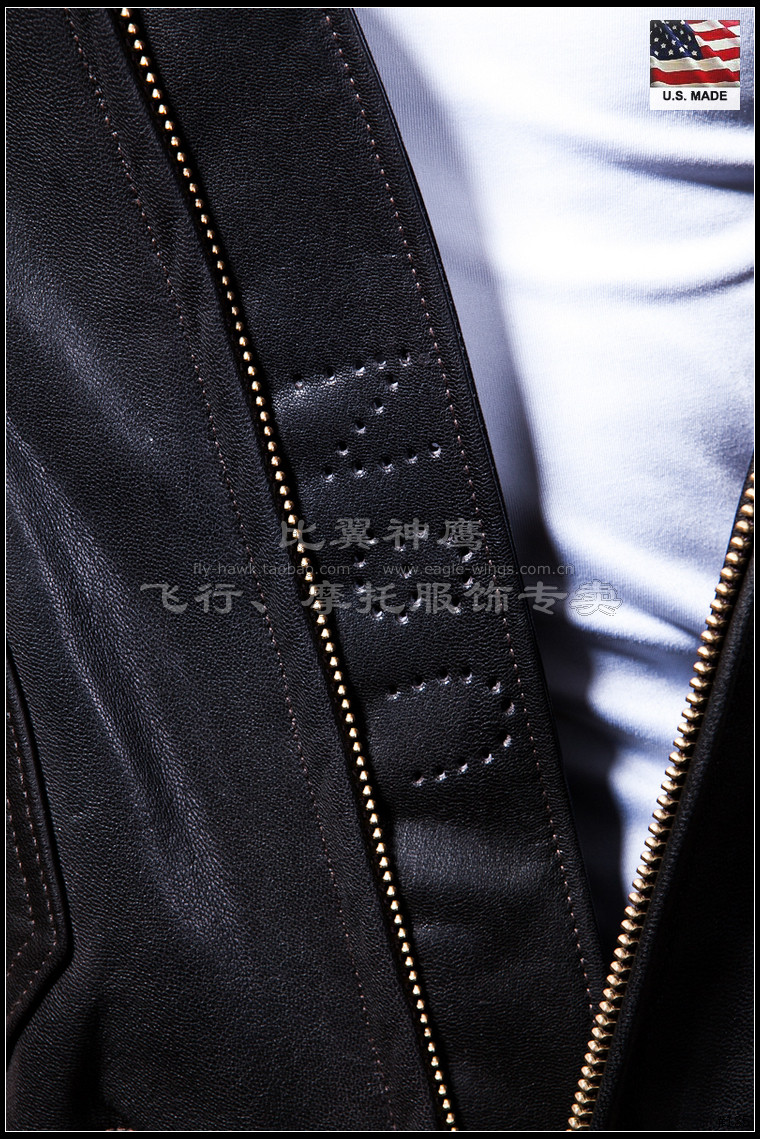 前襟皮风挡上镂刻的美国海军(US Navy)的英文缩写USN
