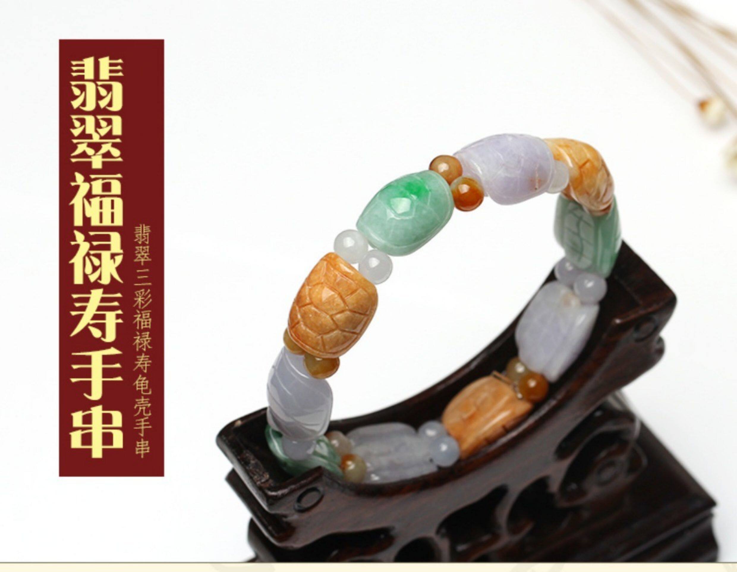 Natural Burmese Jade A-Grade Colorful Turtle Shell Bracelet, Good Luck and Longevity Bracelet, Gift for Elders, Filial Piety Turtle Shell Bracelet