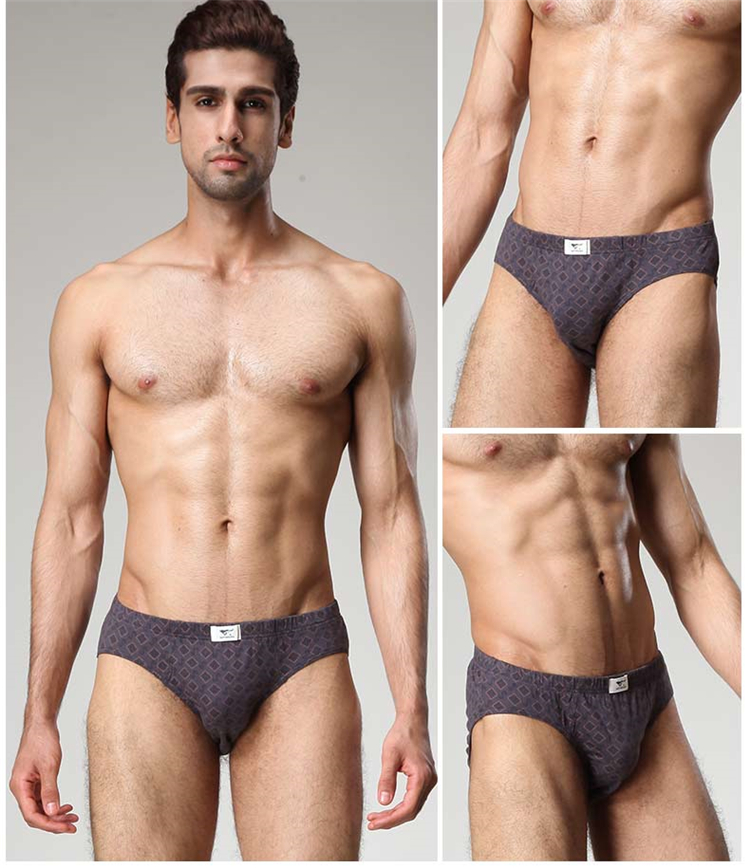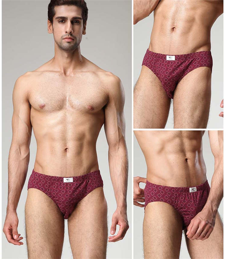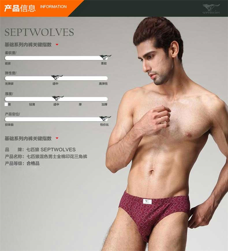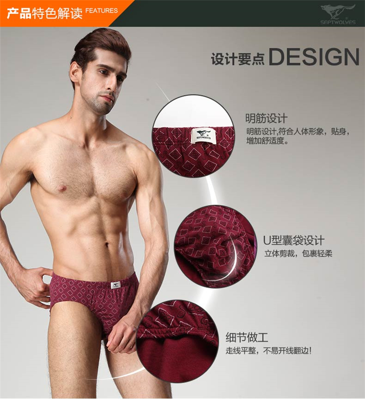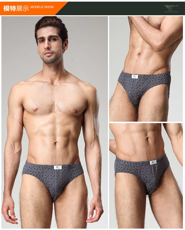 Septwolves Pure Cotton Briefs Men's Underwear All-Cotton Thin Mid-Waist Briefs with Printed Plaid Sexy Underpants
