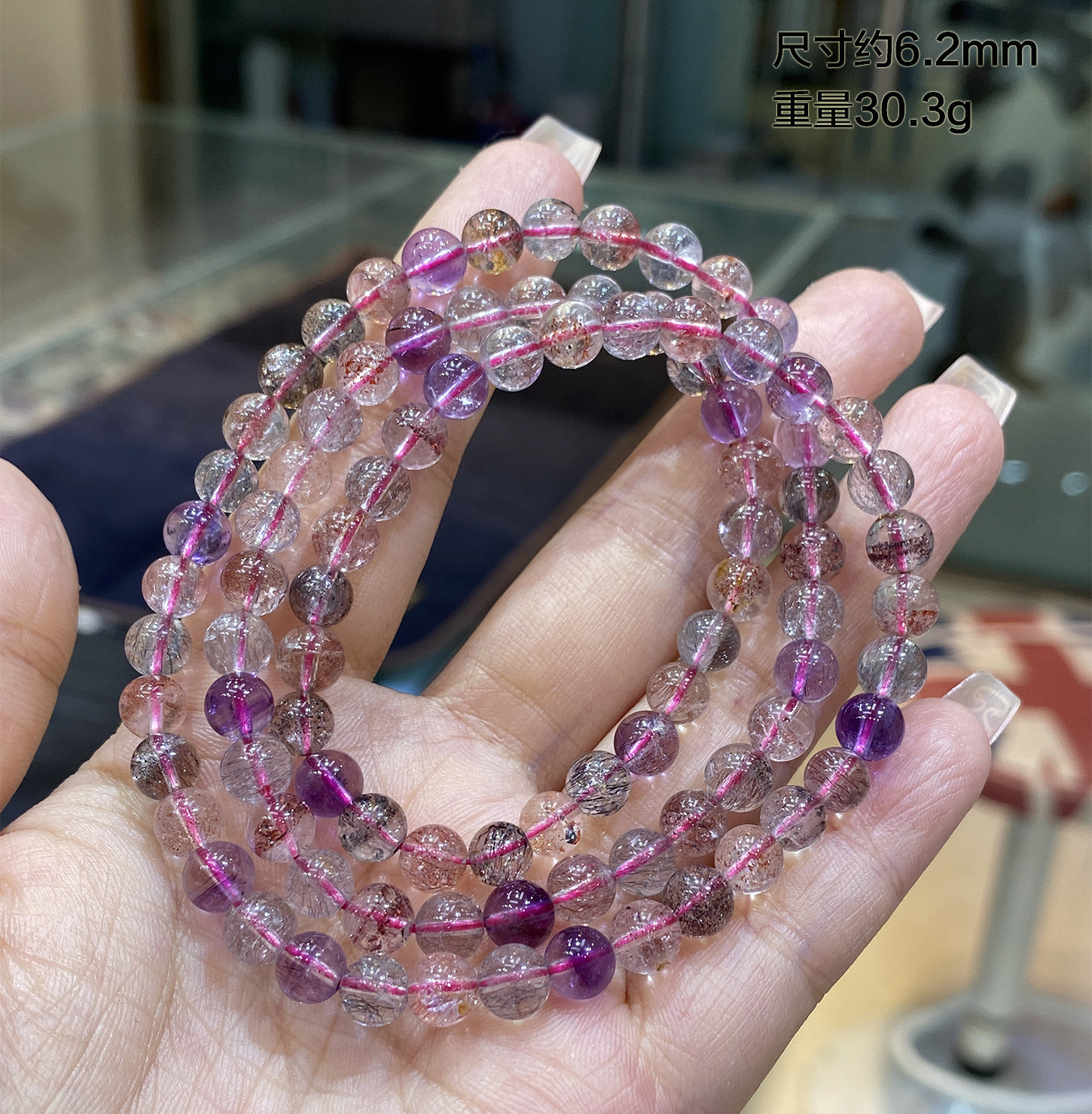One Picture, One Item: Collectible Grade Natural Super Seven, Three-Pronged Quartz Crystal Amethyst Bracelet, Stronger Than Titanium Crystal Bracelet