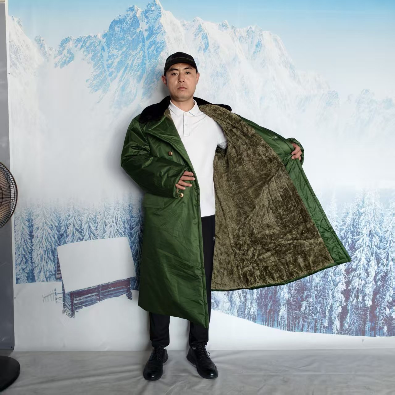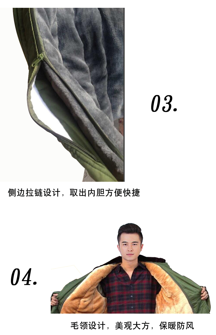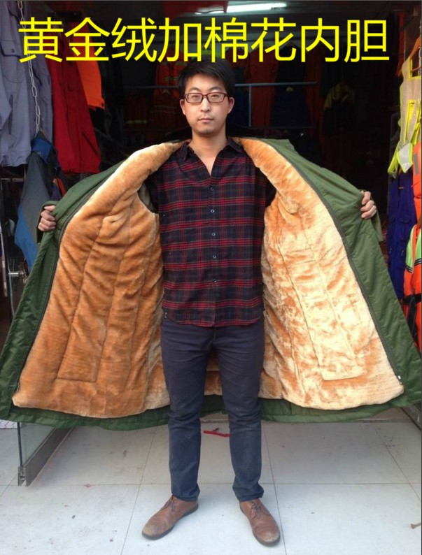 Men's Military Cotton Coat for Winter, Thickened, Oversized, Cold-Proof Yellow Coat, Long Style, Fleece-Lined, Removable and Washable Cotton Coat