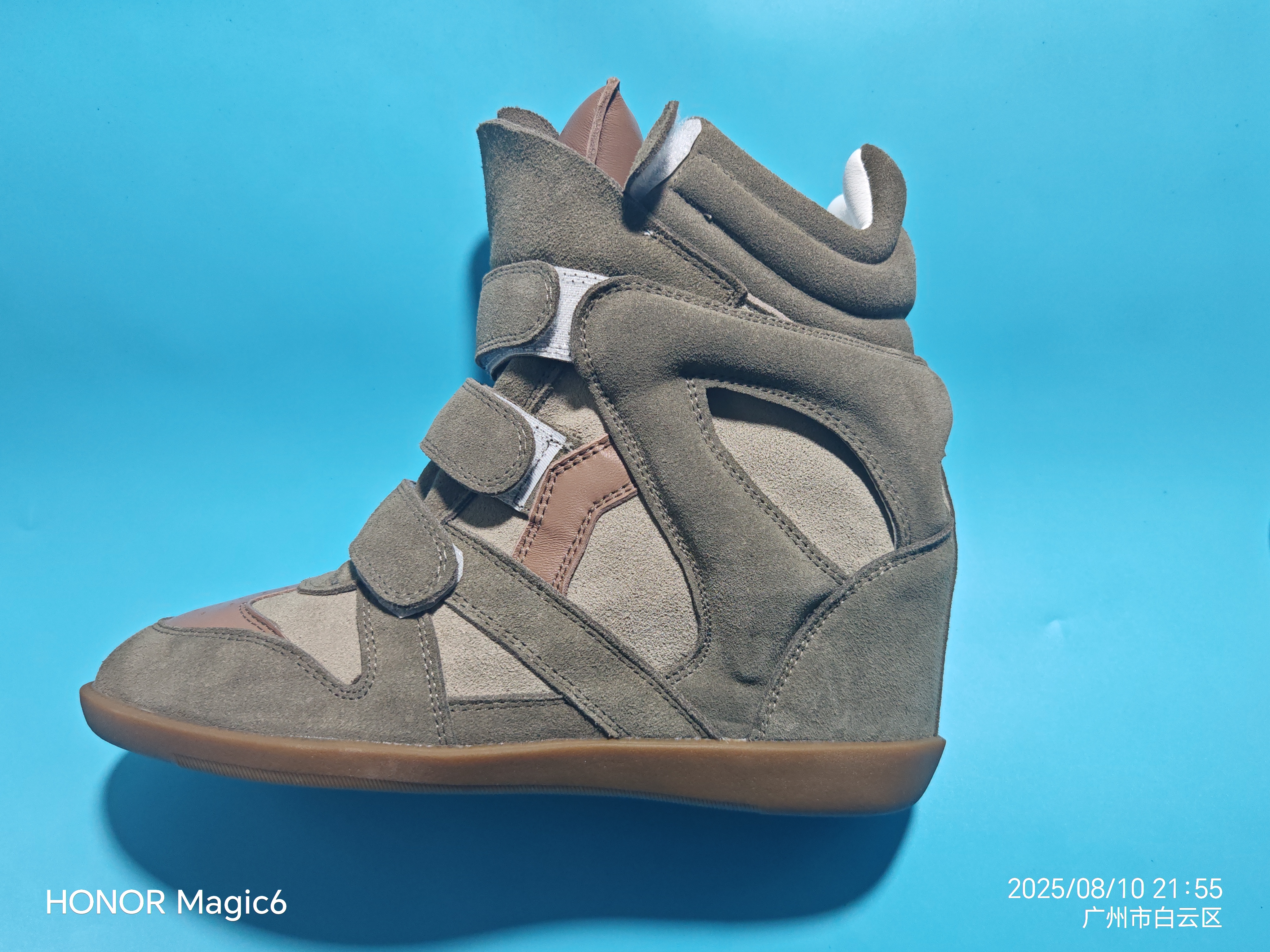 New 2025 Height-Increasing Shoes for Women, High-Top Color-Blocked Round-Toe Flat Casual Shoes, Autumn and Winter Style, Velcro Sports Shoes for Women