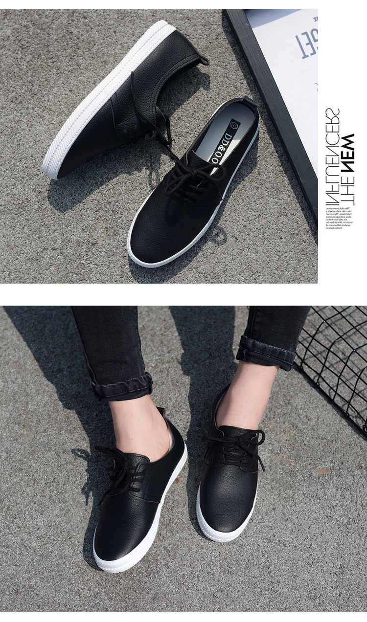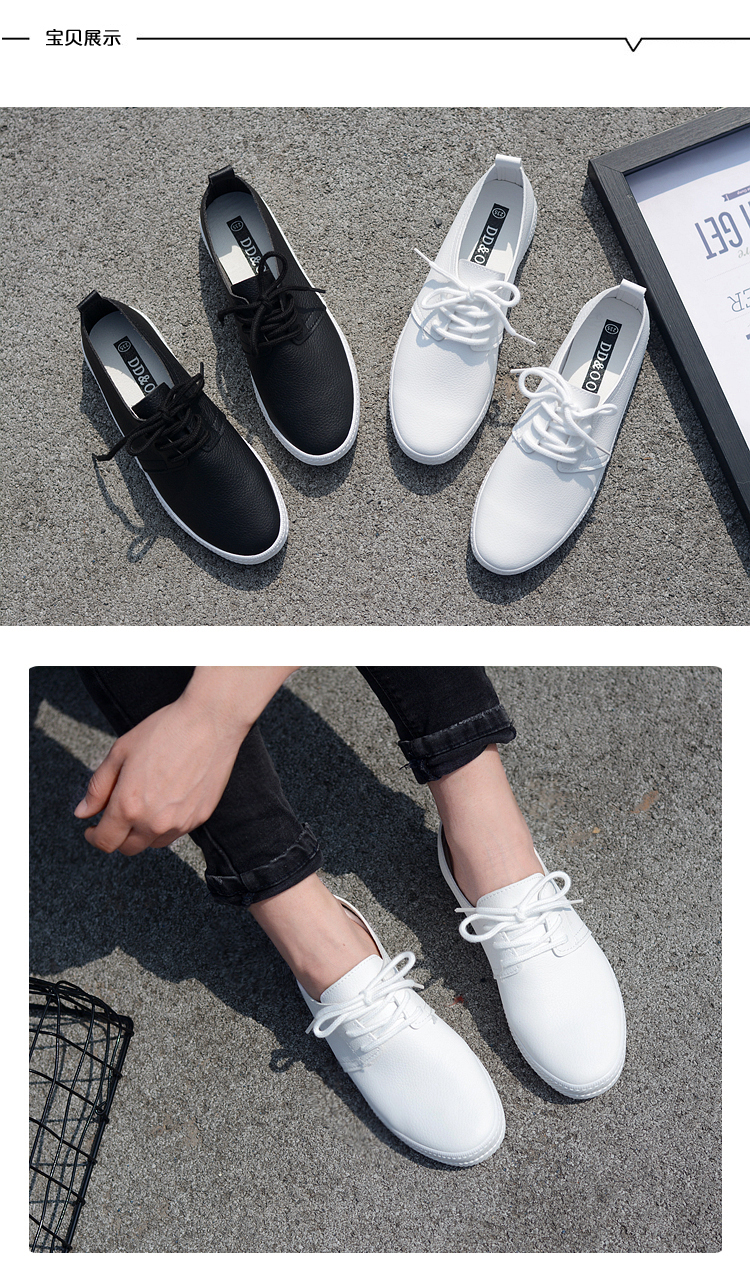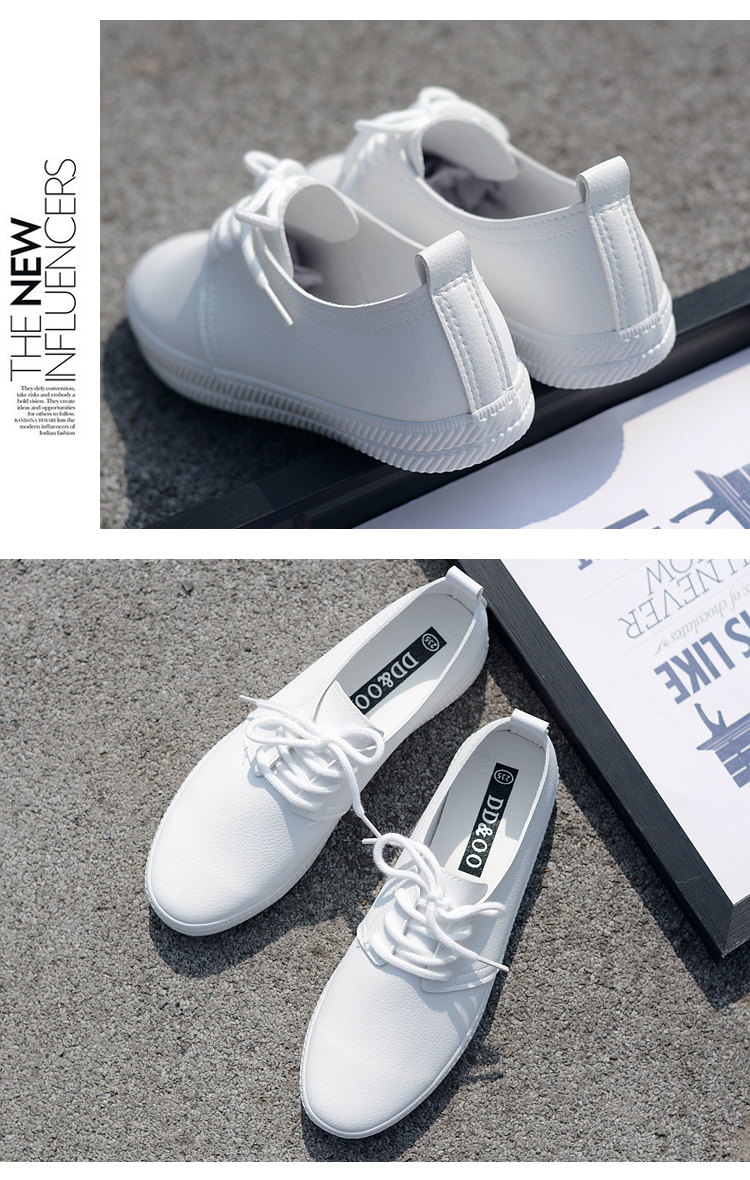 Summer and Autumn Versatile Korean Style Soft-Soled Leather Breathable Flat Shallow Mouth Women's White Shoes Casual Sneakers