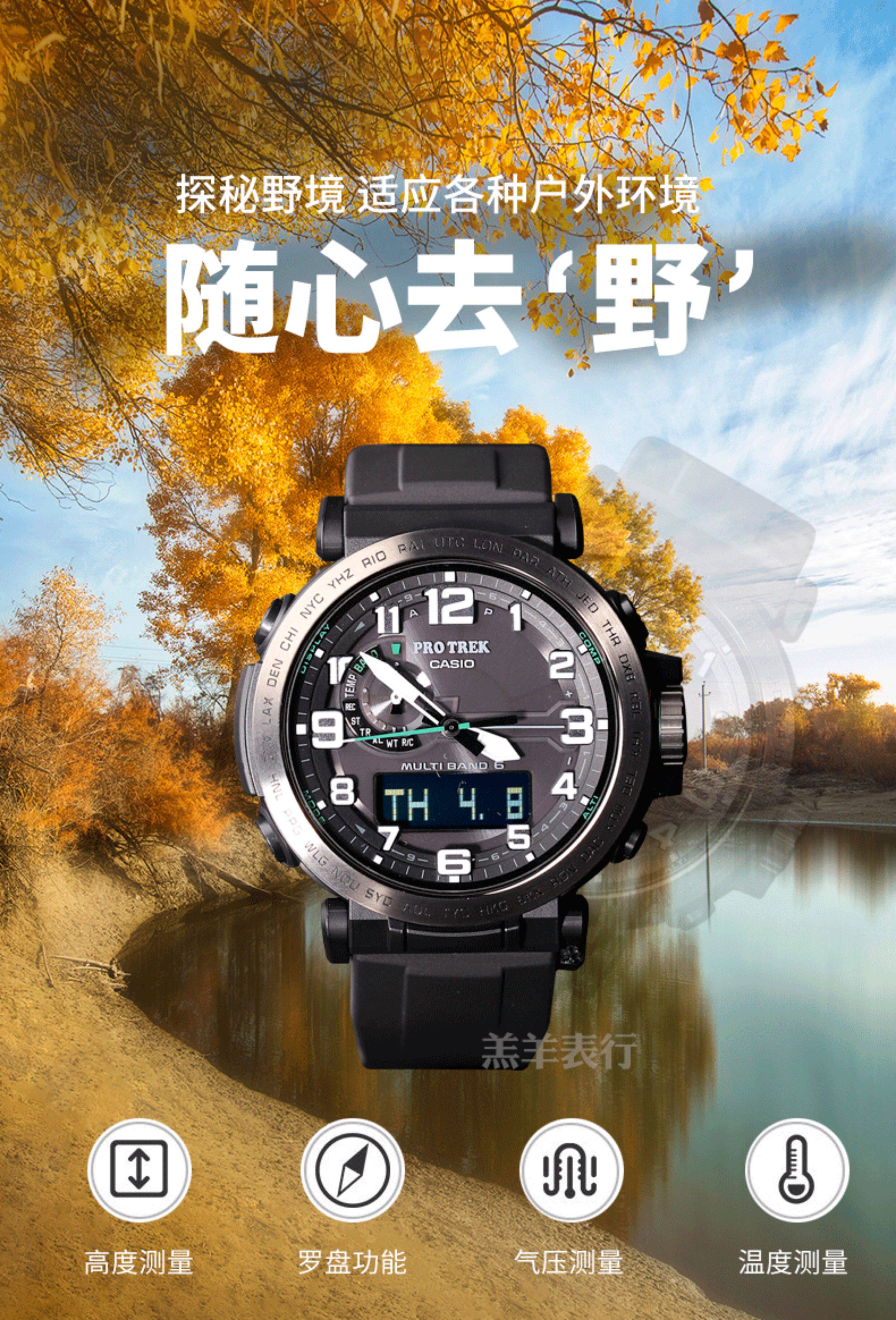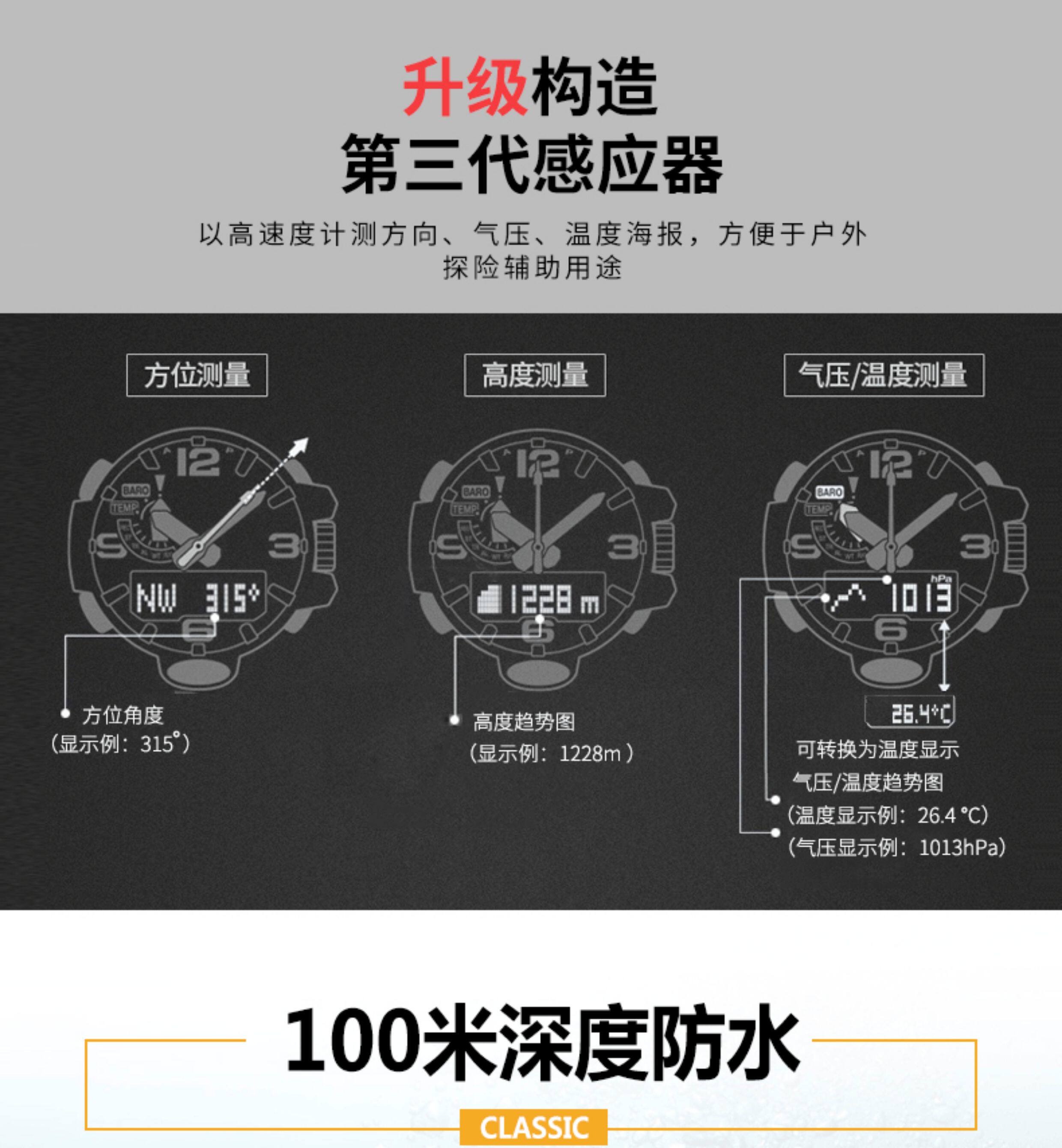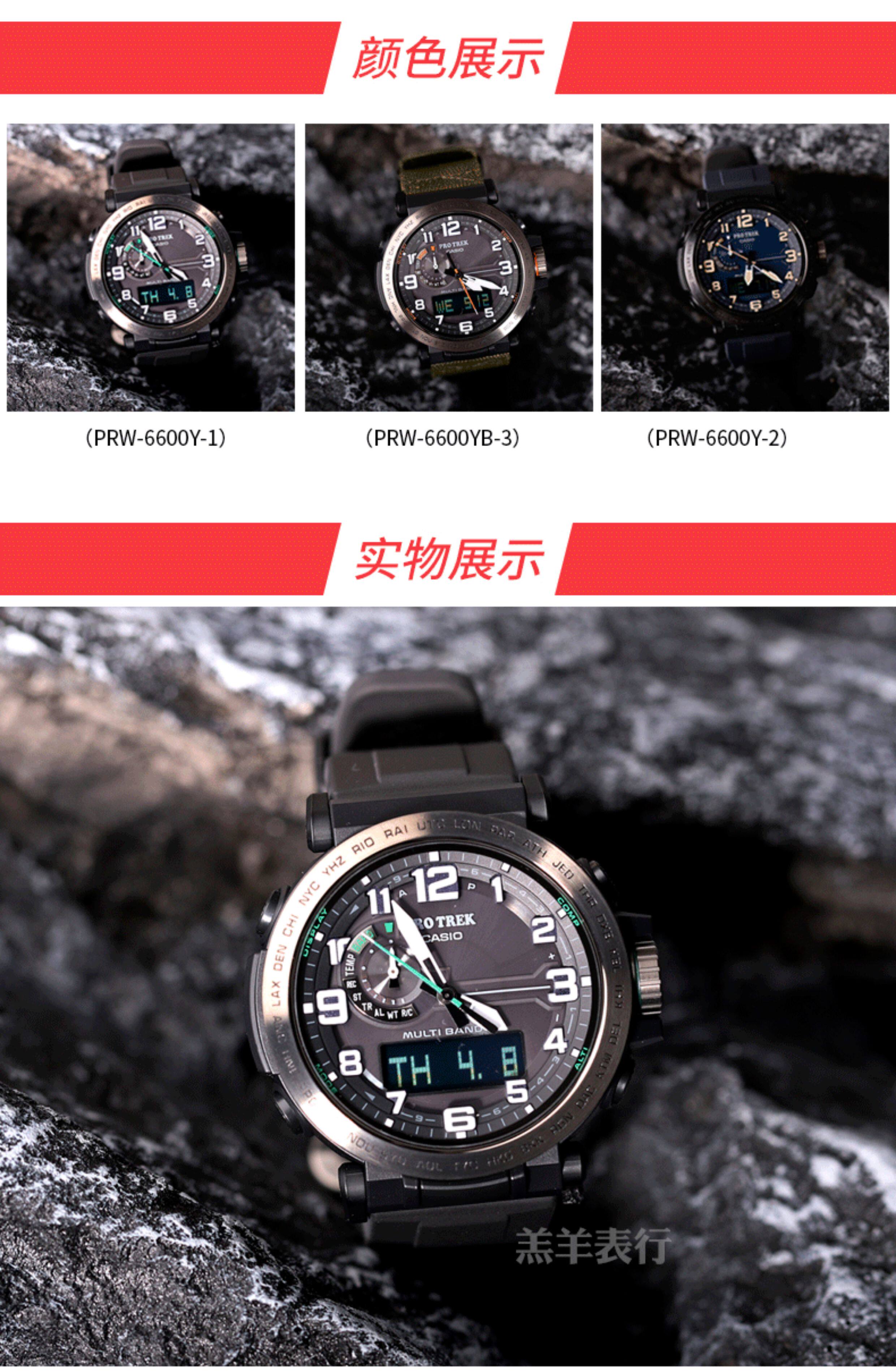 Casio Outdoor Mountaineering Watch Solar Energy Radio Wave Triple Sensor Dual Display Prw-6600Y-1/Yb-3