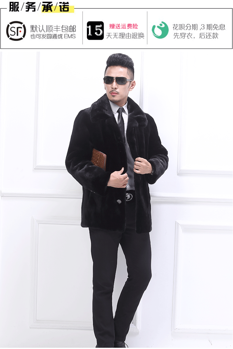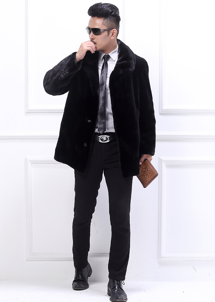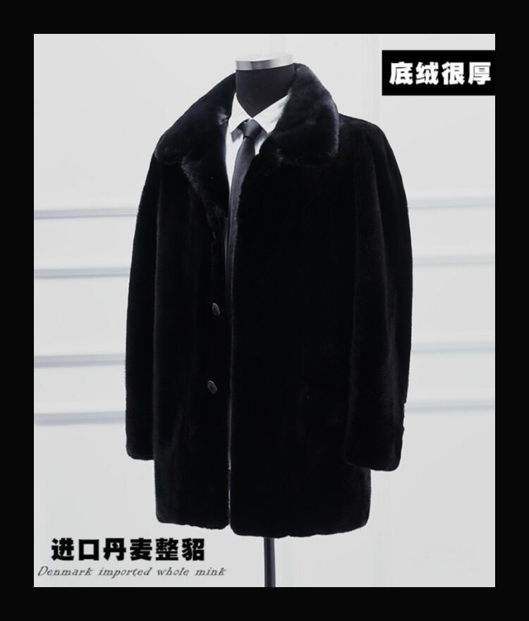 2026 Large Size Imported Whole Mink Fur Coat for Men, Genuine Mink Fur Buttoned Velvet-Grade Haining Fur Coat