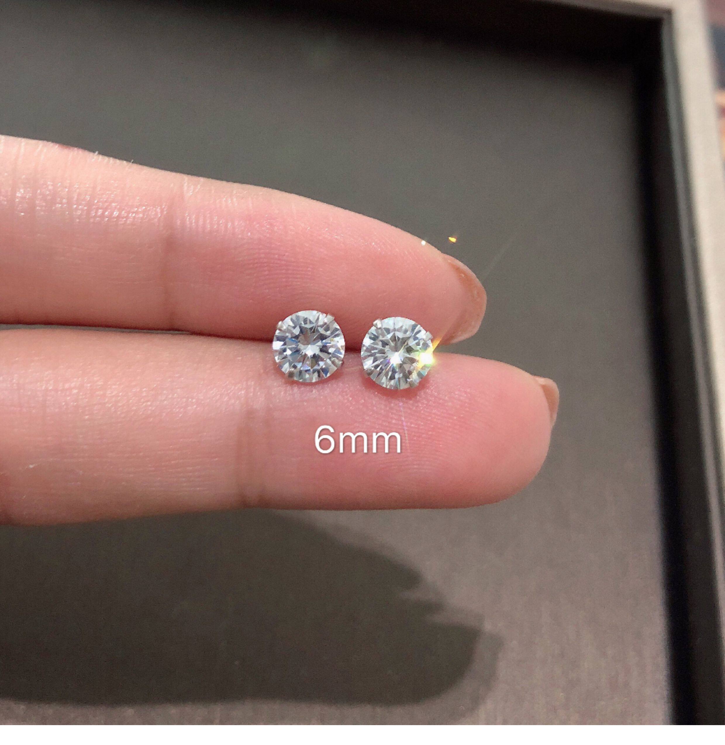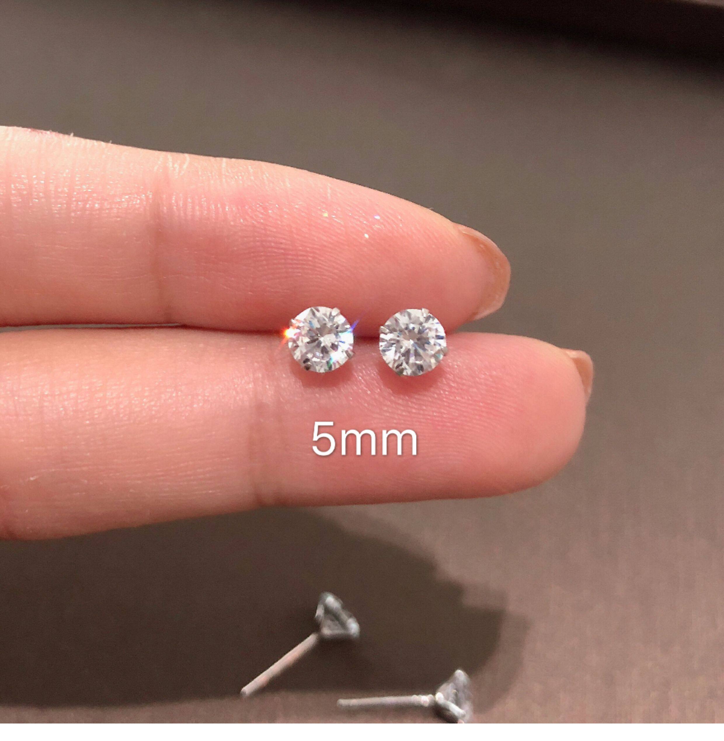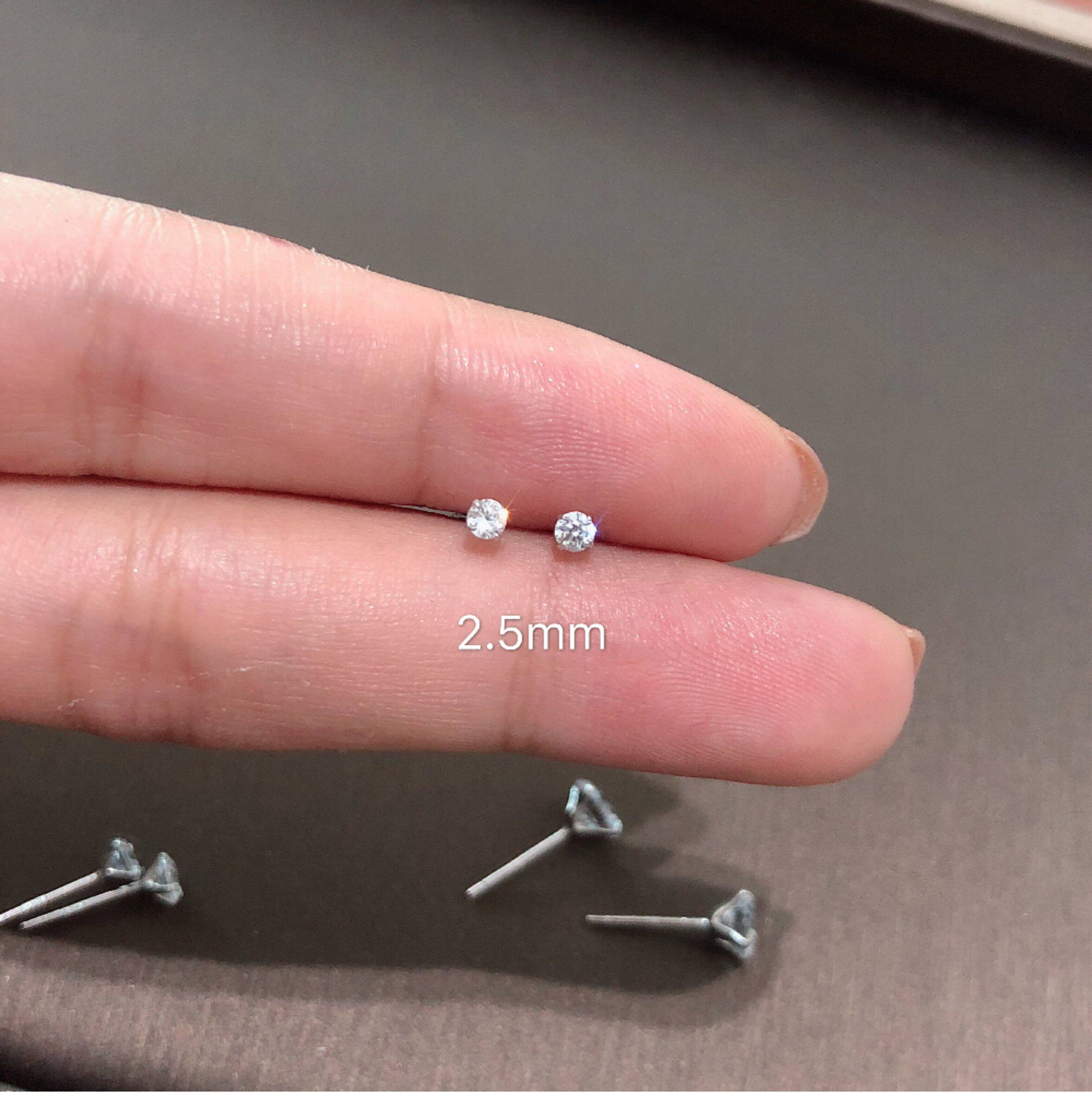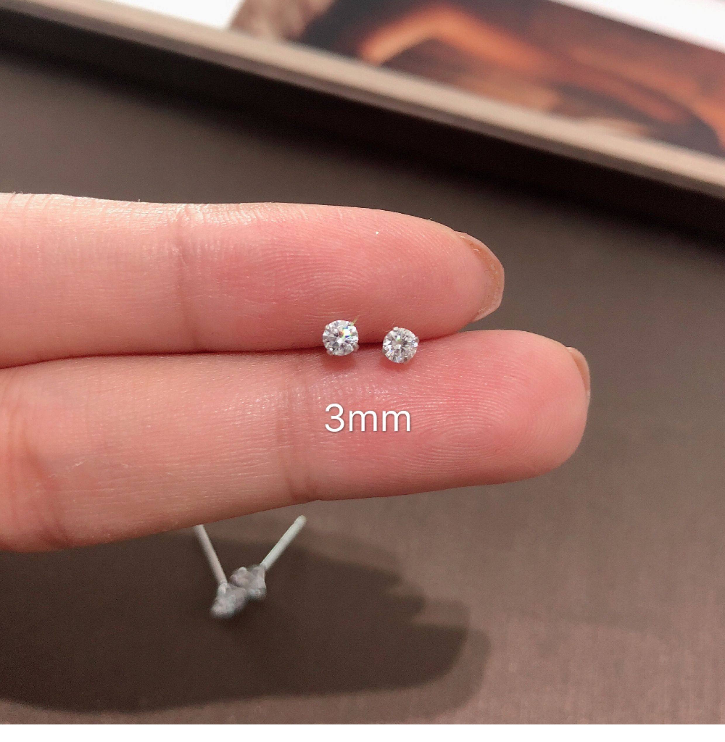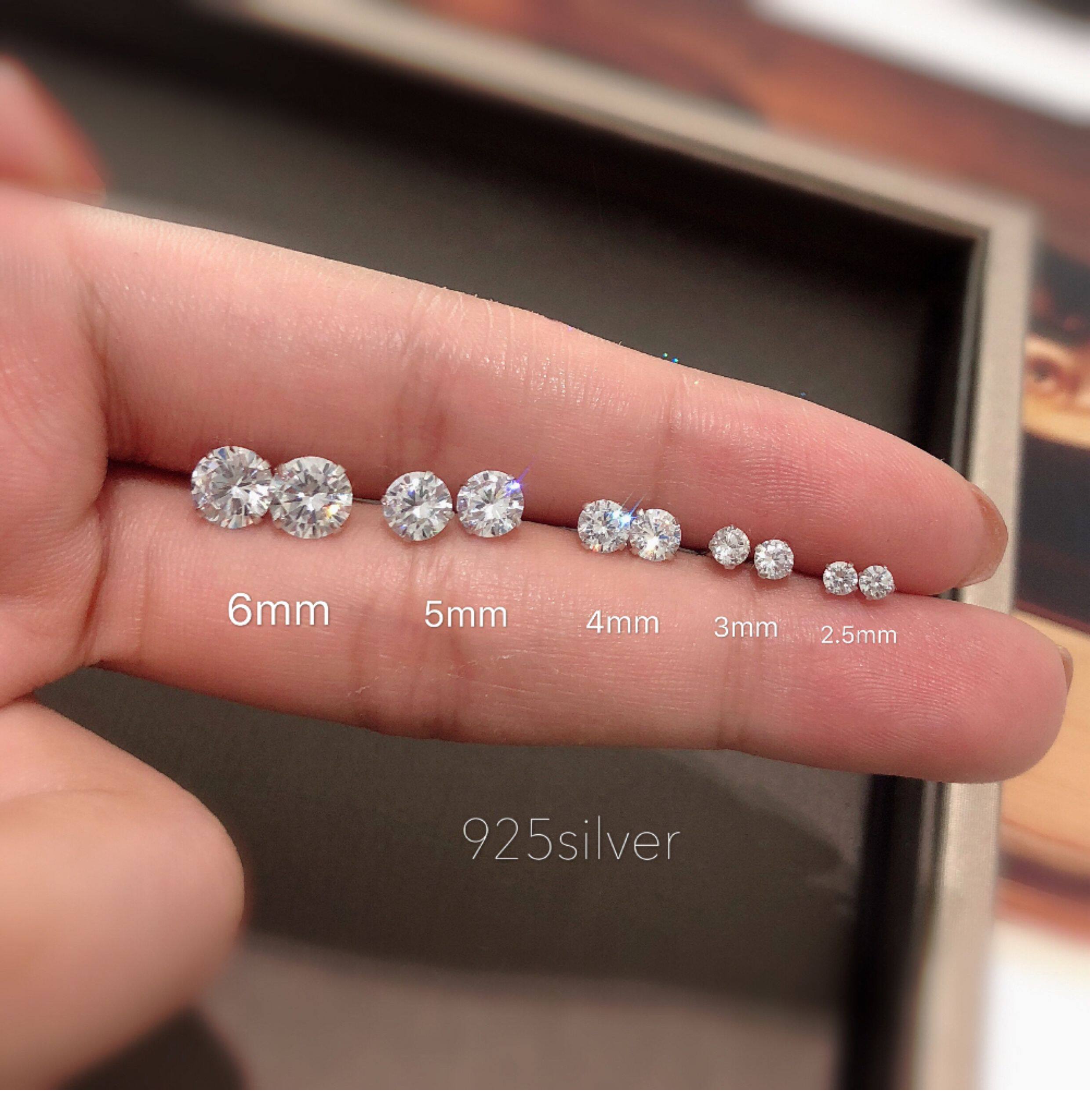 Jasmine*925 Sterling Silver Super Shiny Small Stud Earrings 2.5-6mm Unisex Synthetic Zircon Earrings Ear Cartilage Studs