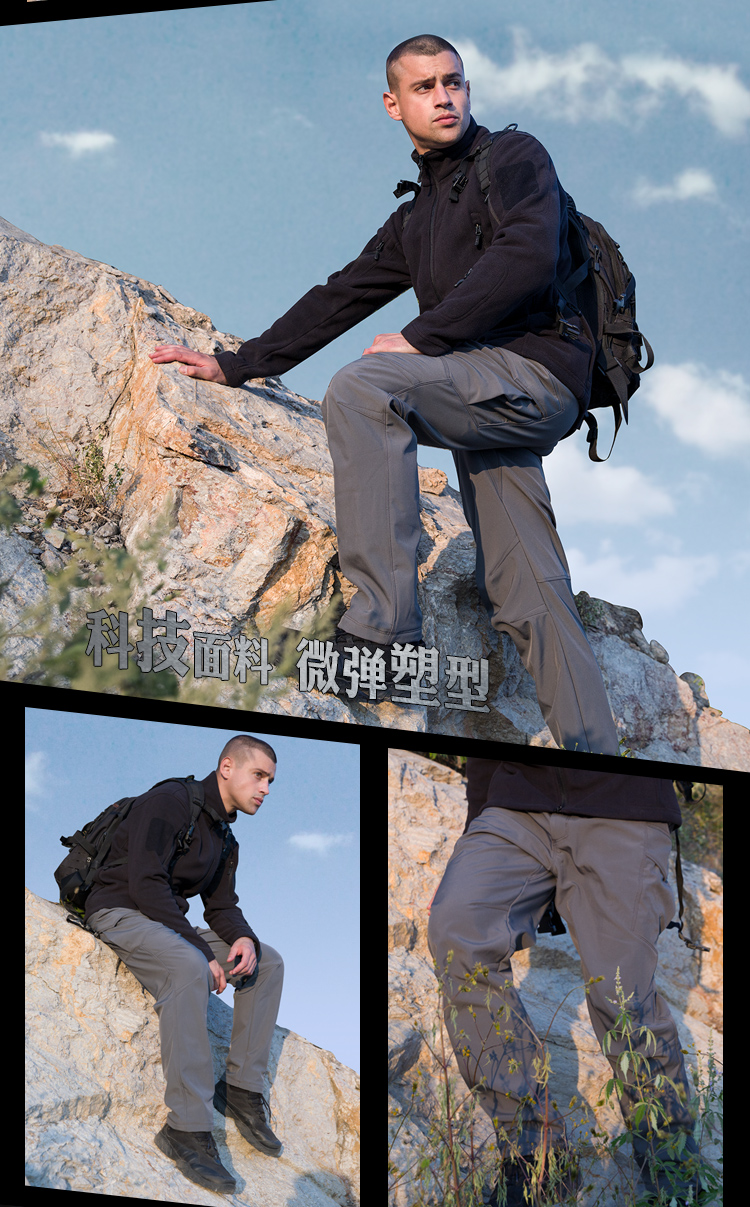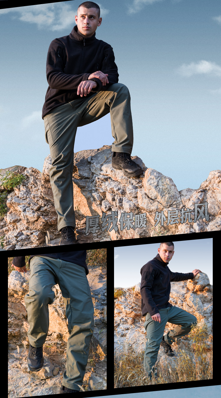 Men's Outdoor Softshell Pants with Fleece Lining, Thickened, Windproof, Waterproof, Winter Skiing, Mountaineering, Warm Tactical Fleece Pants