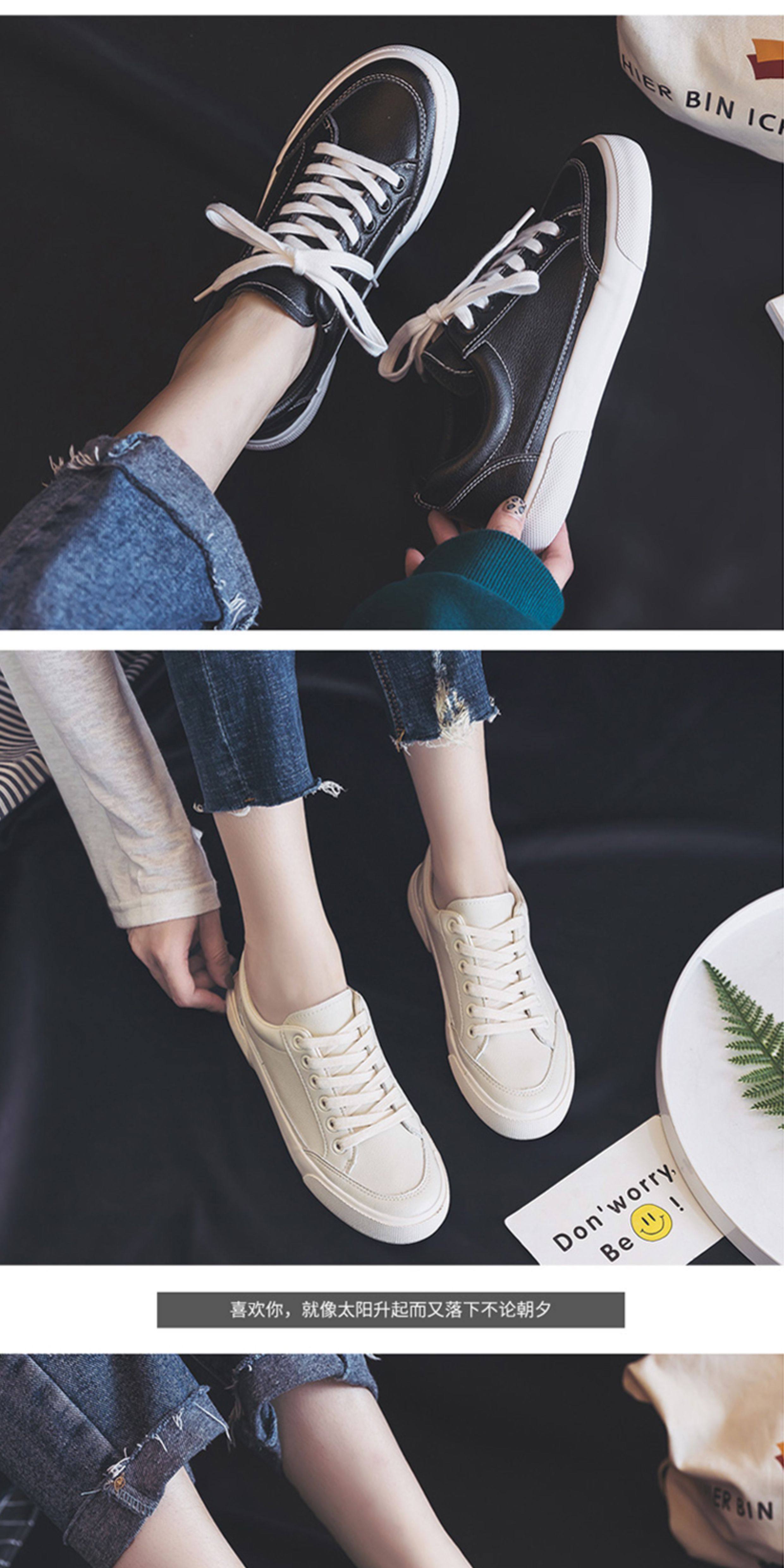 White Leather Sneakers for Women, 2025 New Popular Style, Autumn Everyday Women's Shoes, Versatile Flat Sneakers to Match Skirts