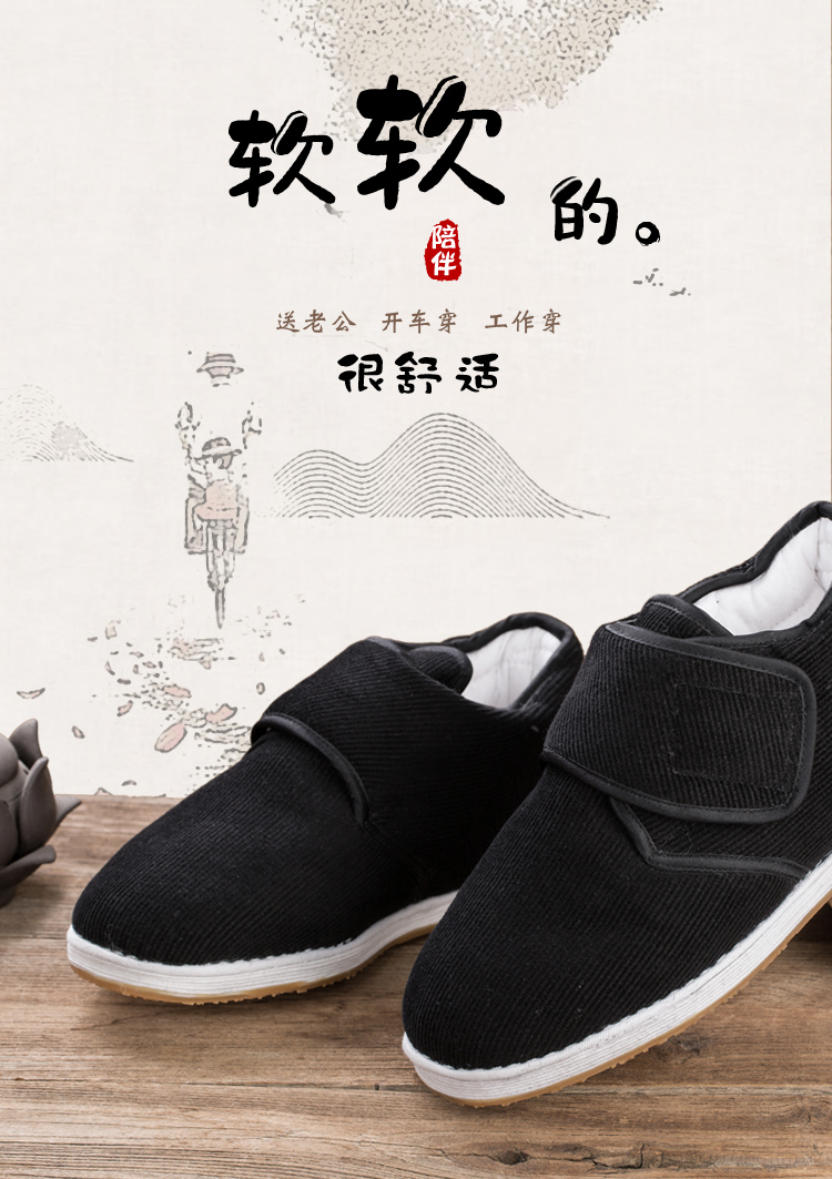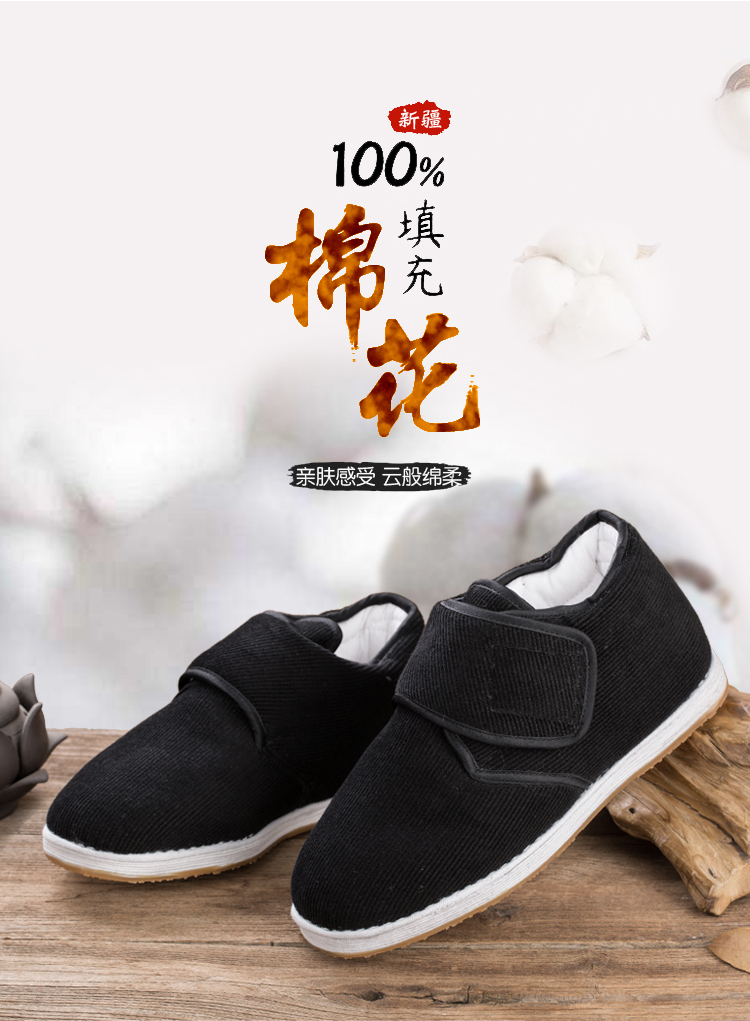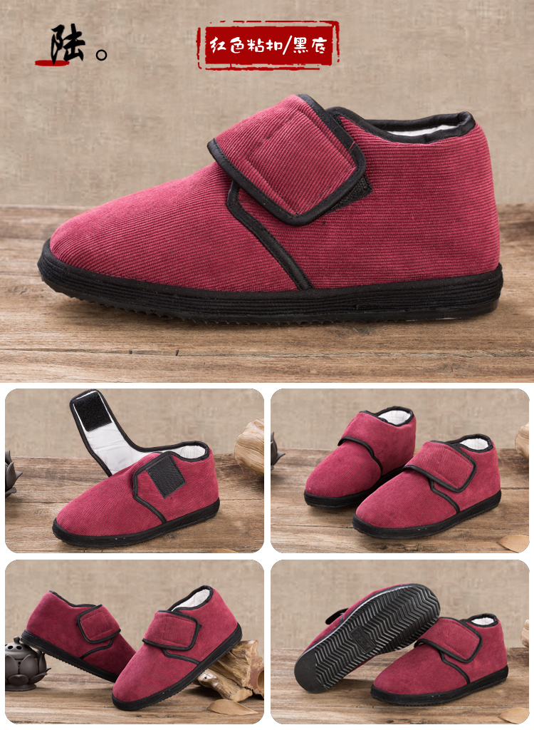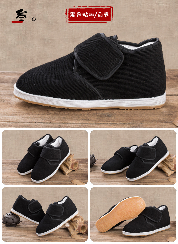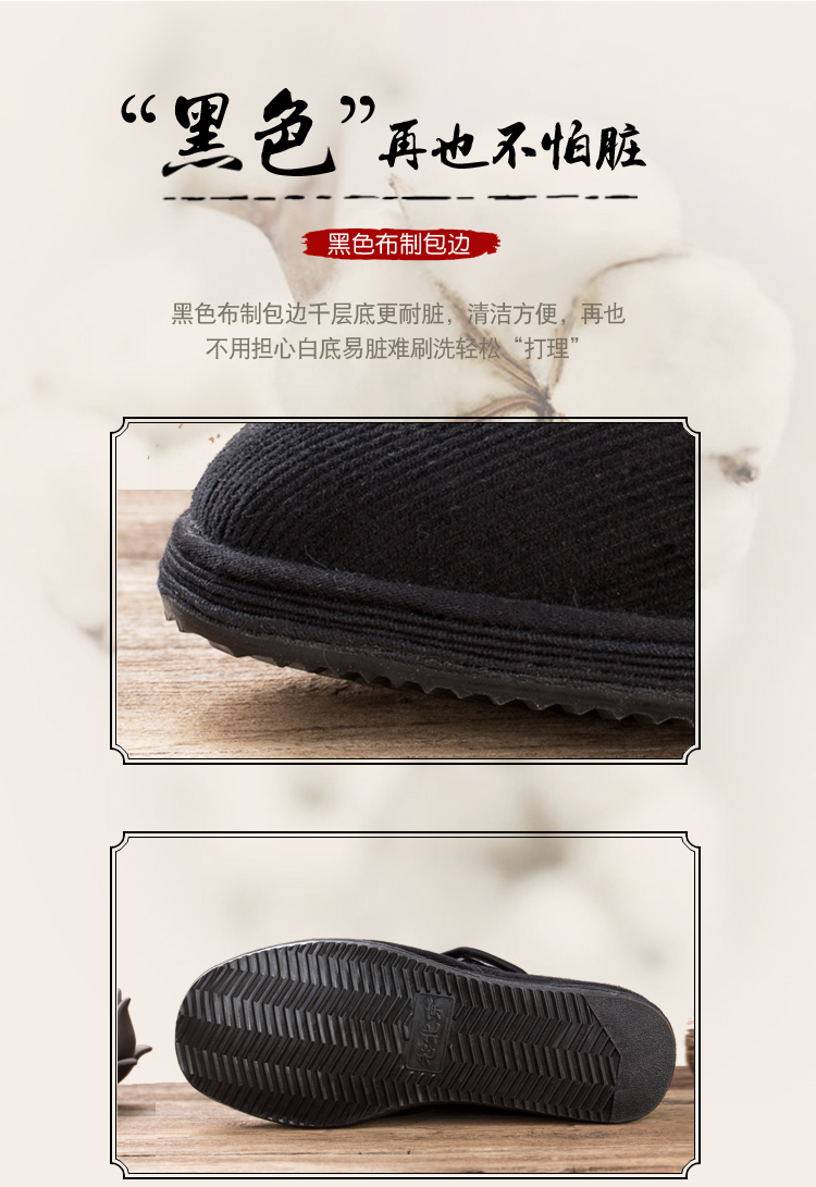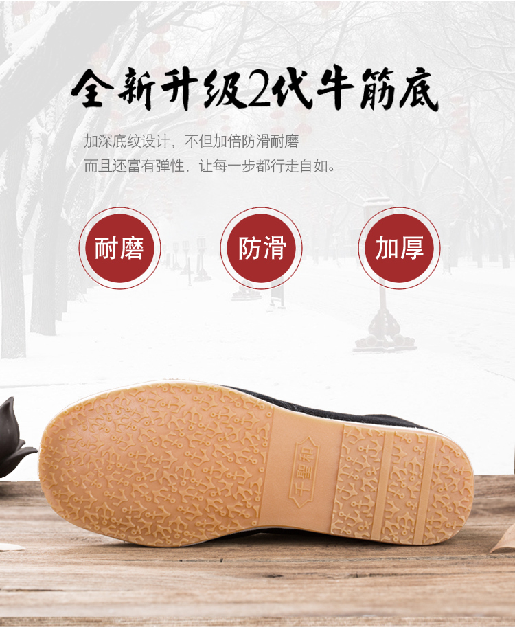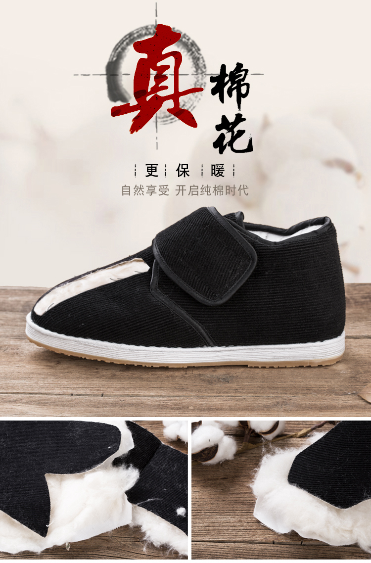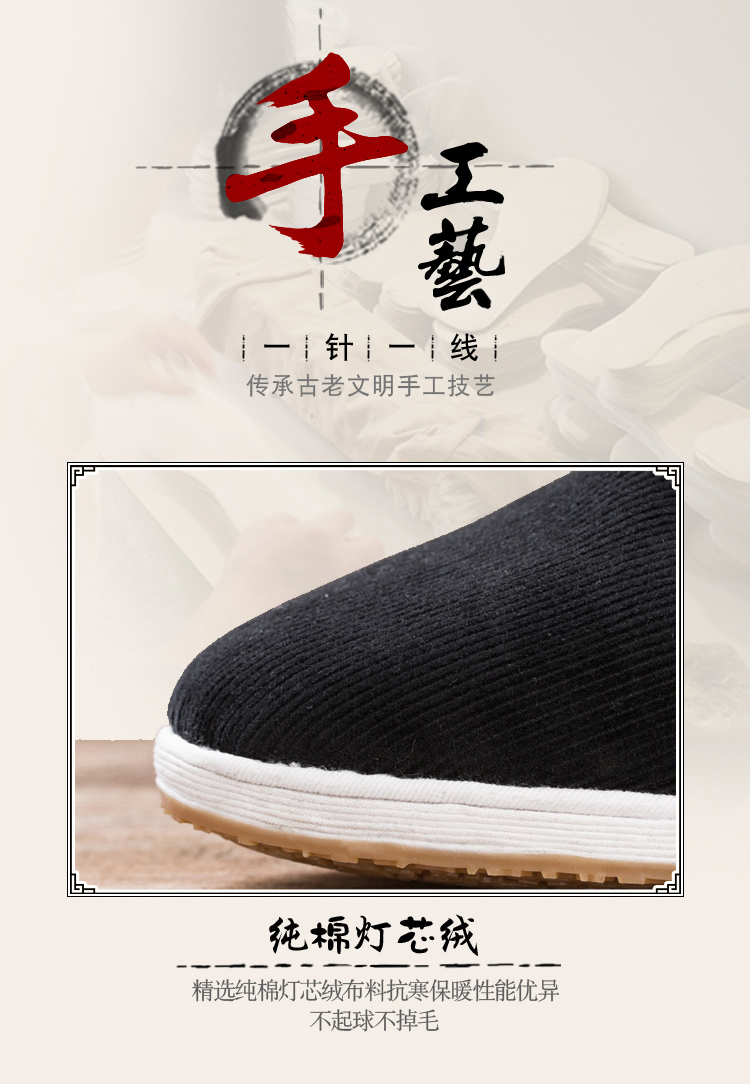 Old Beijing Cloth Shoes for Men, Handmade Cotton Shoes with Thousand-Layer Soles, Winter Fleece-Lined, Warm, Thickened, Non-Slip, for Elderly Men, with Beef Tendon Soles