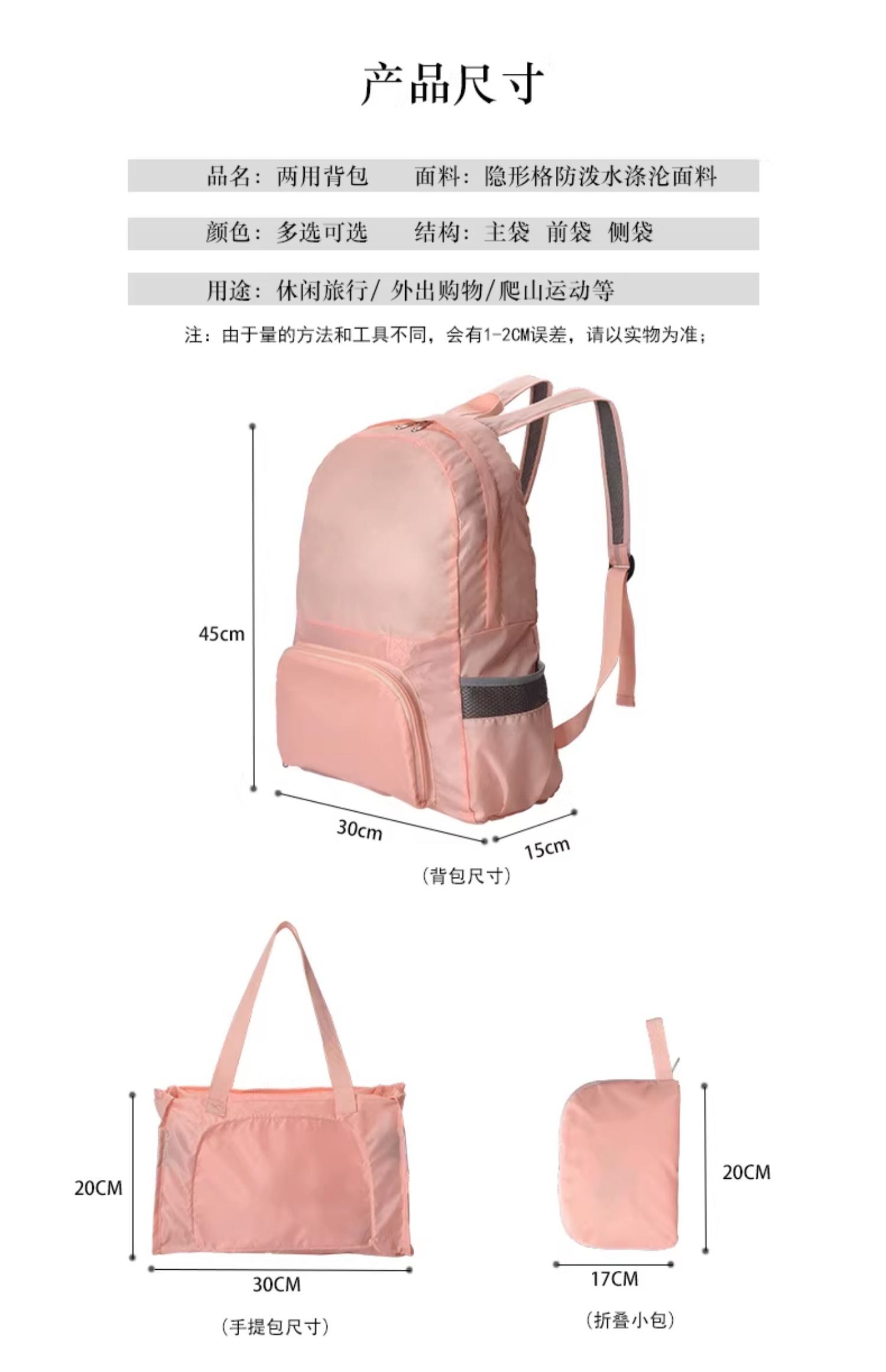 Foldable Skin Bag, Ultra-Light Portable Travel Bag, Dual-Purpose Backpack for Women, Lightweight Travel Sports Outdoor Backpack for Men