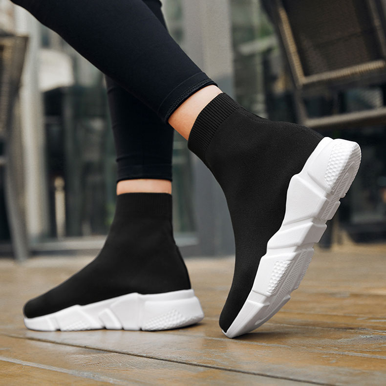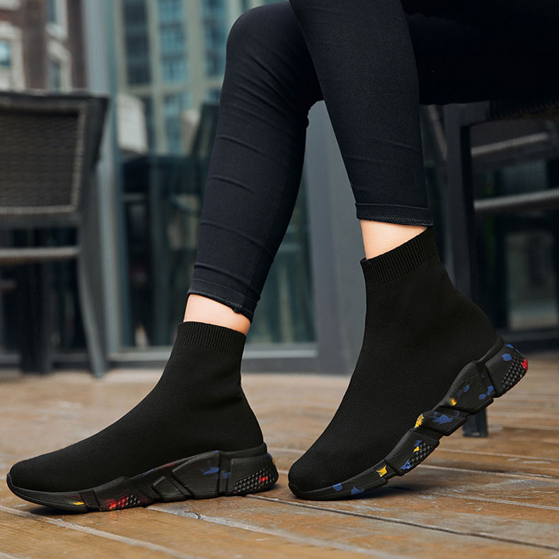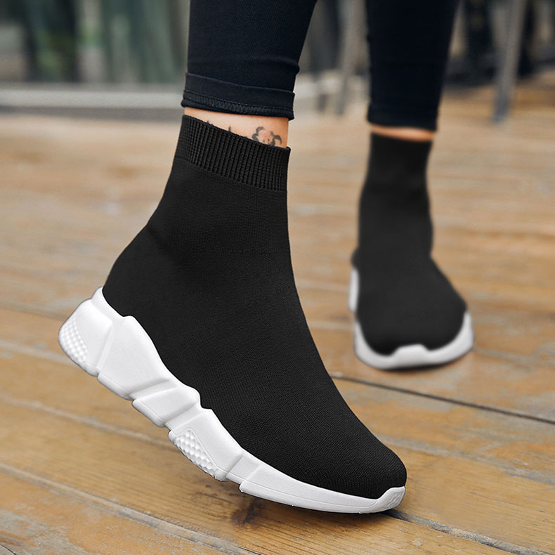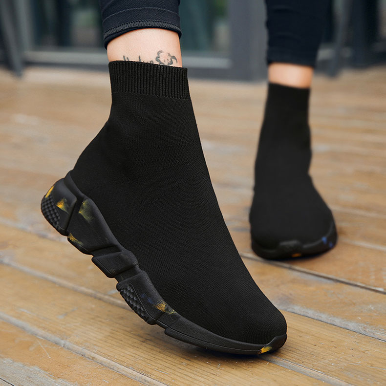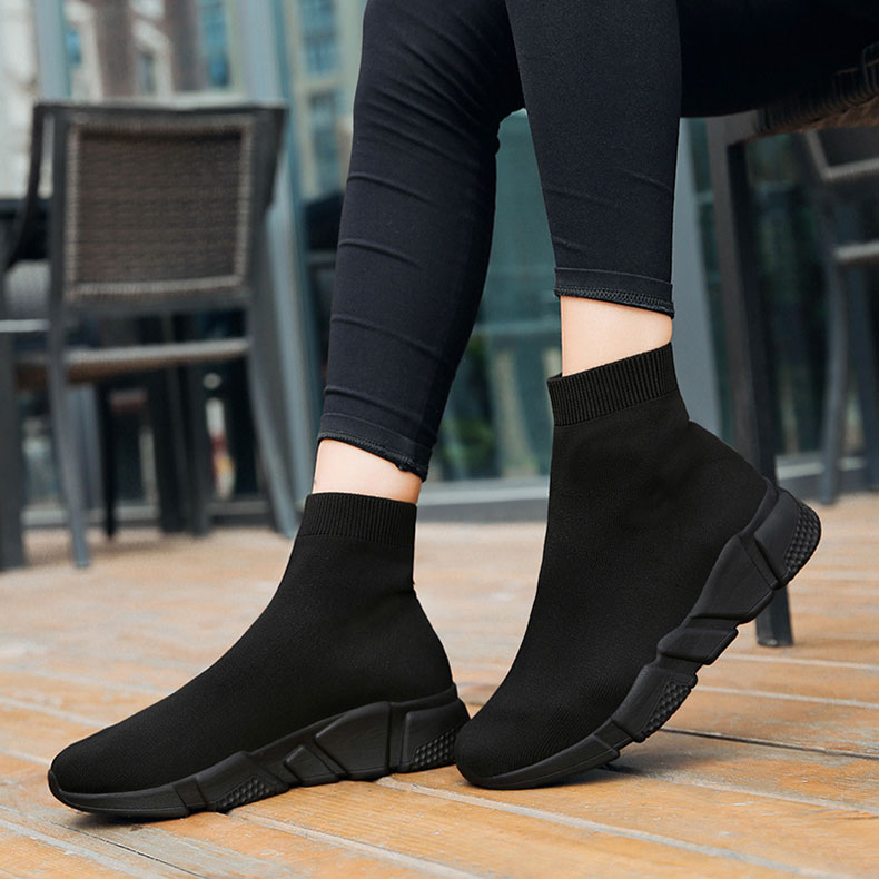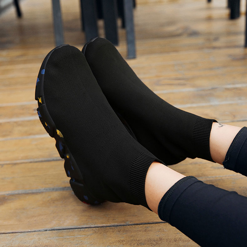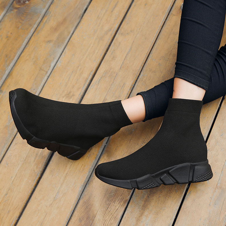 Women's Spring and Autumn High-Top Fly-Knit Boots, Slip-On Soft-Soled Athletic Shoes, Large Size Old Beijing Cloth Shoes for Women