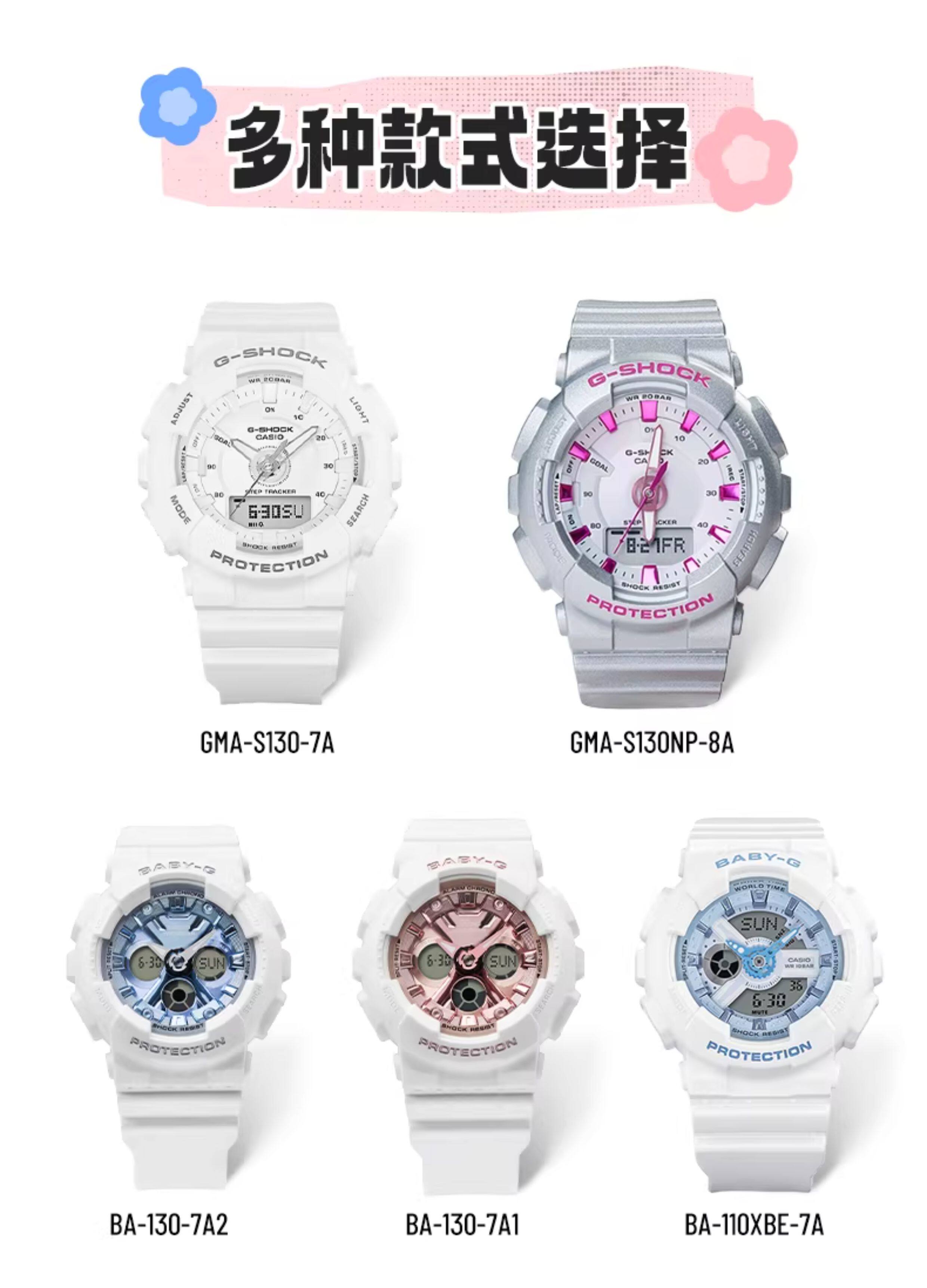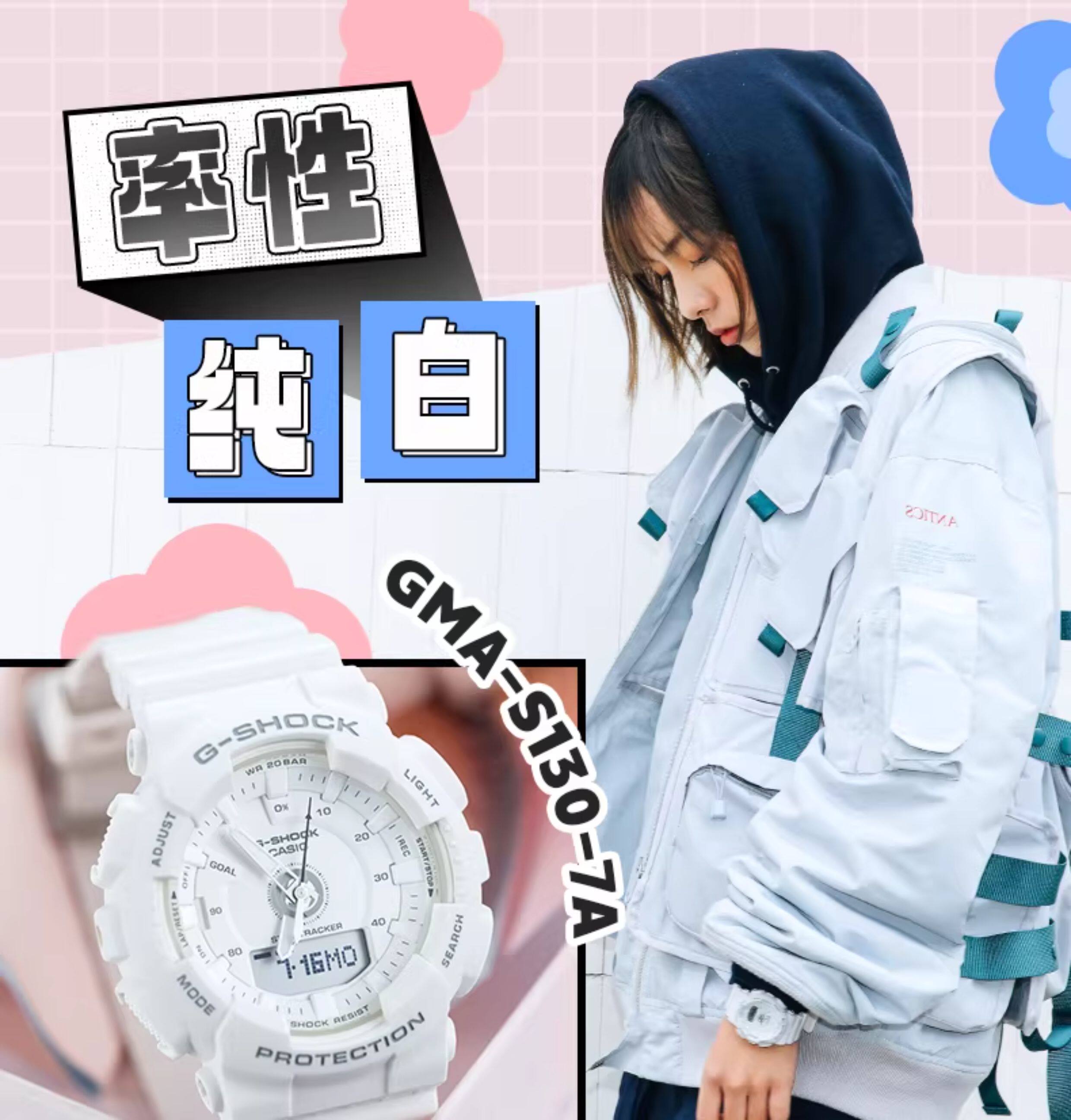 Casio Sports Watch for Women Gshock Fashion Quartz White Tiger Student Waterproof Digital Watch Gift Gma-S130