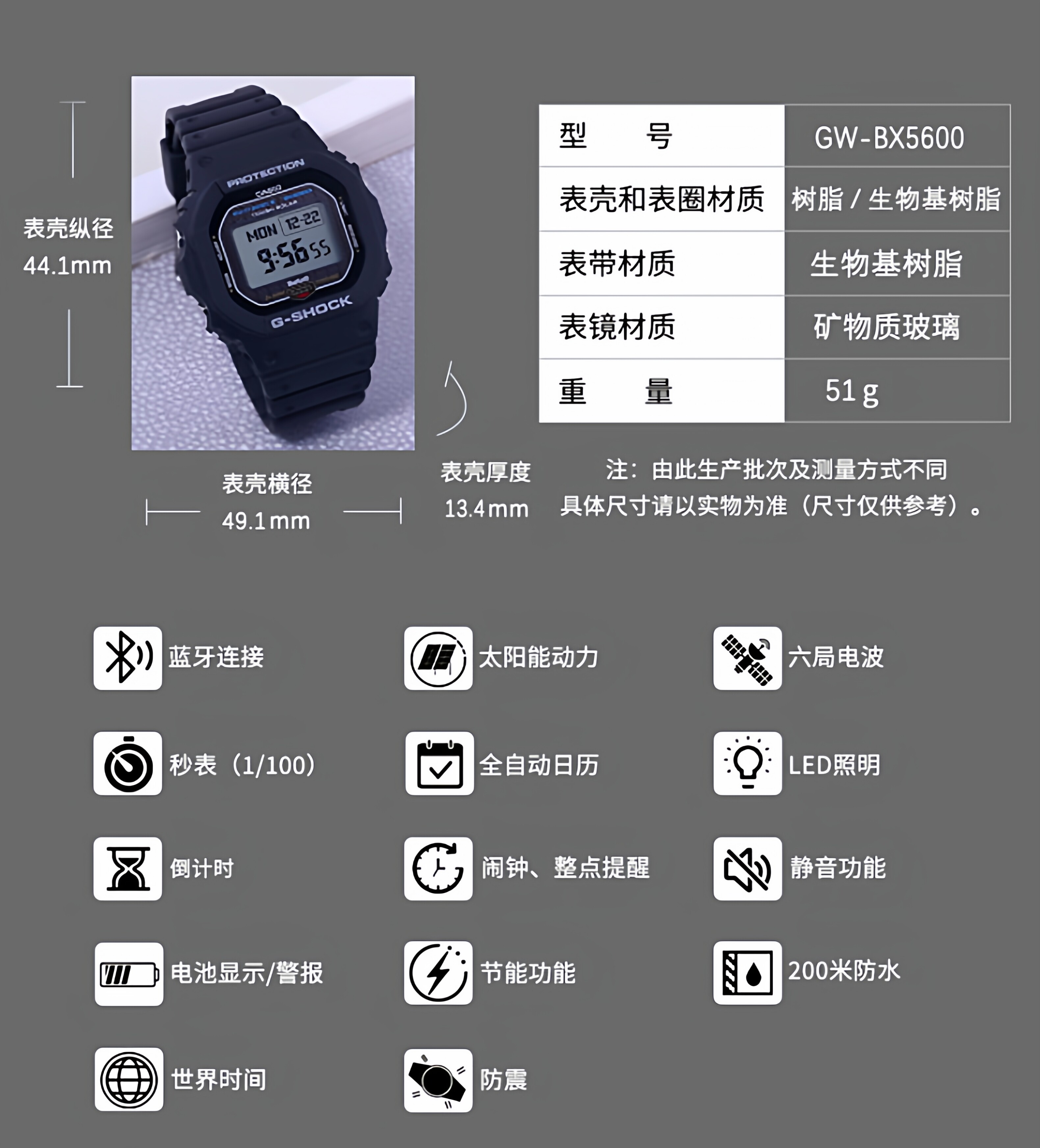 Casio Gwb5600 Gshock Light Energy Radio Wave Bluetooth Square Watch Men's Mip High-Definition Screen Gw-Bx5600