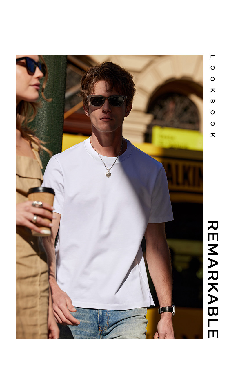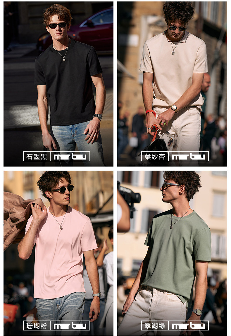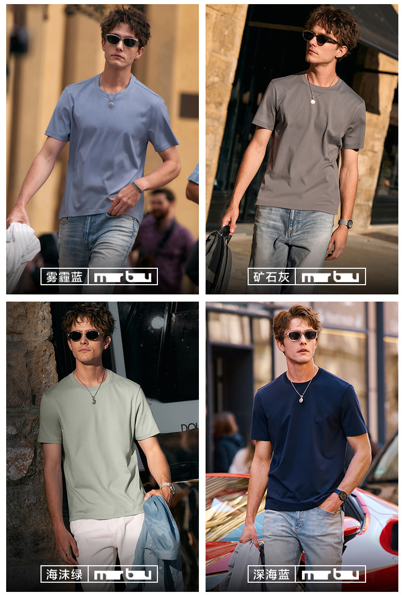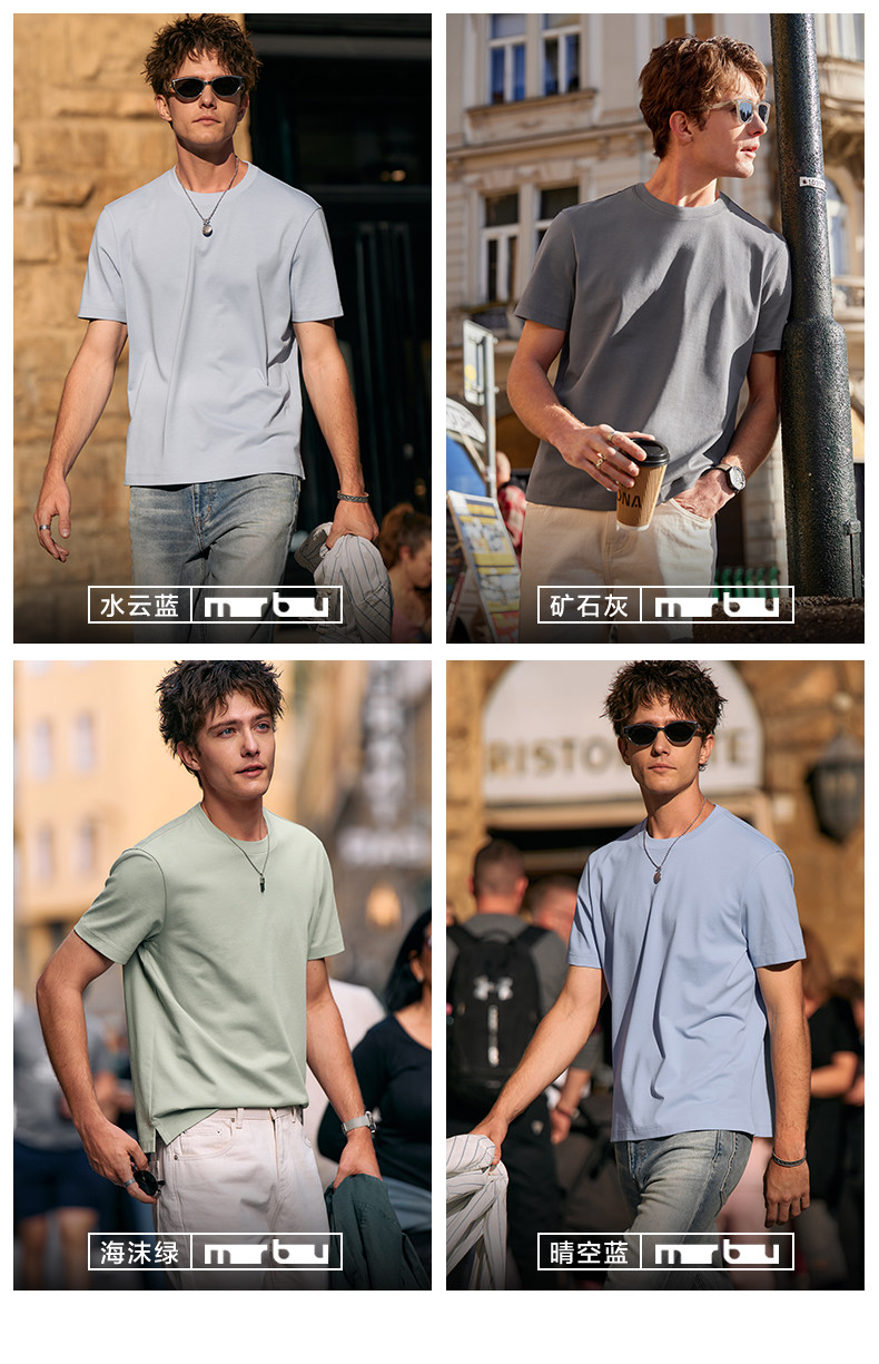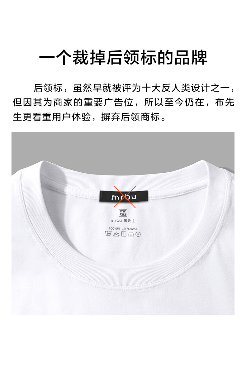 [Same Style as Tong Dawei] Mrbu Long-Staple Cotton Pure White Short-Sleeved T-Shirt Men's Round-Neck Summer T-Shirt