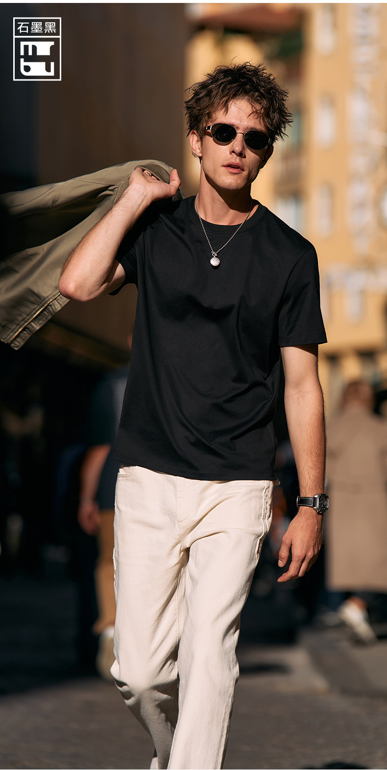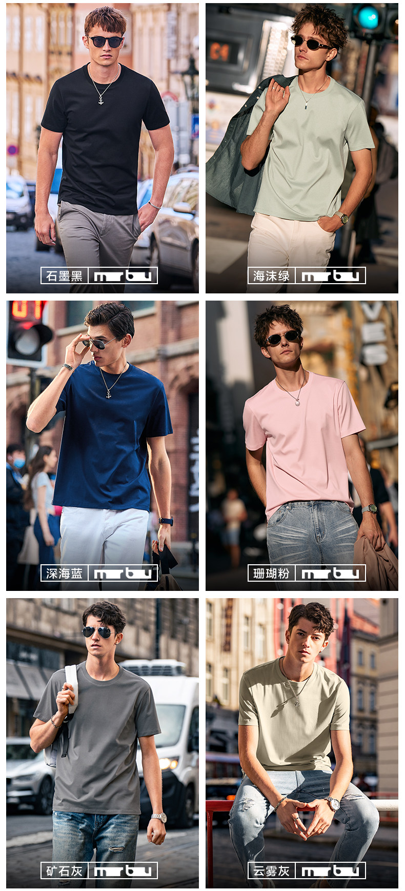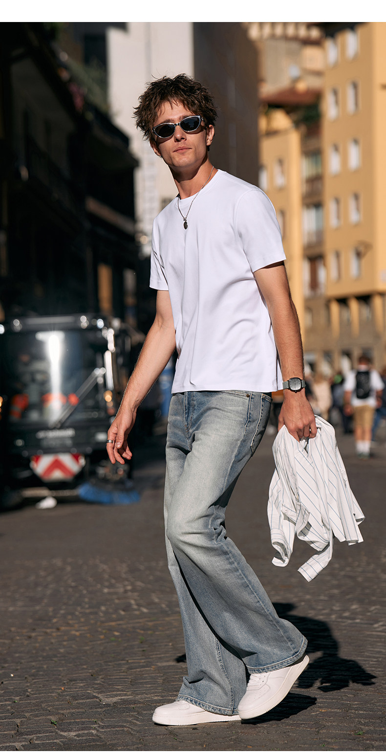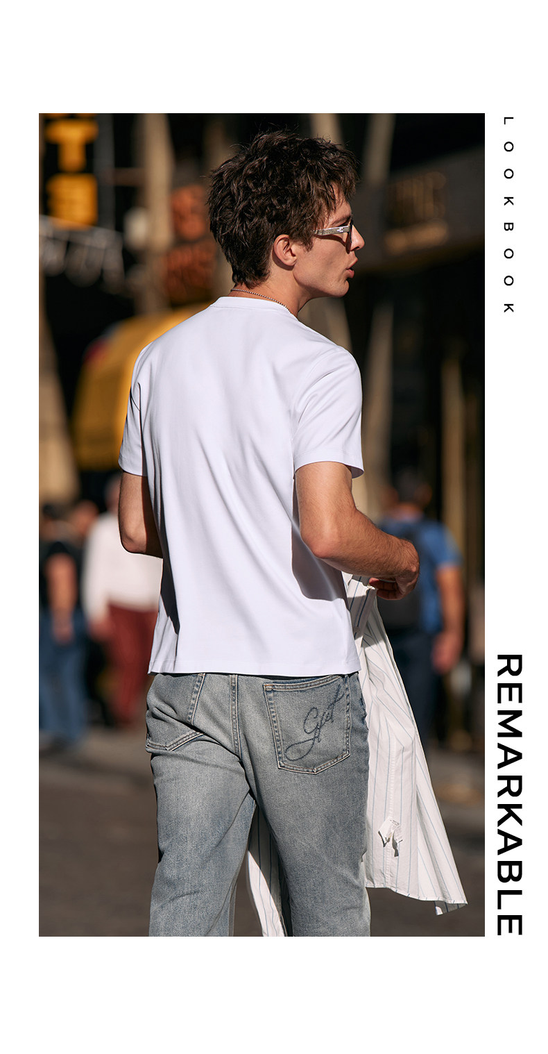 [Same Style as Tong Dawei] Mrbu Long-Staple Cotton Pure White Short-Sleeved T-Shirt Men's Round-Neck Summer T-Shirt