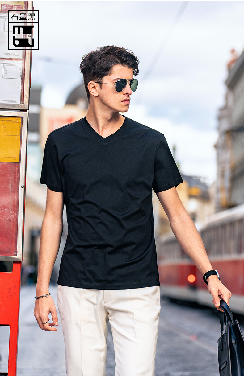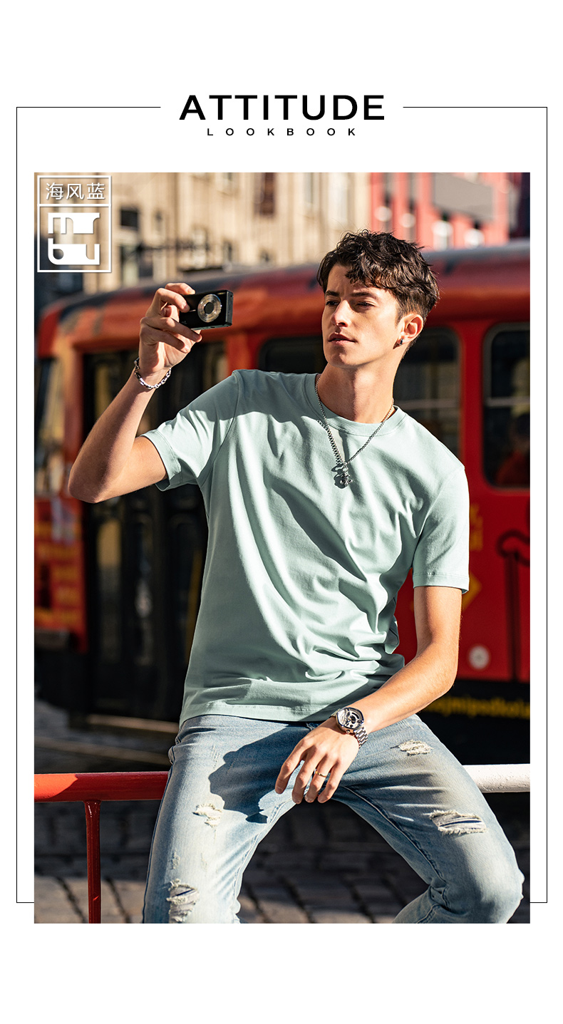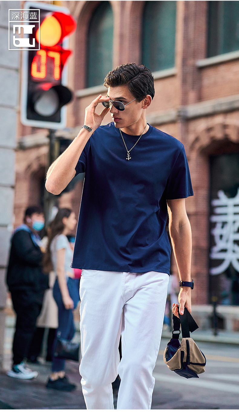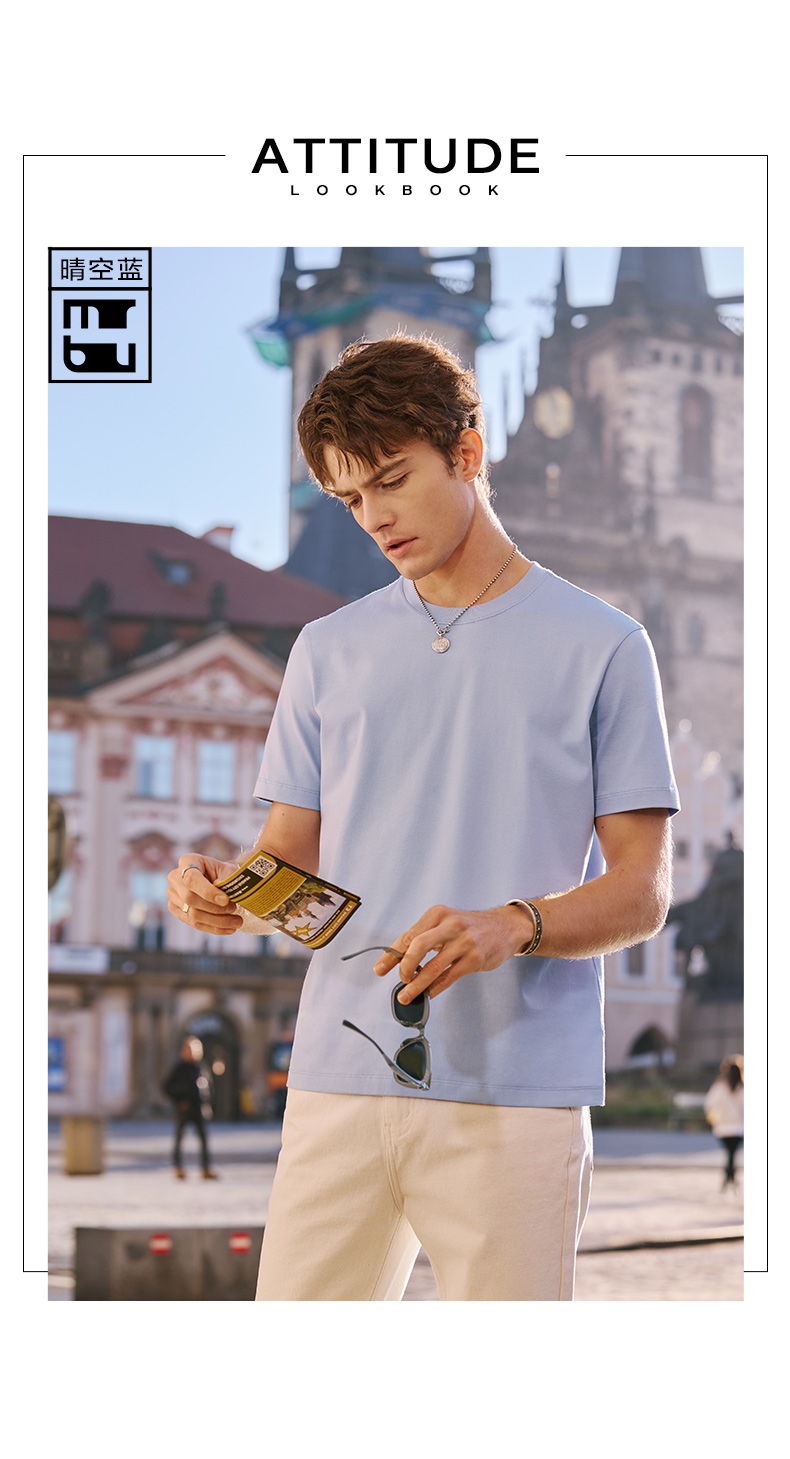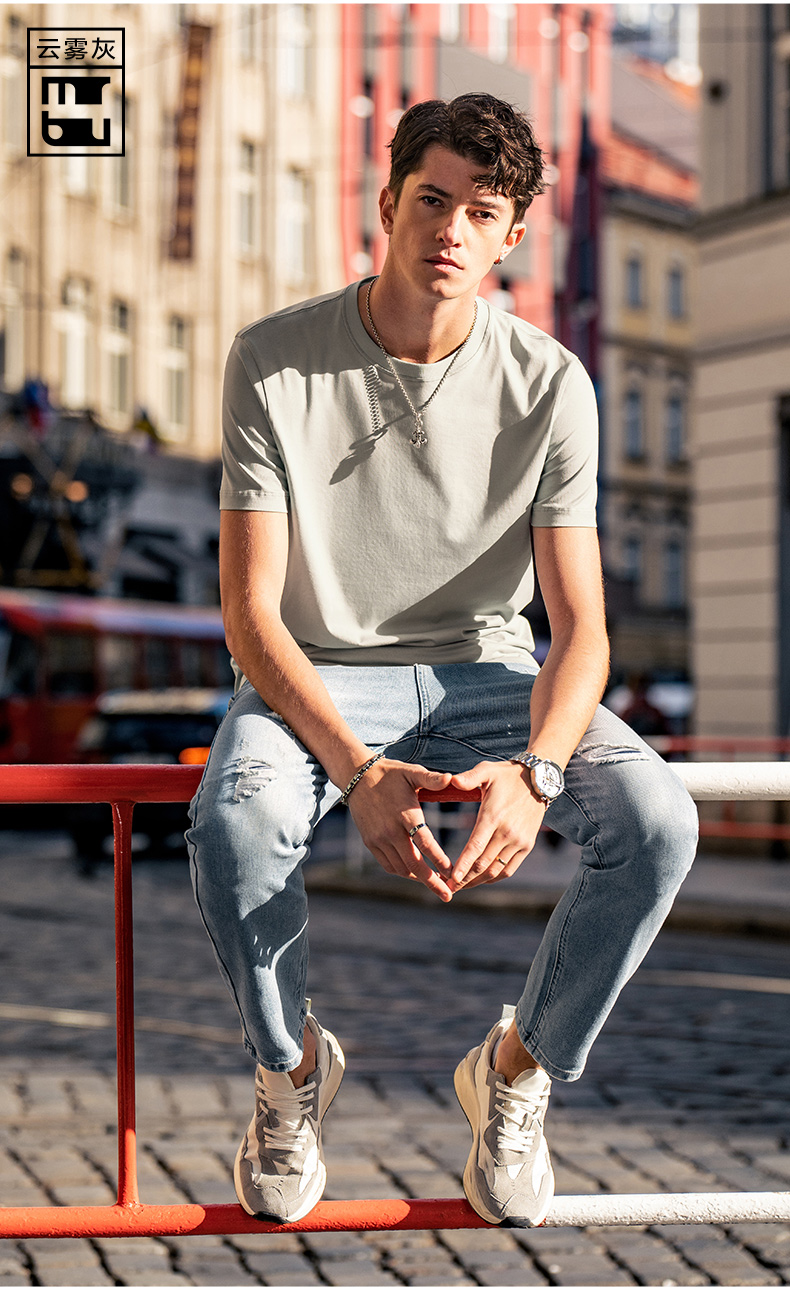 [Tong Dawei Same Style] Mr. MrBu Cloth Long-staple Cotton Pure White Short-sleeved T-shirt Men Round Neck Summer T-shirt