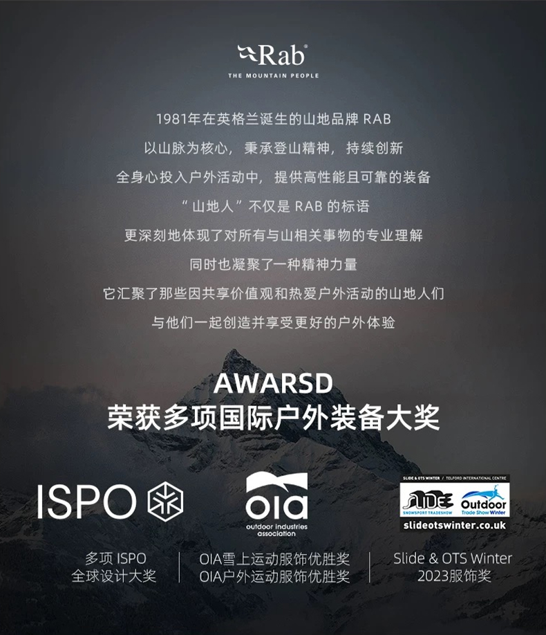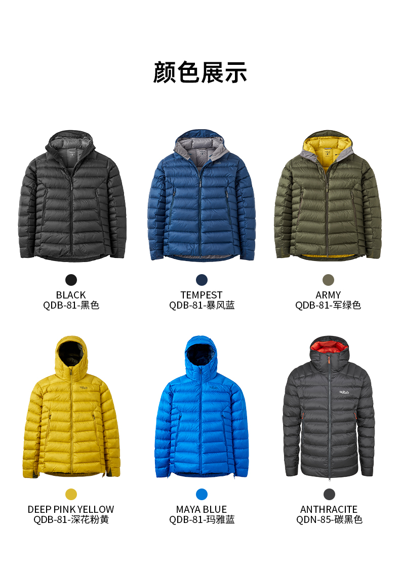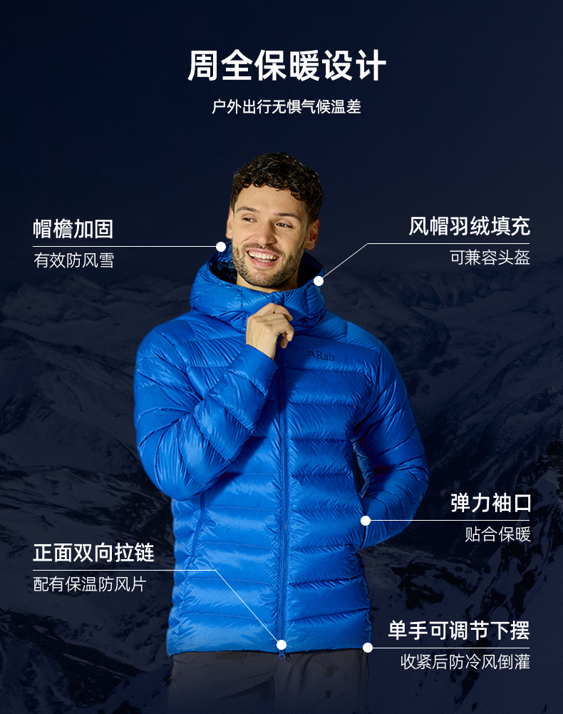 Rab Ruipo Electron Outdoor Men's 800 Fill Power Goose down Windproof Cold-Proof Warm Ribbed down Jacket