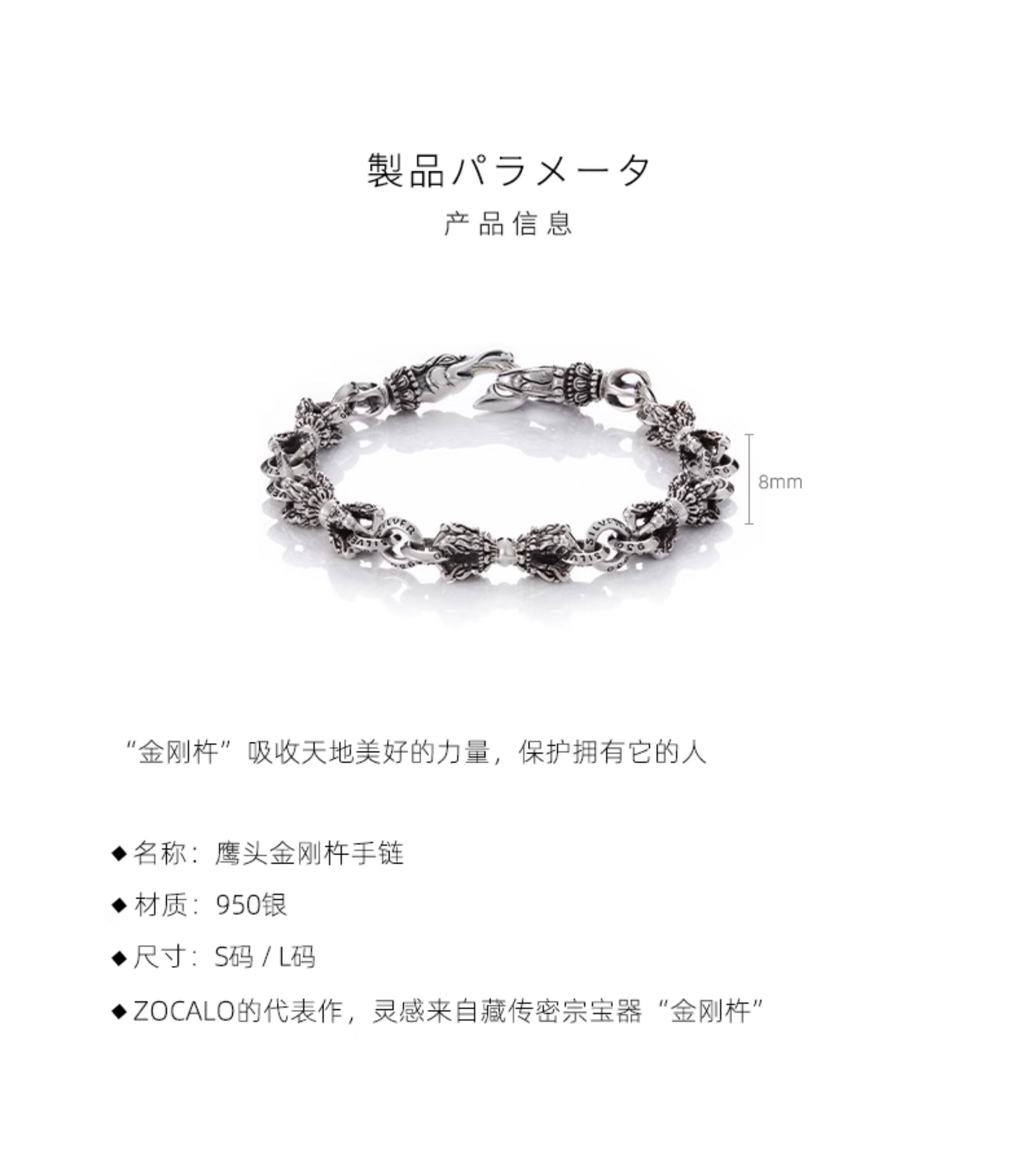 [Valentine's Day Gift] Zocalo Vajra Series Men's 950 Sterling Silver Jewelry Eagle Head Vajra Bracelet