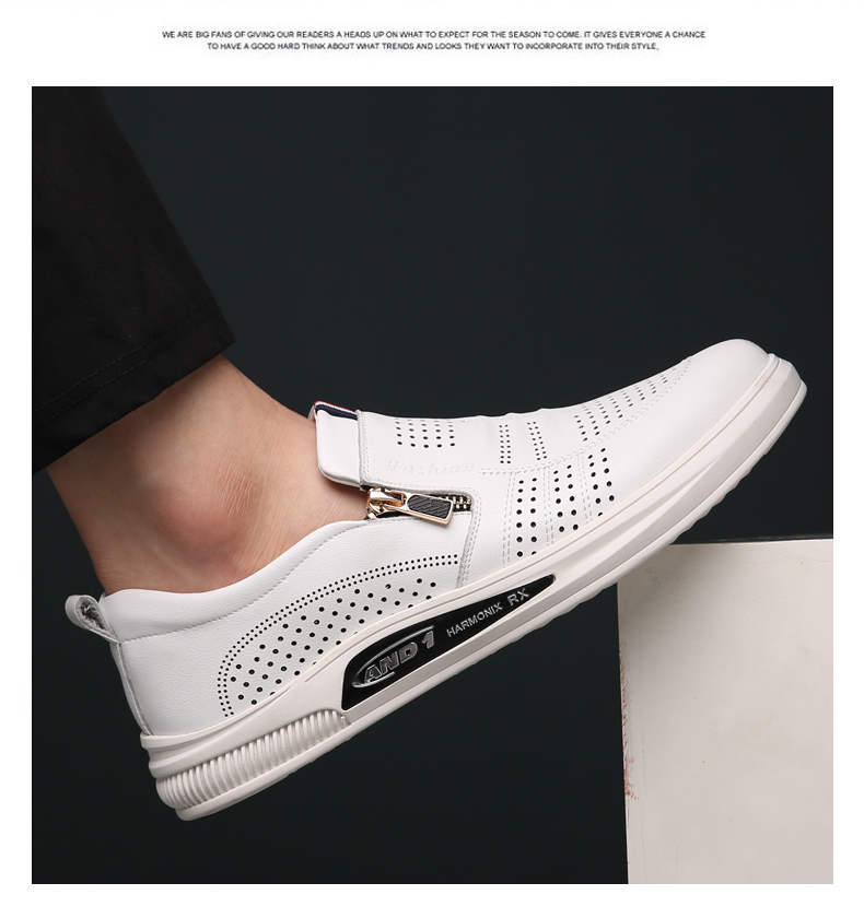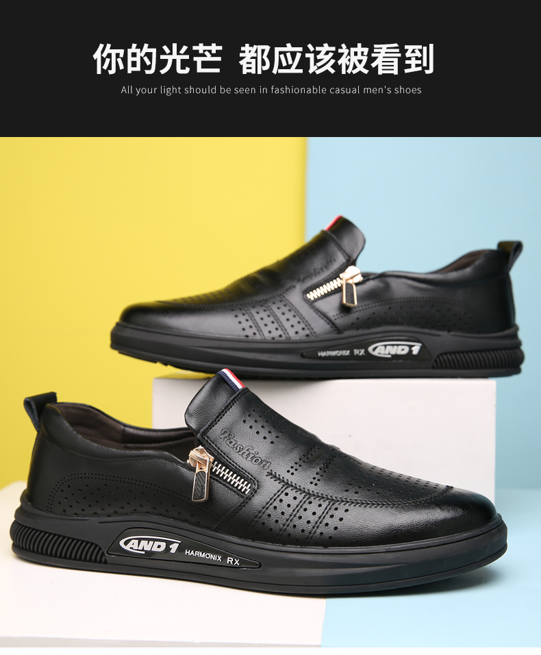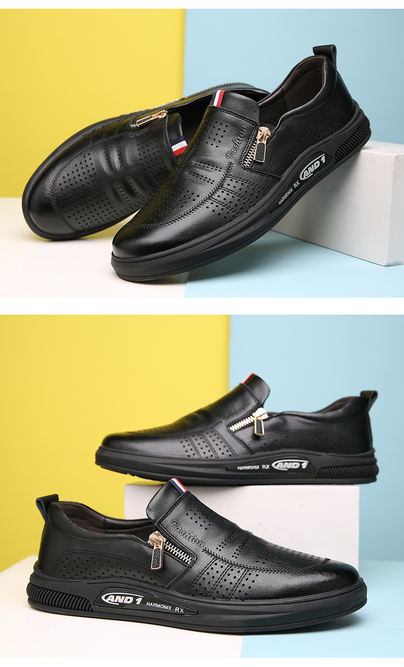 Genuine Leather Casual Shoes, Breathable Hollow Sandals, Men's Cowhide Shoes, Soft Leather, Soft Soles, Inner Height Increasing Men's Shoes, Summer Leather Shoes for Men
