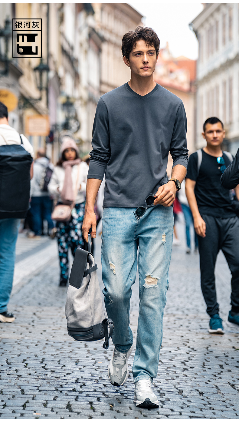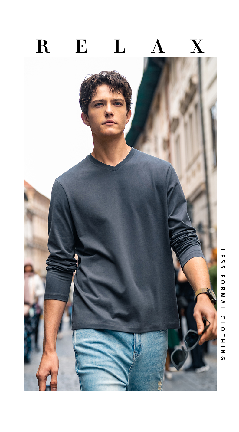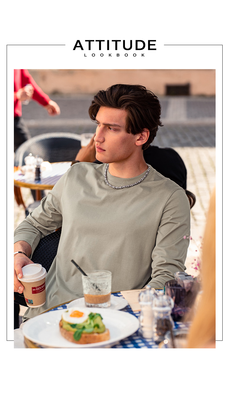 Celebrity-Style Mrbu Long-Staple Cotton White Long-Sleeve T-Shirt for Men, Casual Autumn and Winter Base Layer Top