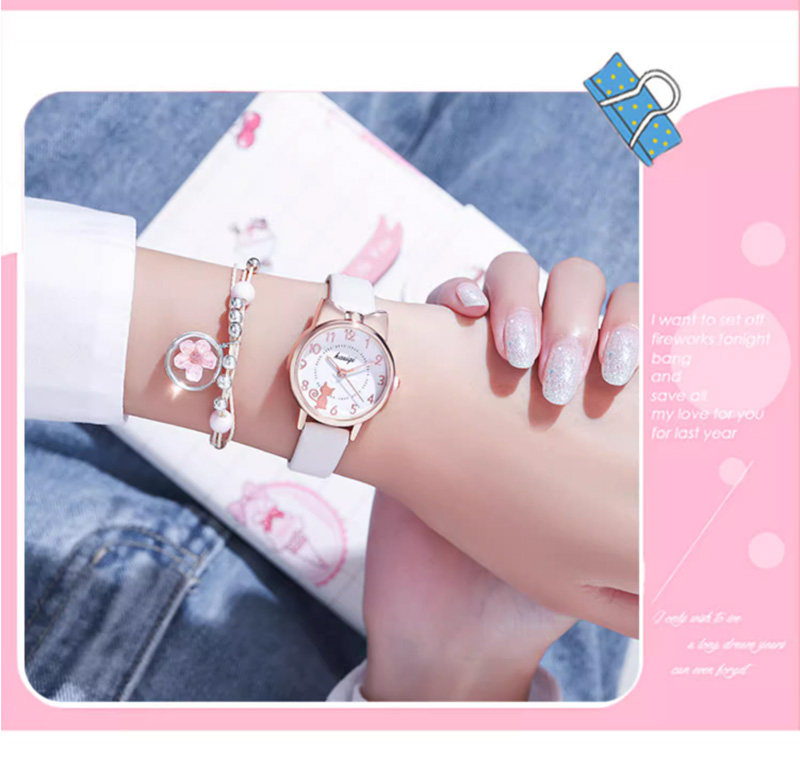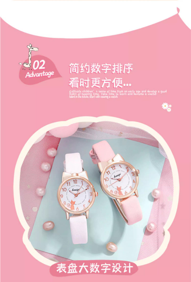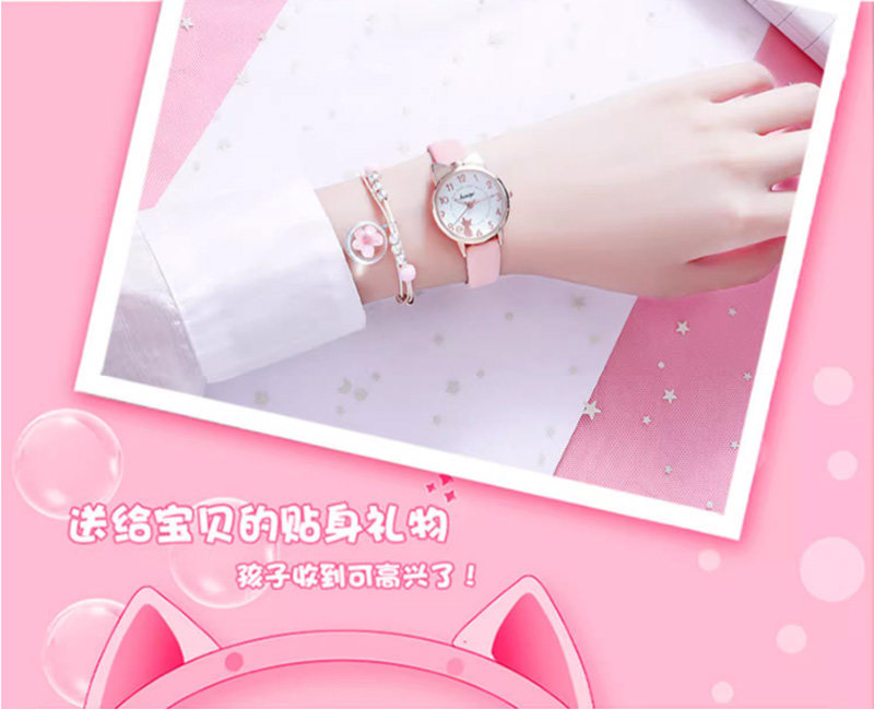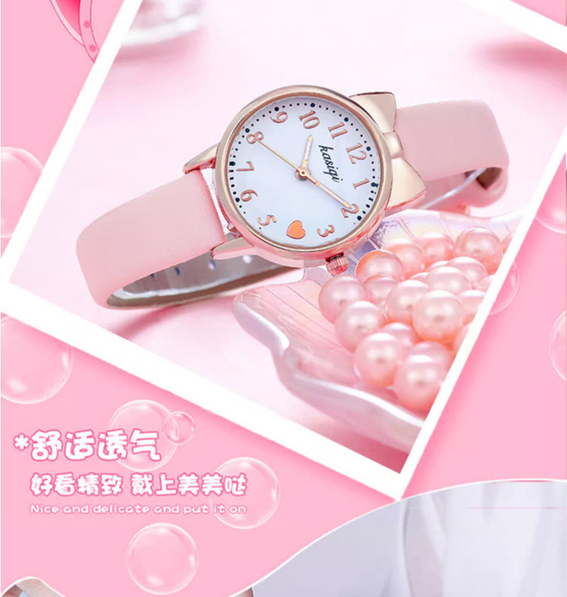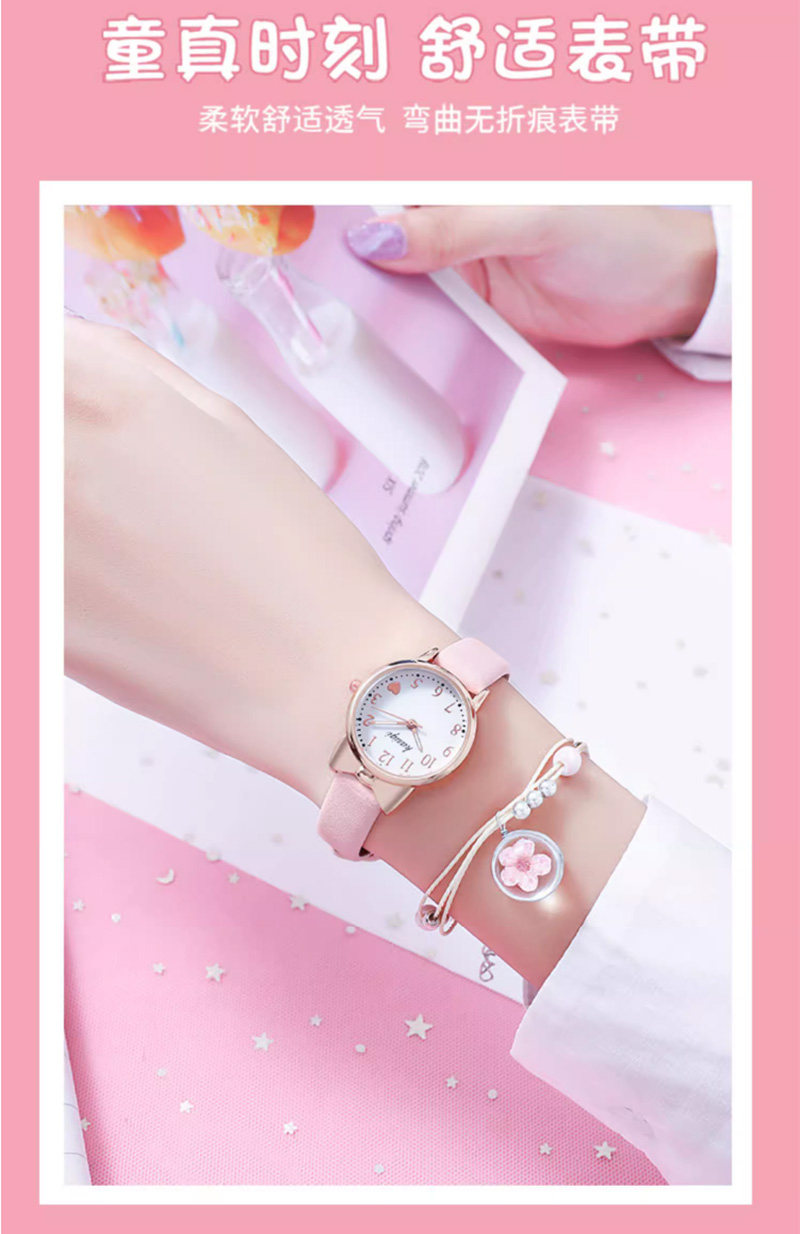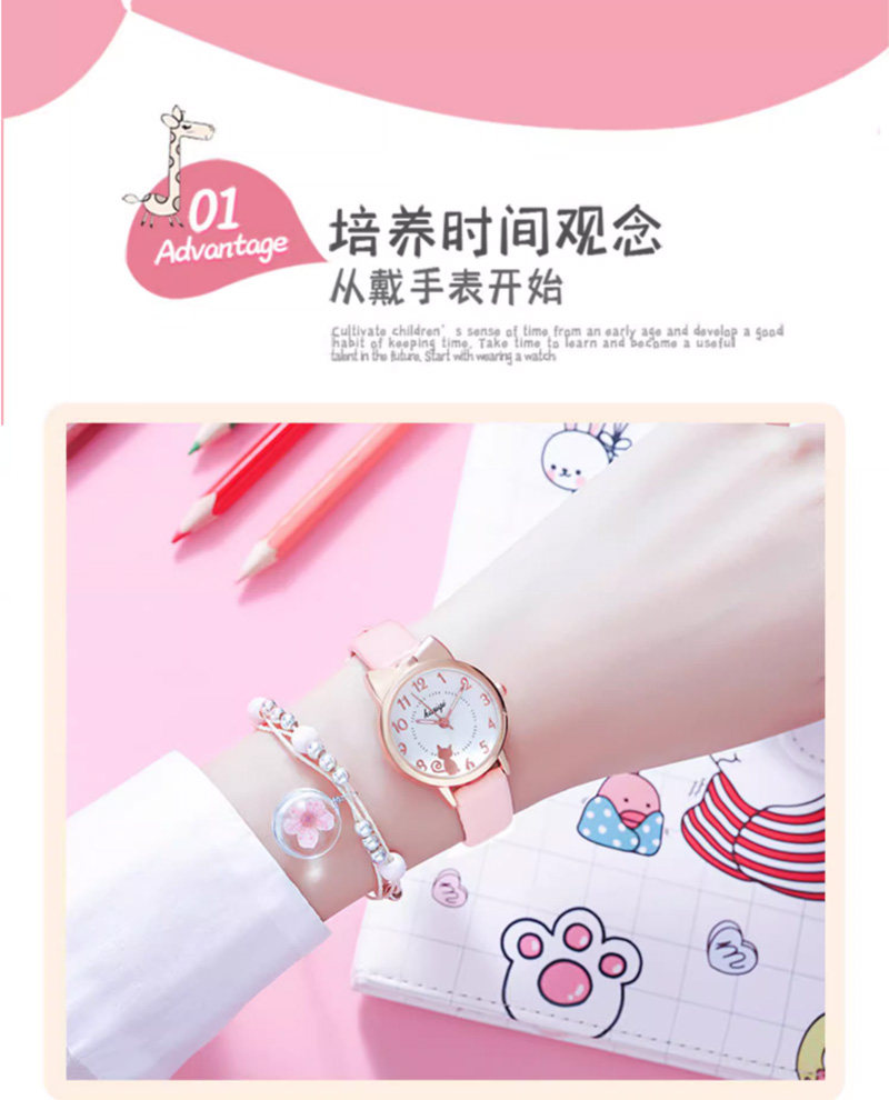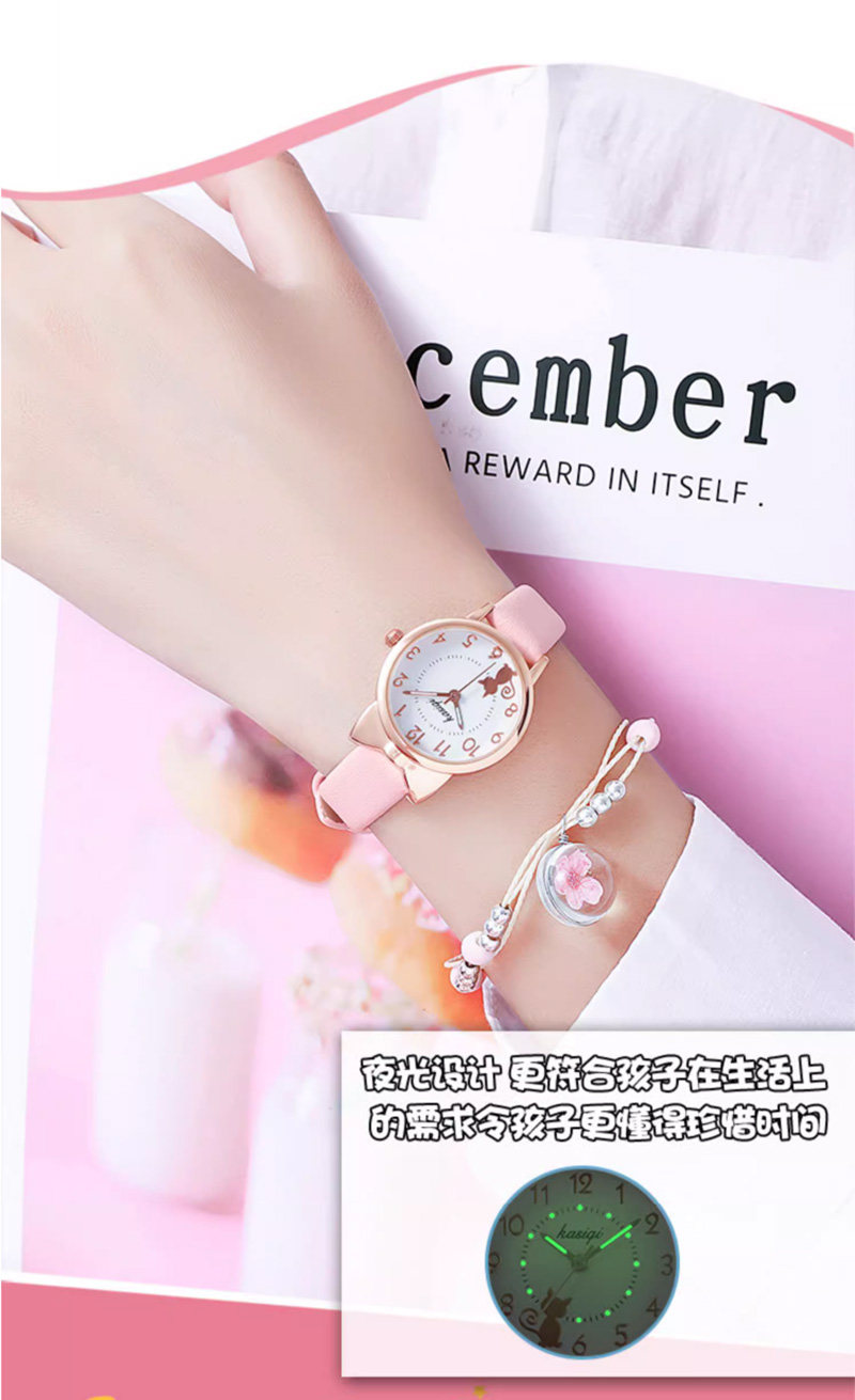 Children's Cherry Blossom Pink Watch for Girls, Luminous, Simple, Cute, Cartoon, Retro, Girly, Trendy, Versatile Quartz Watch