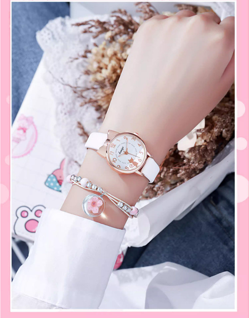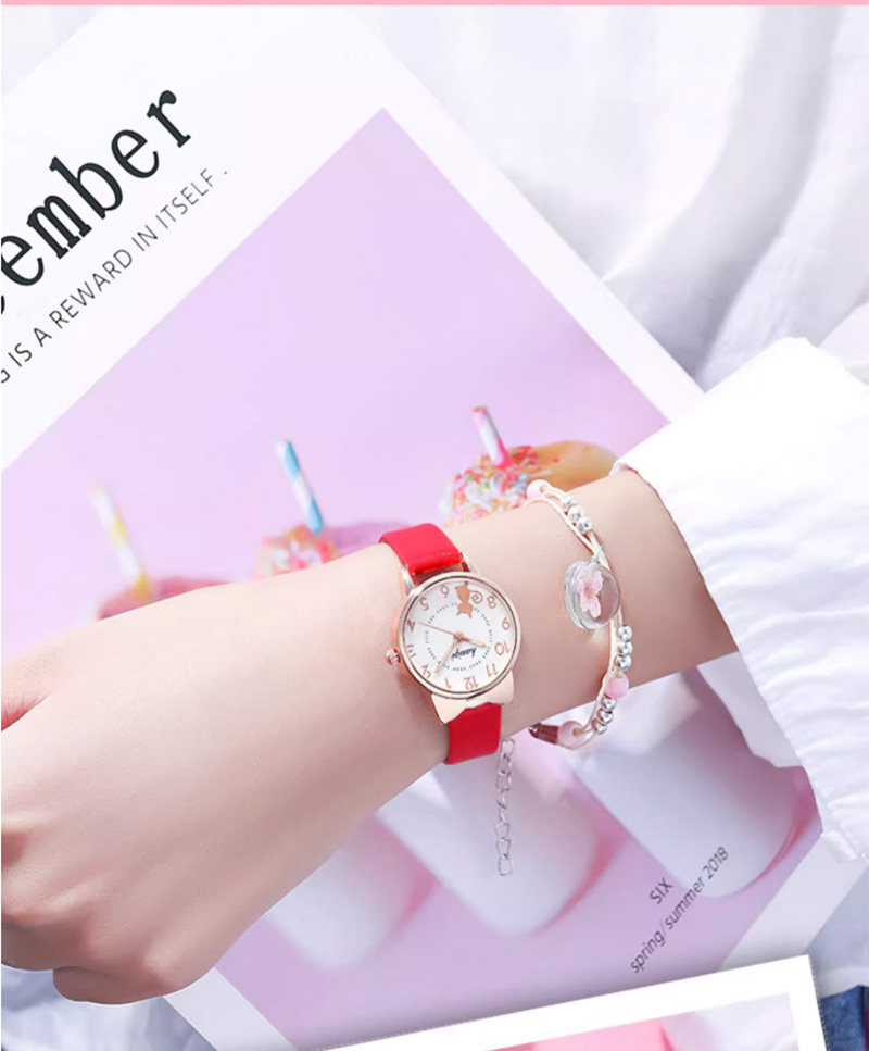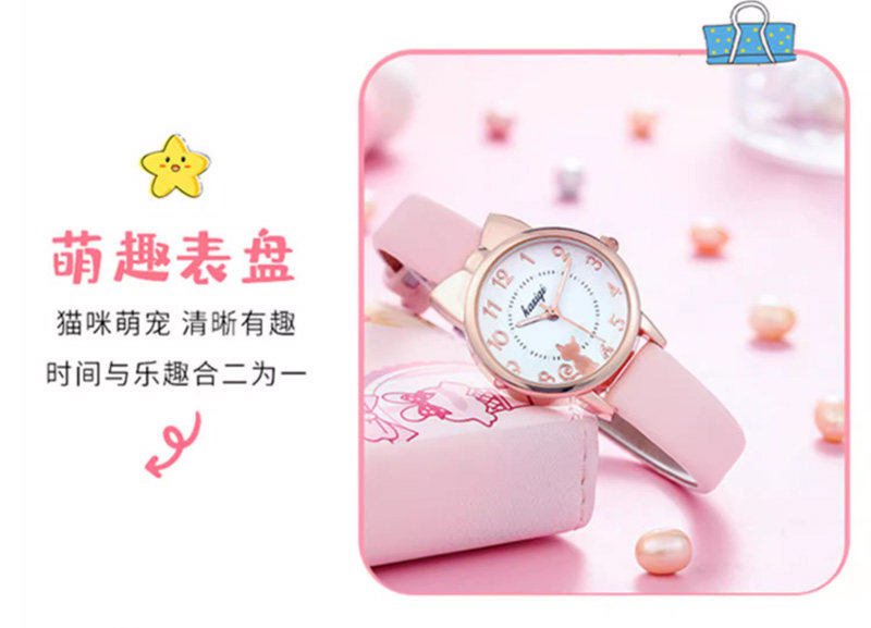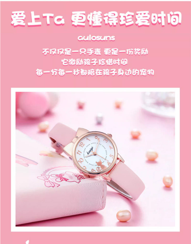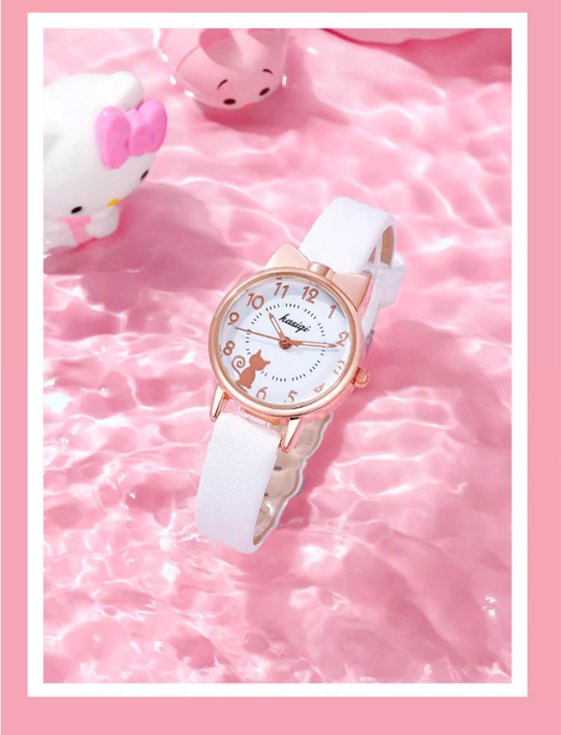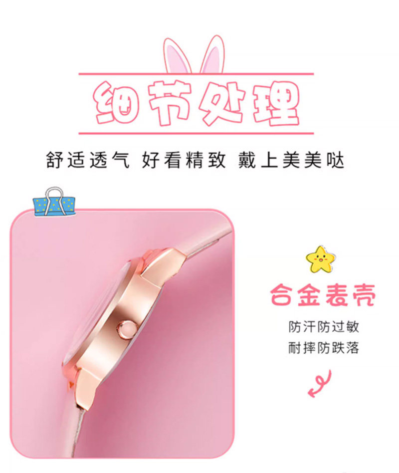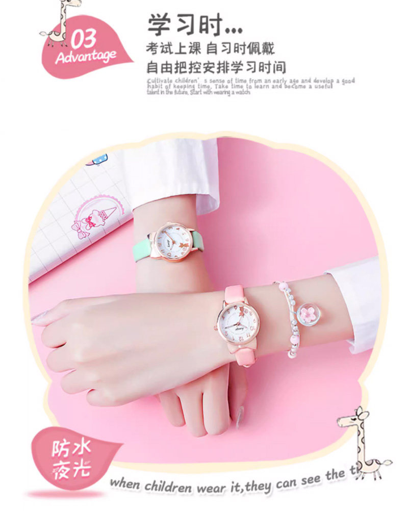 Children's Cherry Blossom Pink Watch for Girls, Luminous, Simple, Cute, Cartoon, Retro, Girly, Trendy, Versatile Quartz Watch