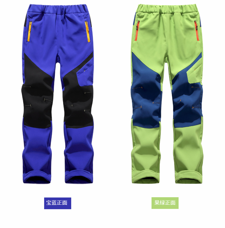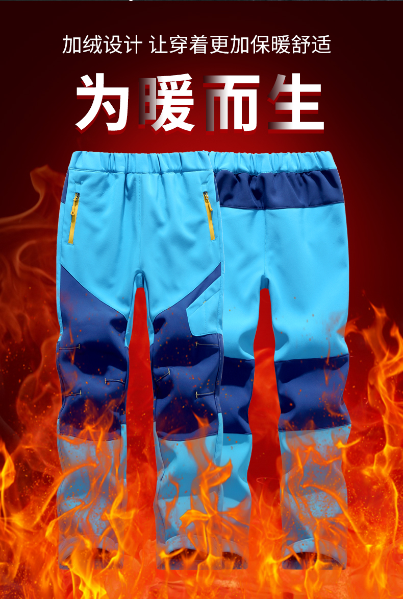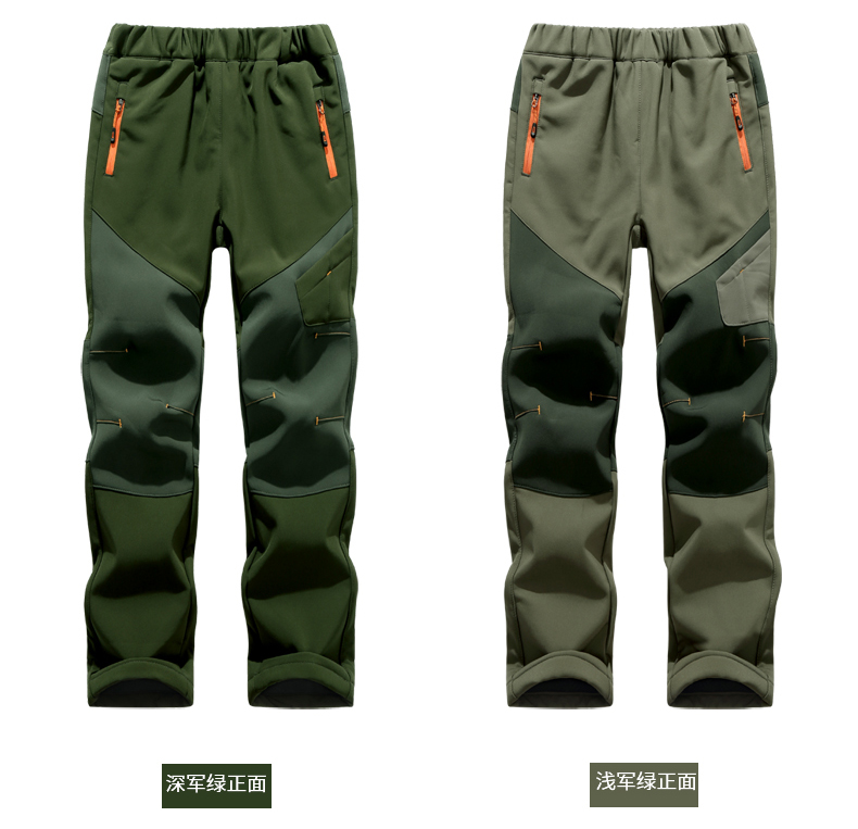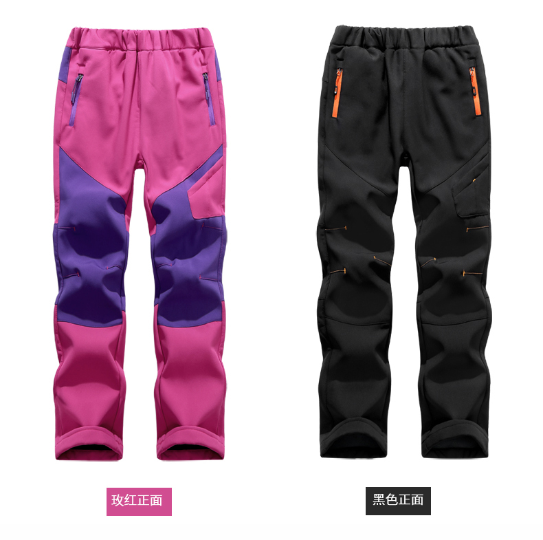 Outdoor Softshell Pants for Boys and Girls, Thick Fleece-Lined, Children's Ski Pants, Autumn and Winter, Warm, Waterproof, Windproof