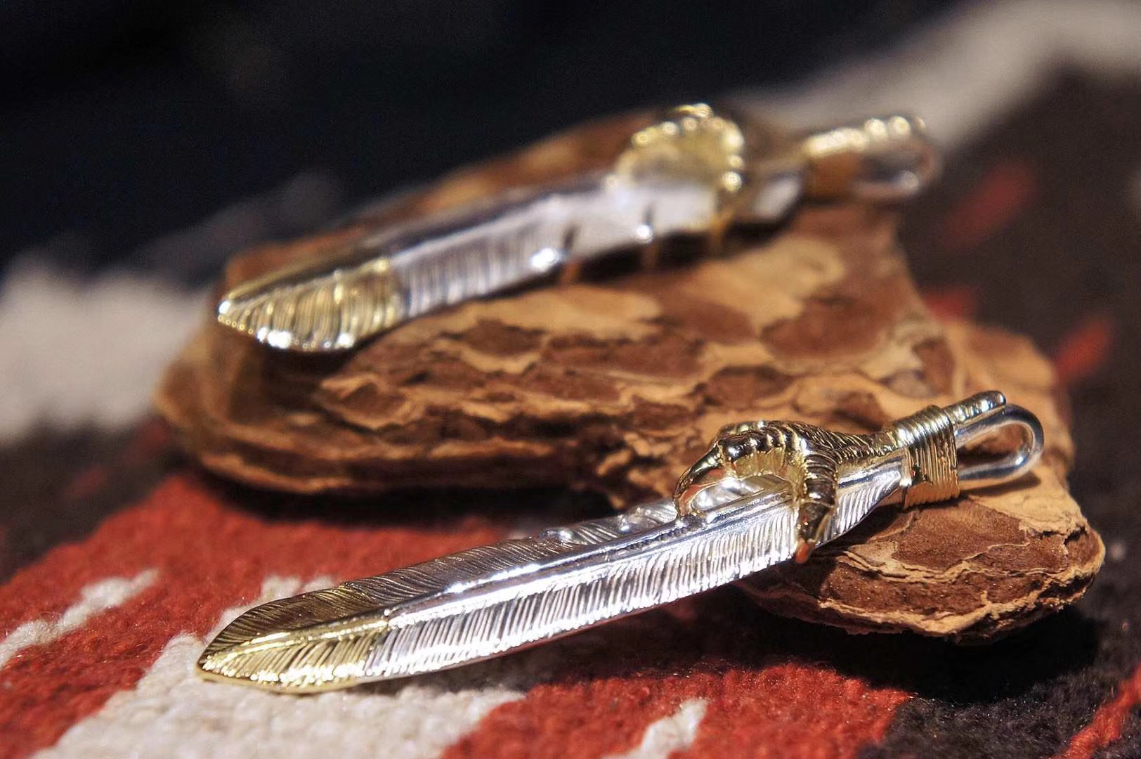 规格:L码 (长度约6.8cm) 附件:保修卡 防尘袋 FIRST-ARROW's 最早于1996年由伊藤一也(Kazuya Ito)所创立。品牌以太阳、弓和箭作为形象,也极大程度上区别于市场上的印第安银饰。太阳表示能量和力量的象征;箭代表着一种正确方向的引导,祈祷着好运。FIRST-ARROW's 采用了大量的印第安元素,老鹰是勇敢的象征,羽毛代表祝福或是一种护身符,鹰爪表示抓住梦想,唐草(蔓藤花纹)图案诠释的是一种生命力。