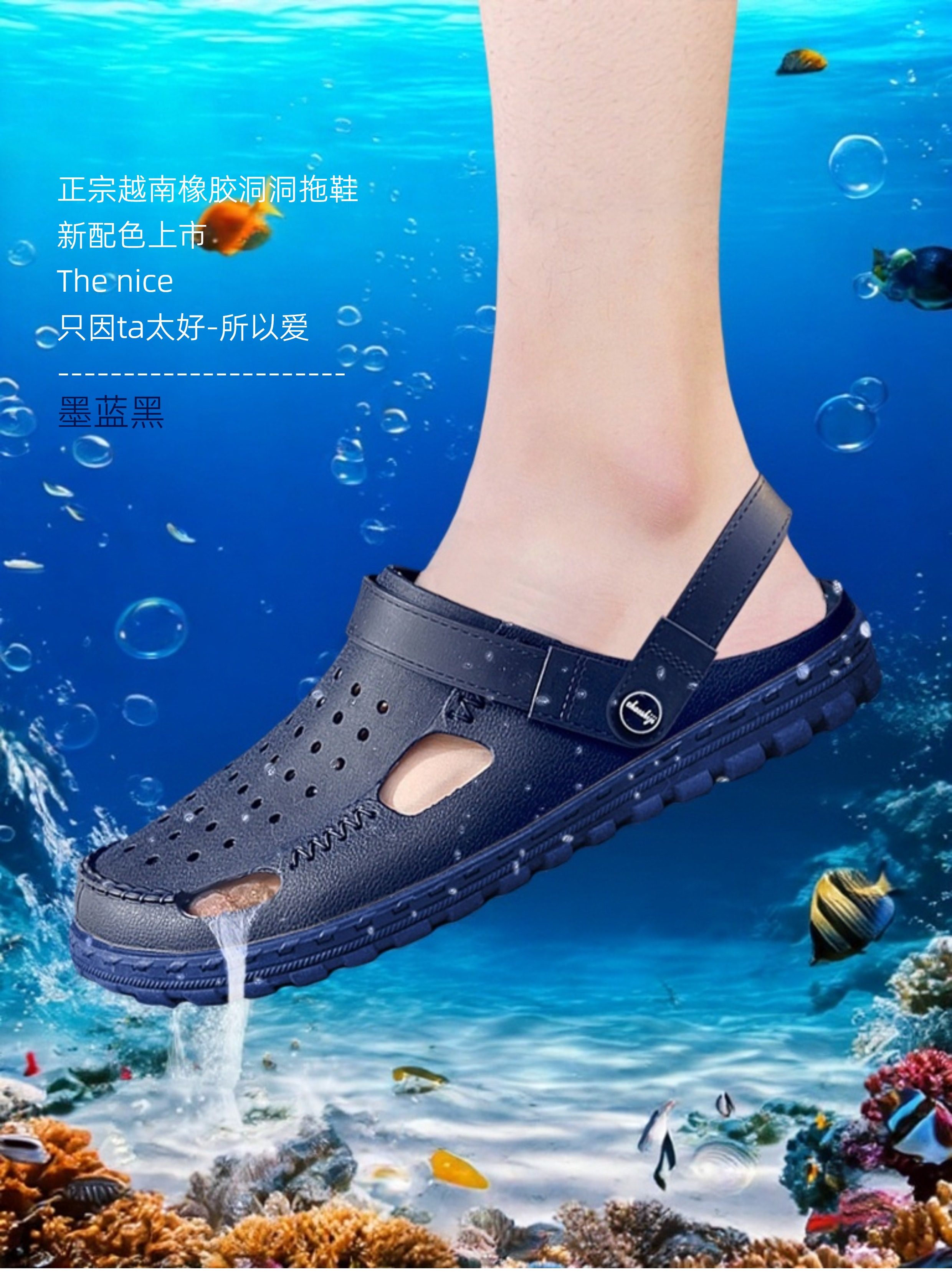 Super Soft Imported Vietnamese Rubber Sandals for Men, High-End Clogs That Don'T Rub the Feet, Anti-Odor, Hollow and Breathable Beach Shoes