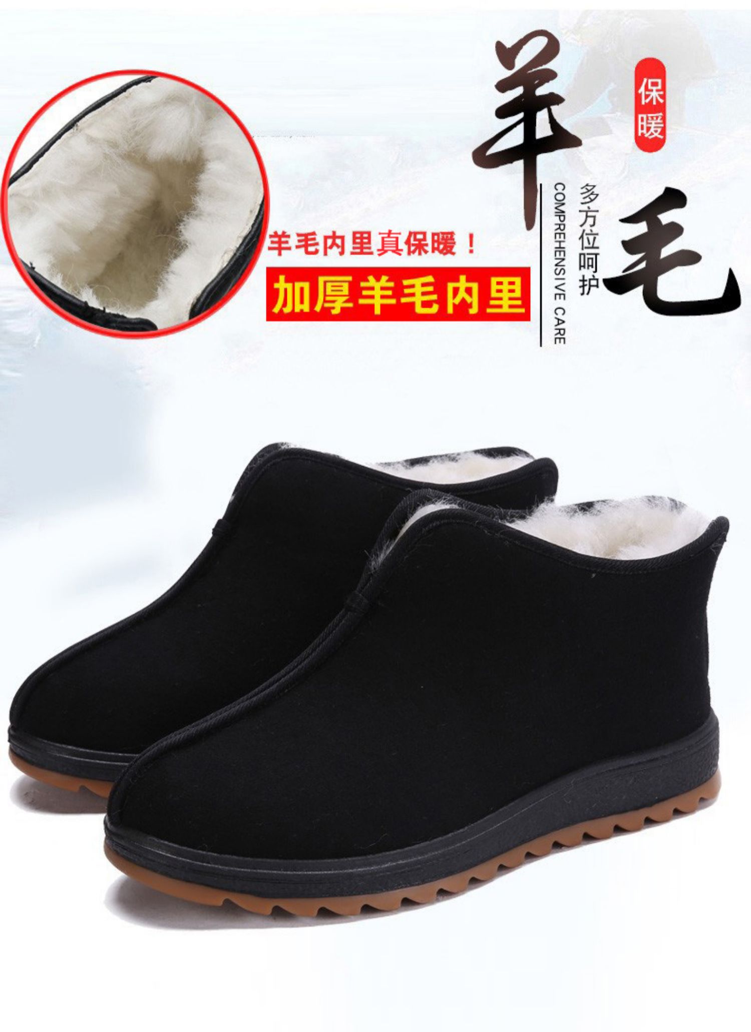 Wool-Lined Men's Winter Shoes, Old Beijing Cloth Shoes for Men, Fleece-Lined, Warm, Thickened, Large Size, Dad, Elderly, Old Man Cotton Boots