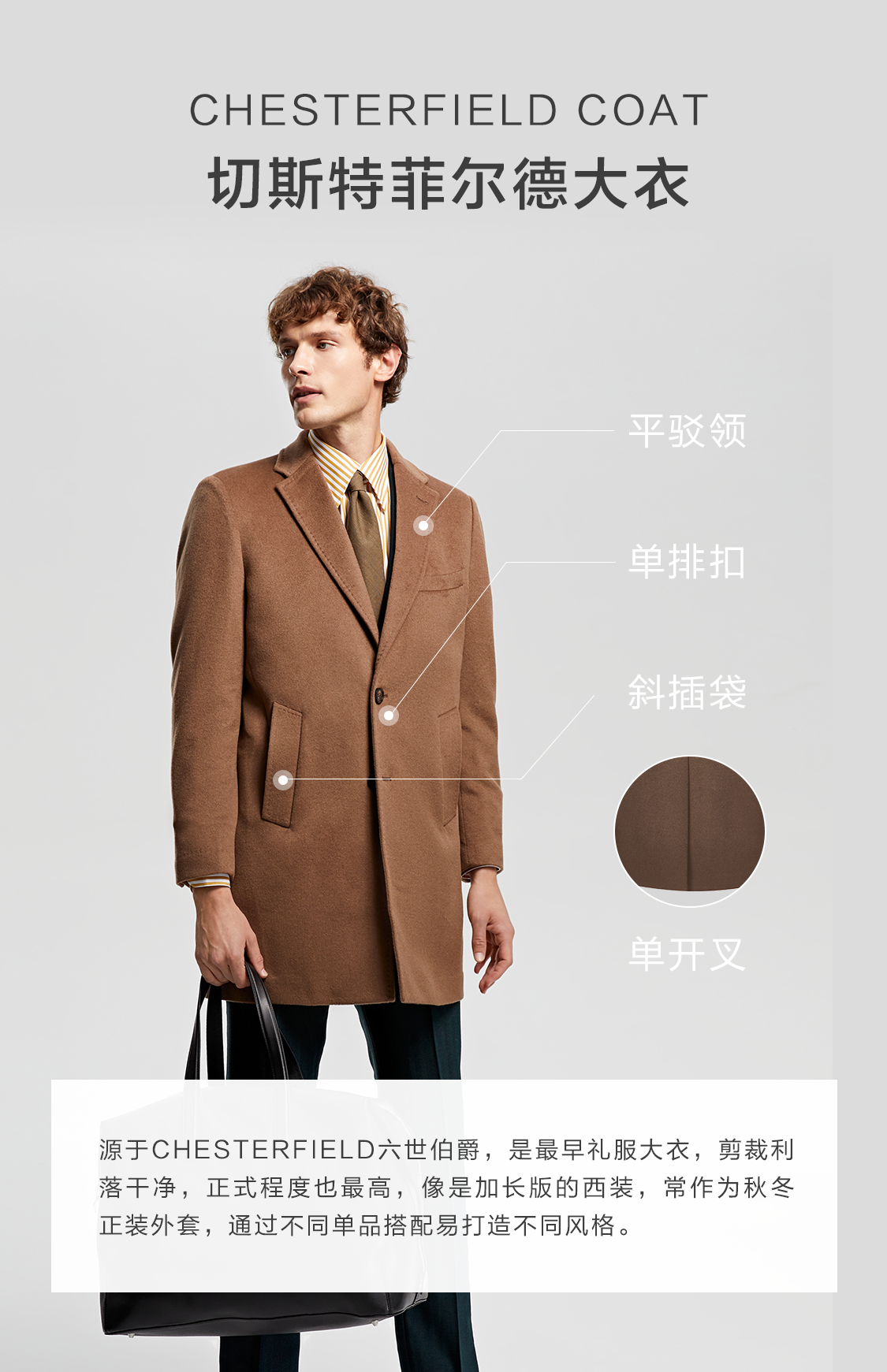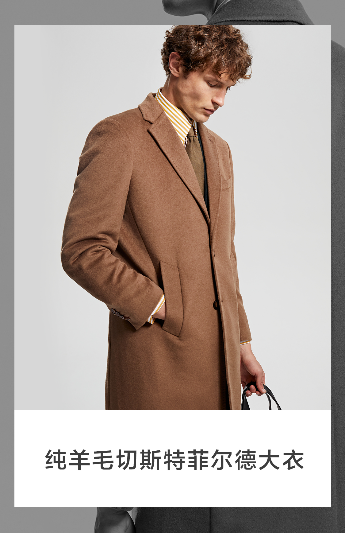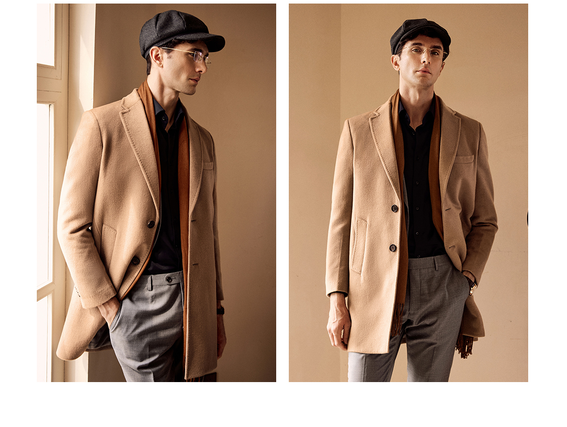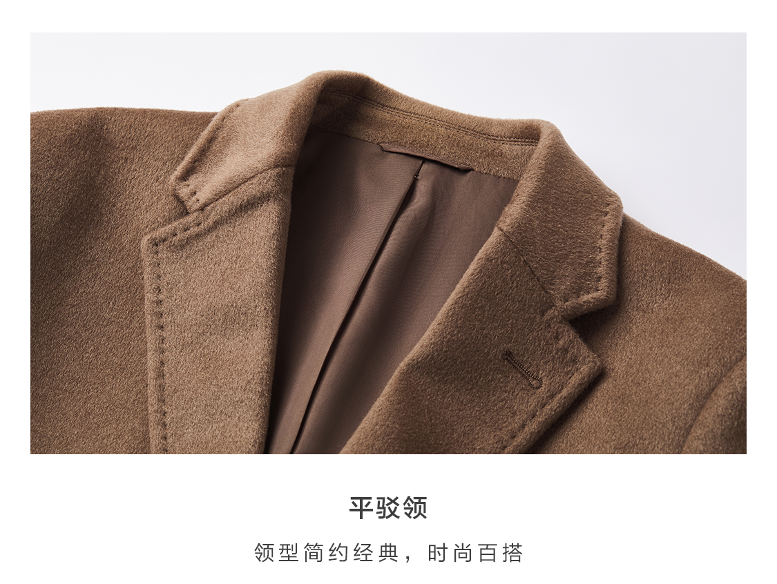 Bai Pin Pure Australian Wool Chesterfield Camel Coat Men's Mid-Length Lapel Business Woolen Jacket
