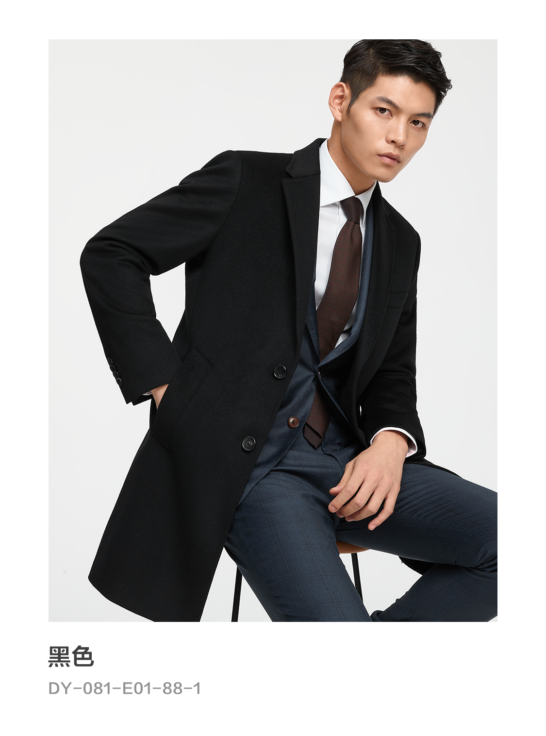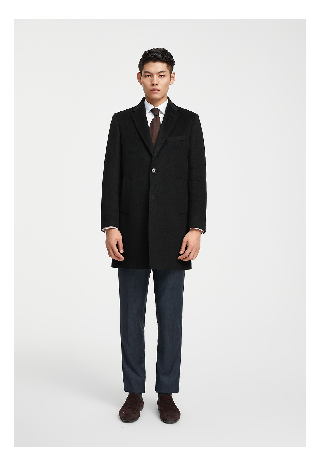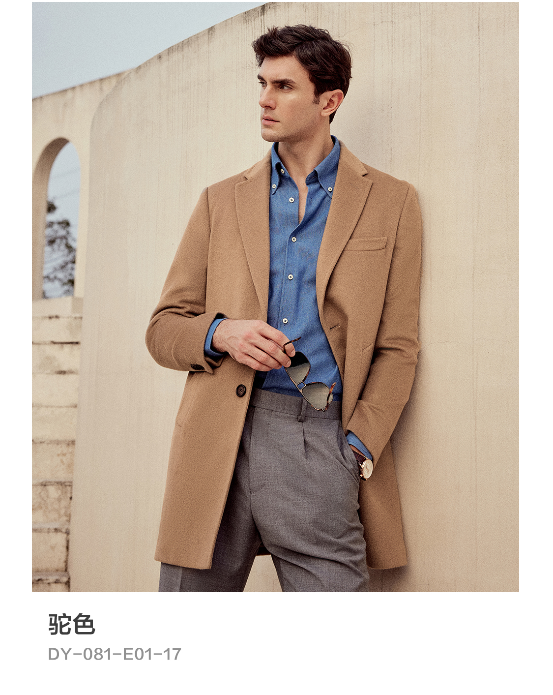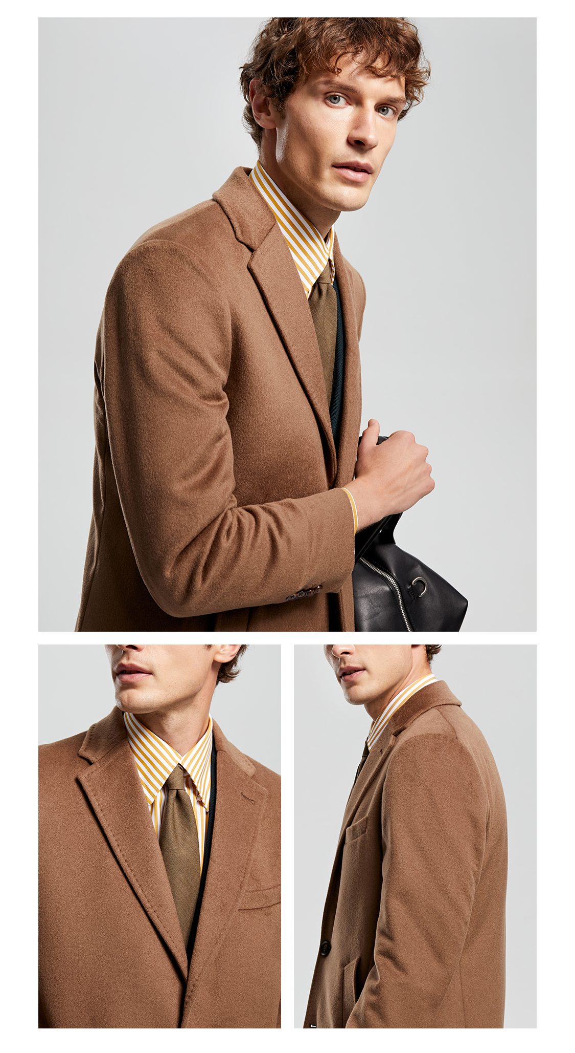 Bai Pin Pure Australian Wool Chesterfield Camel Coat Men's Mid-Length Lapel Business Woolen Jacket
