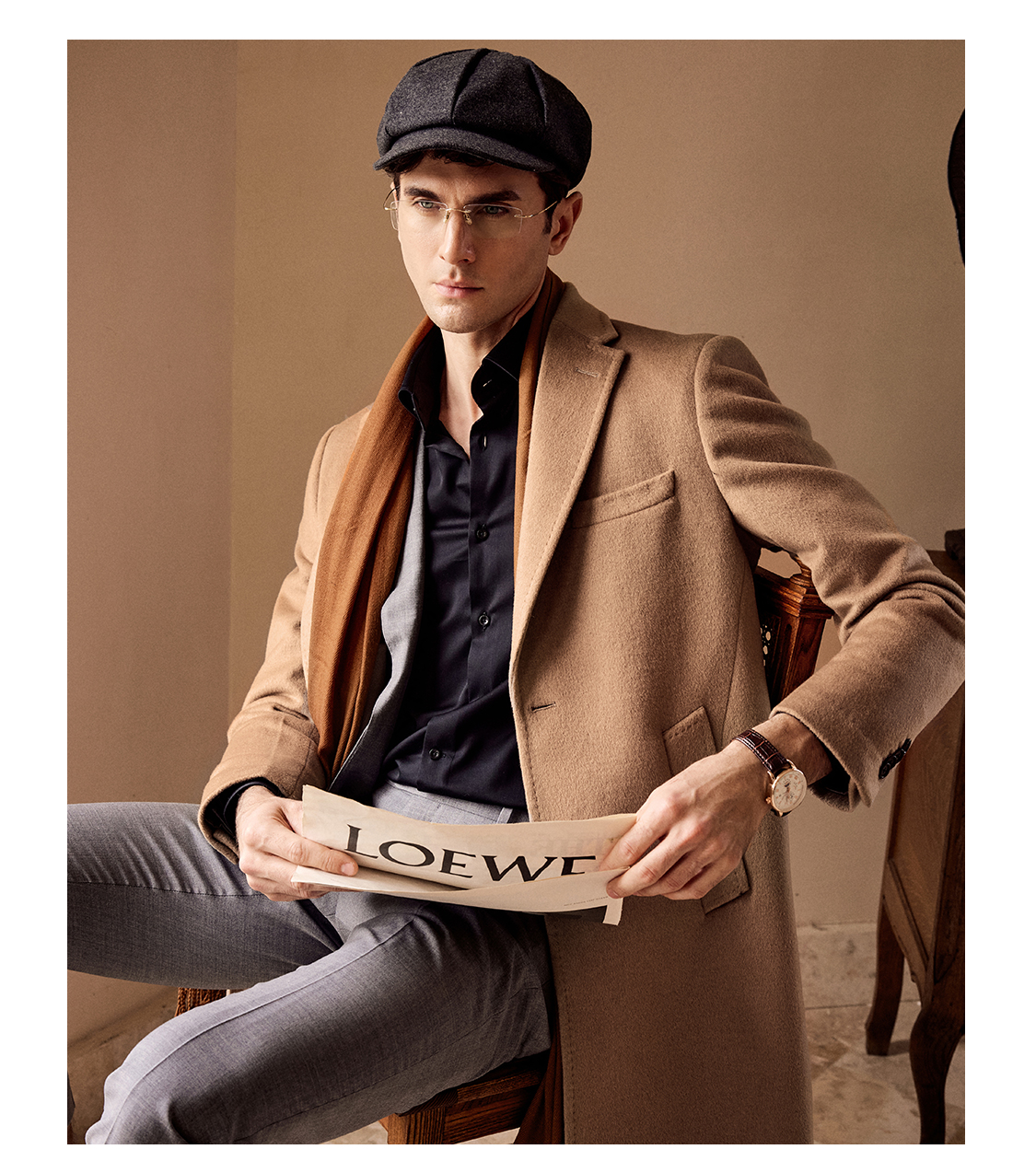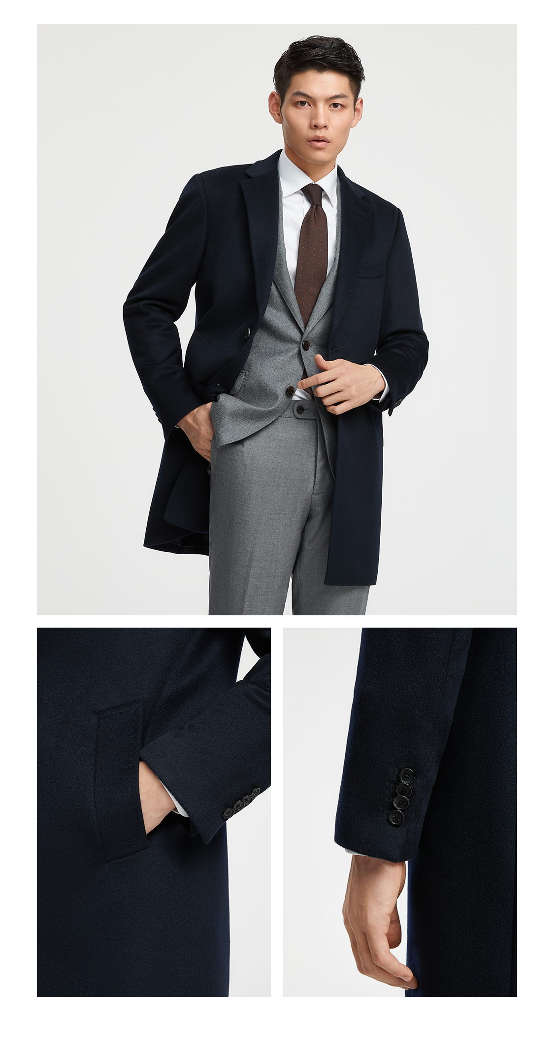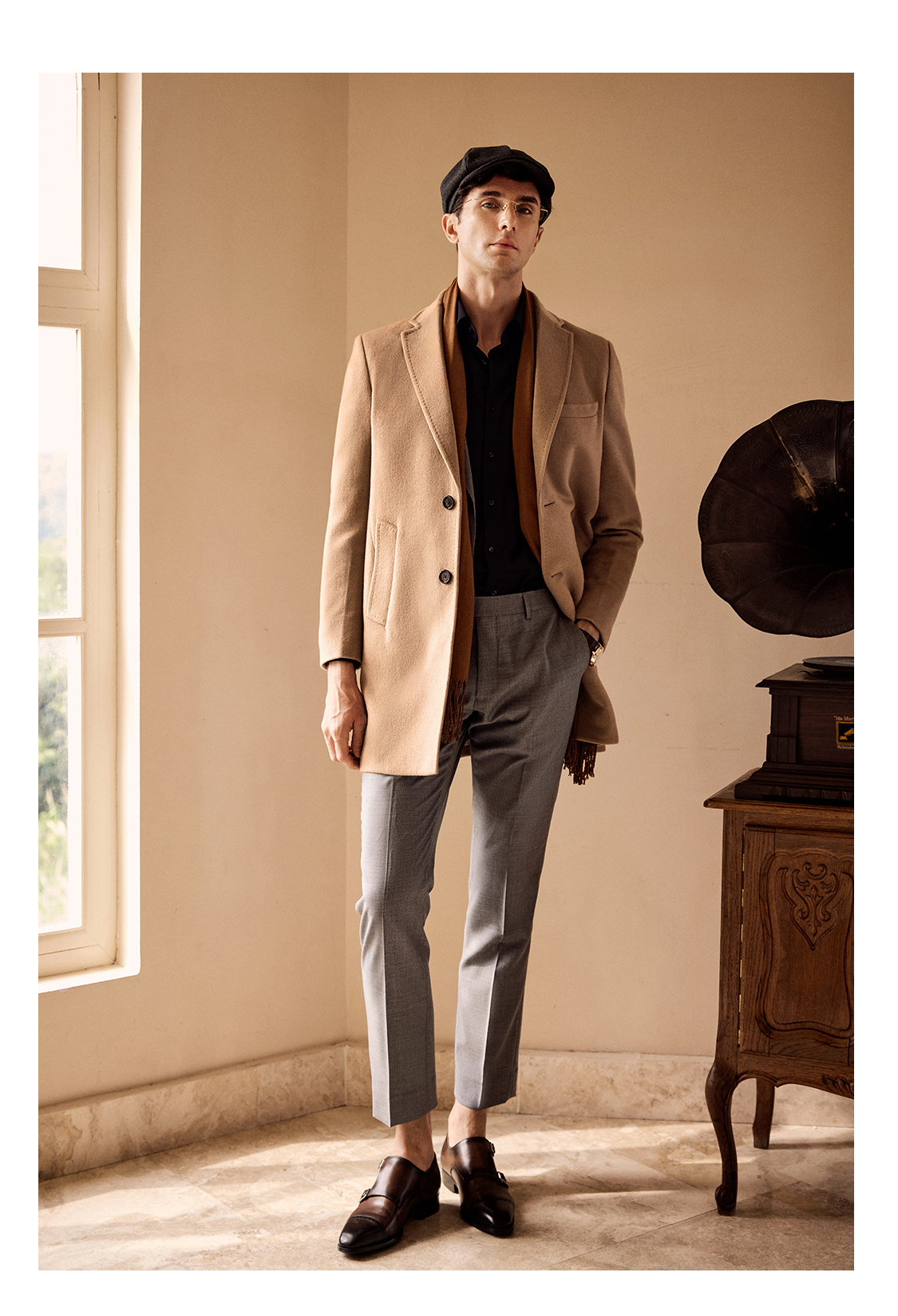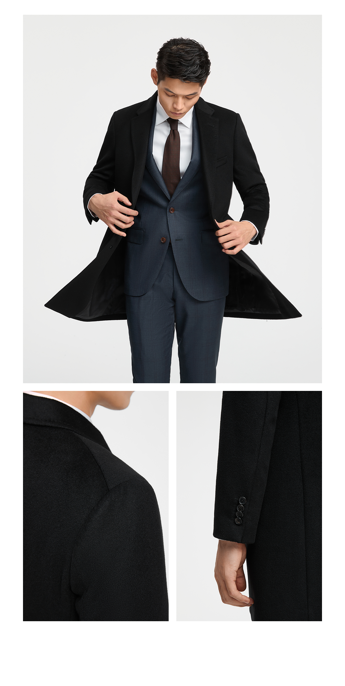 Bai Pin Pure Australian Wool Chesterfield Camel Coat Men's Mid-Length Lapel Business Woolen Jacket