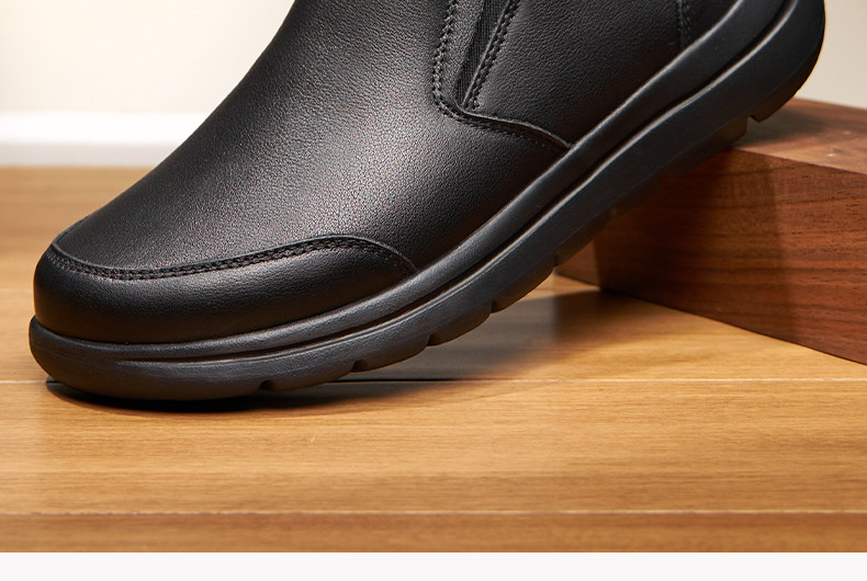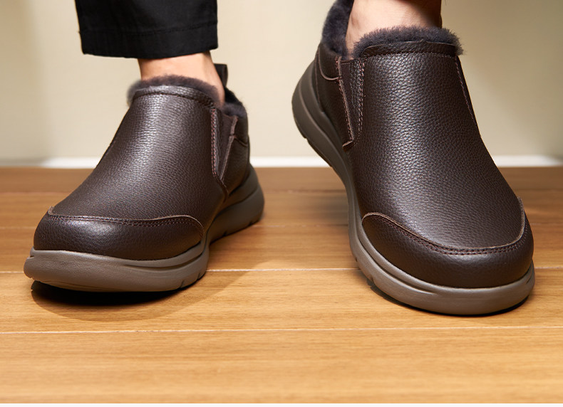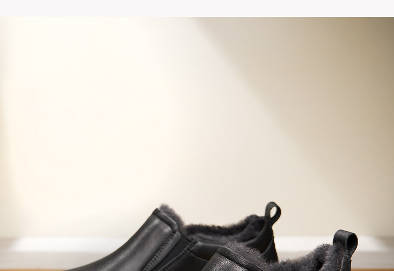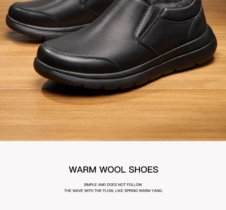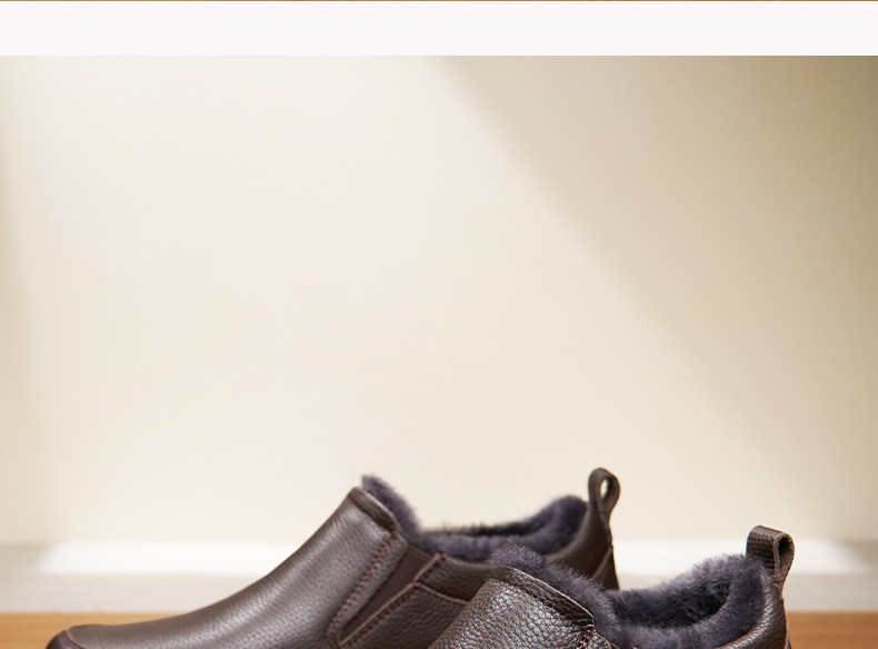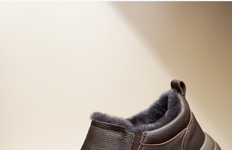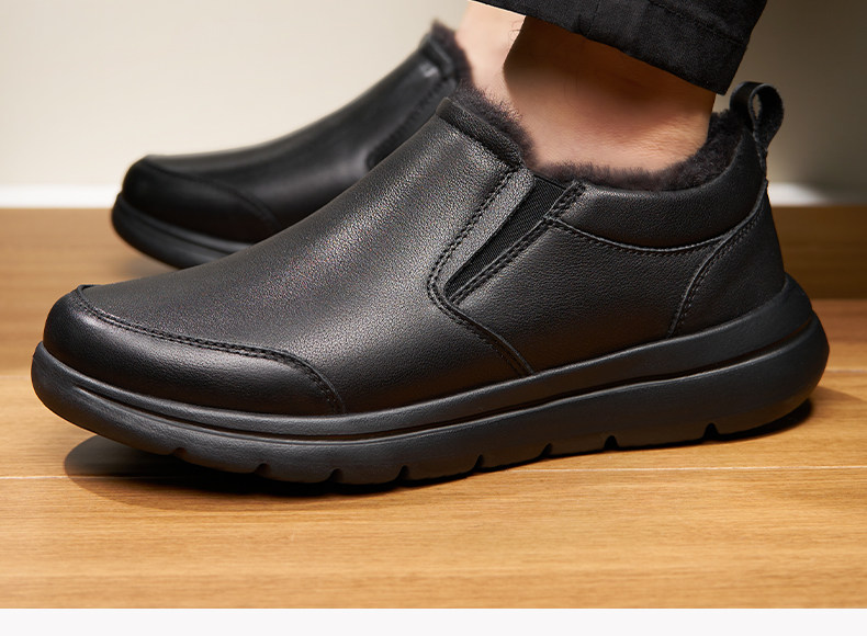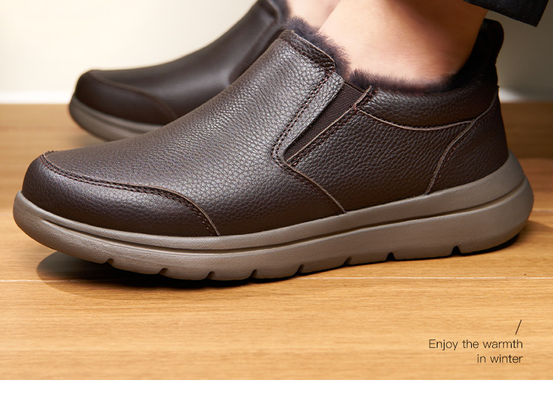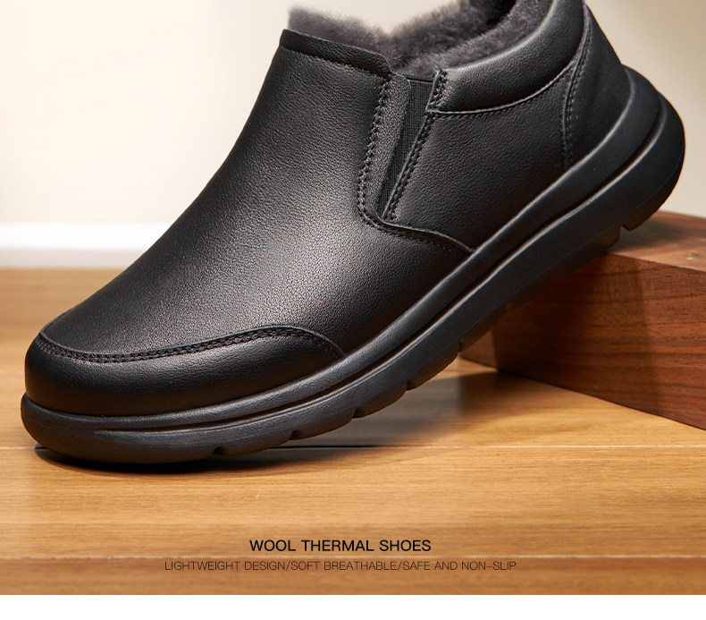 Men's Slip-On Winter Shoes, Leather and Fur Integrated Men's Shoes, Snow Boots, Cotton Shoes, Men's Winter Fleece-Lined Shoes, Warm Cotton Leather Shoes