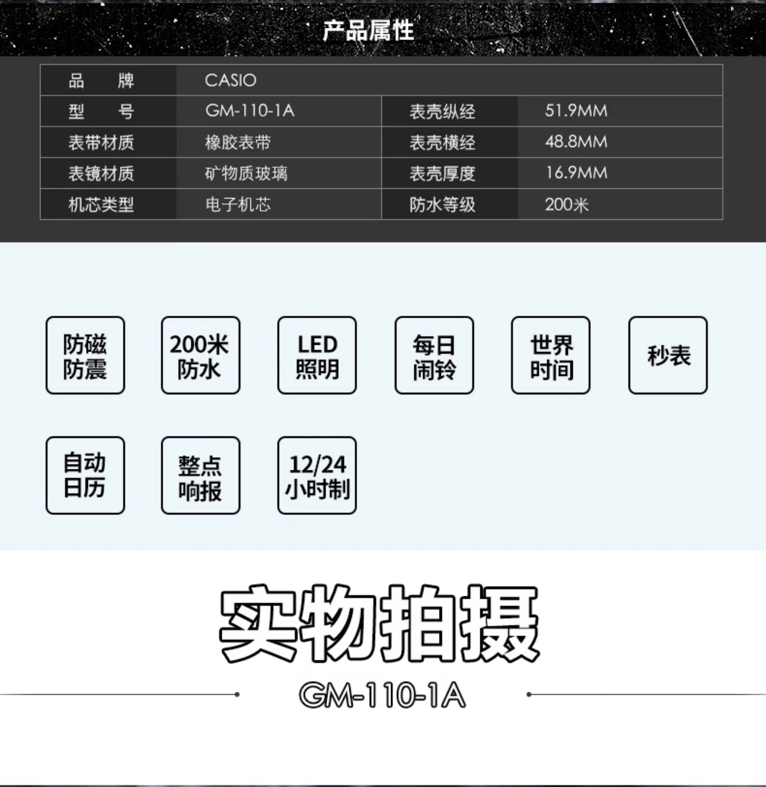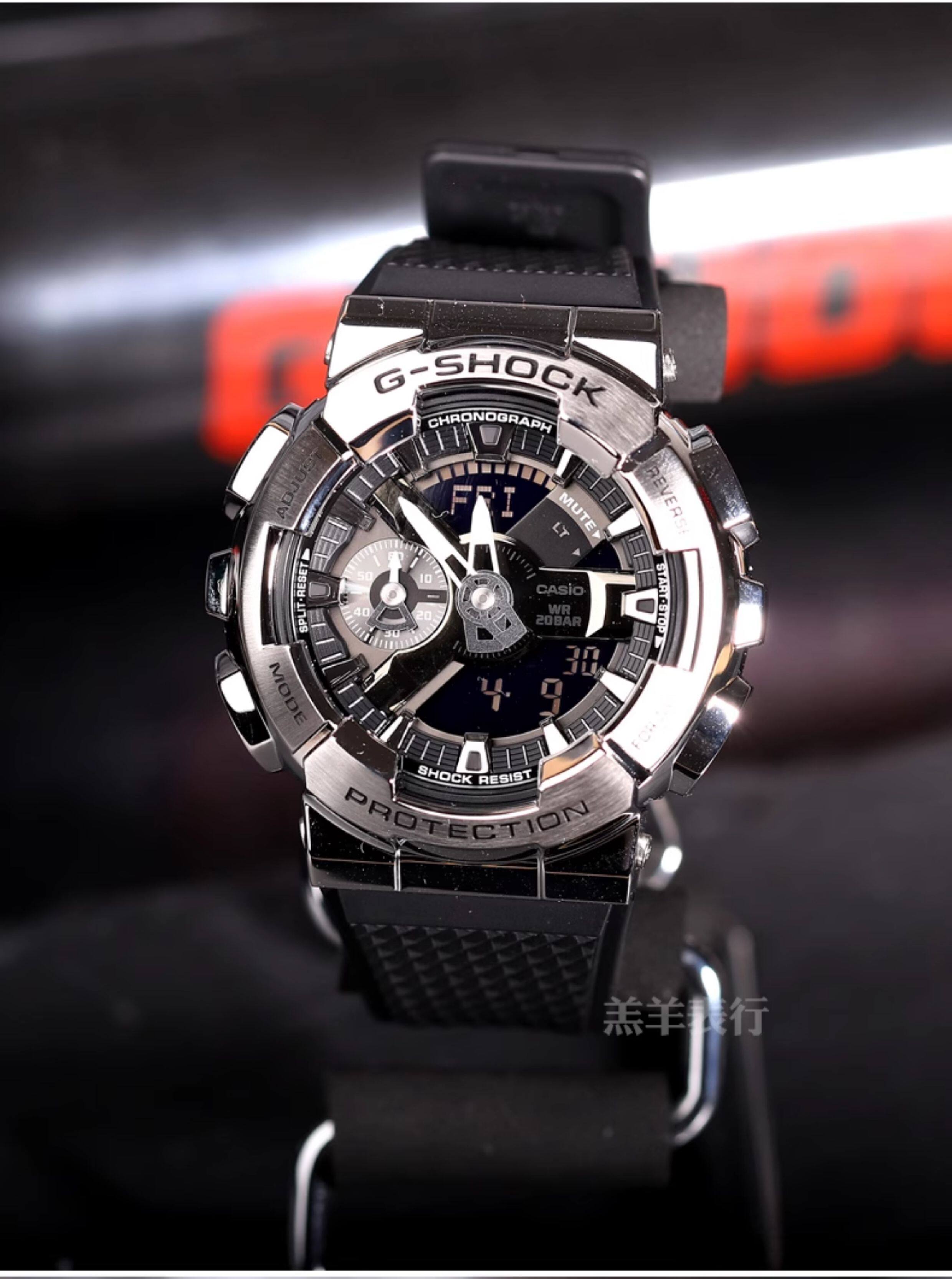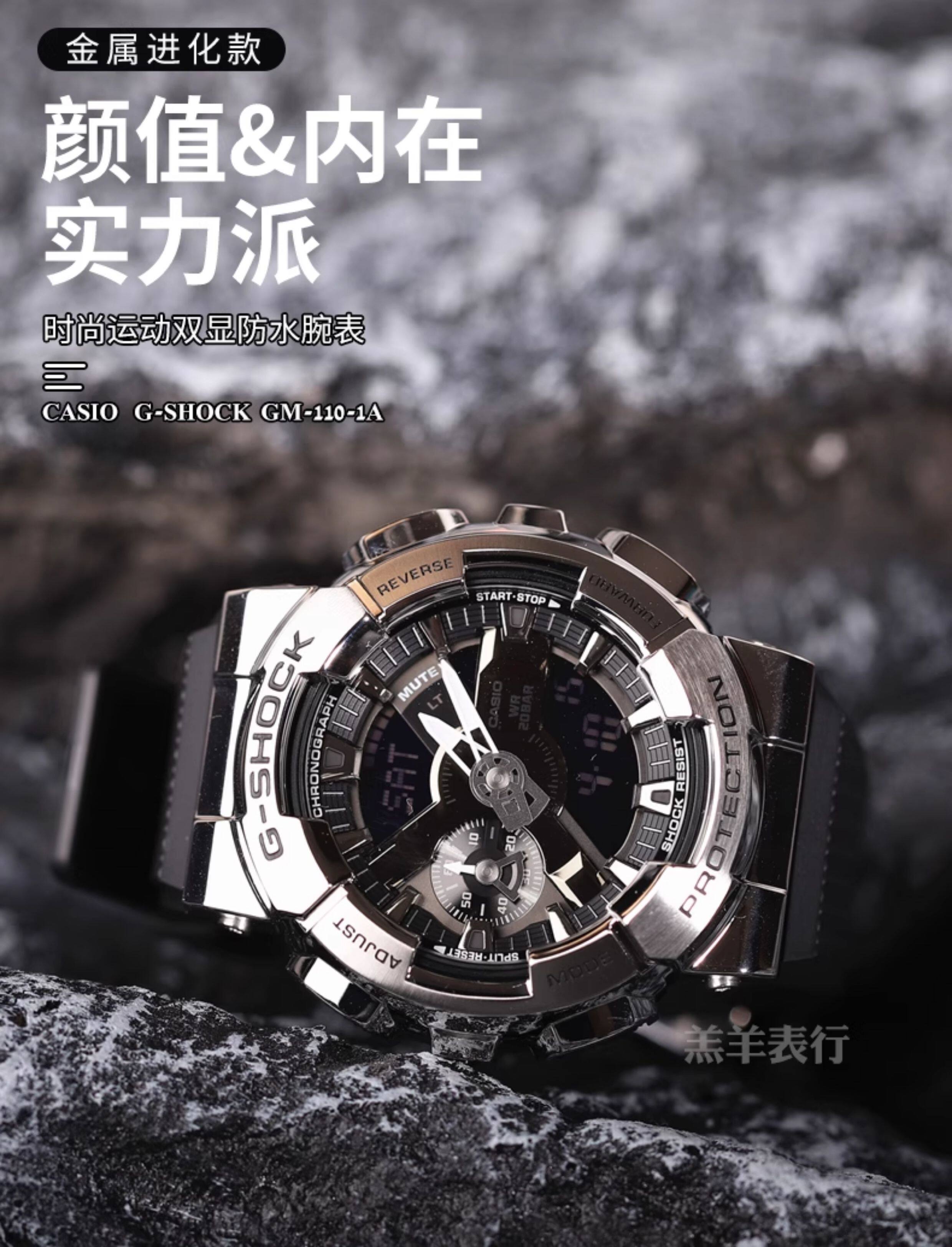 Casio Wang Yibo's Same Model G-Shock Metal Sports Black Neon Waterproof Men's Watch Gm-110-1A/Bb/Vb