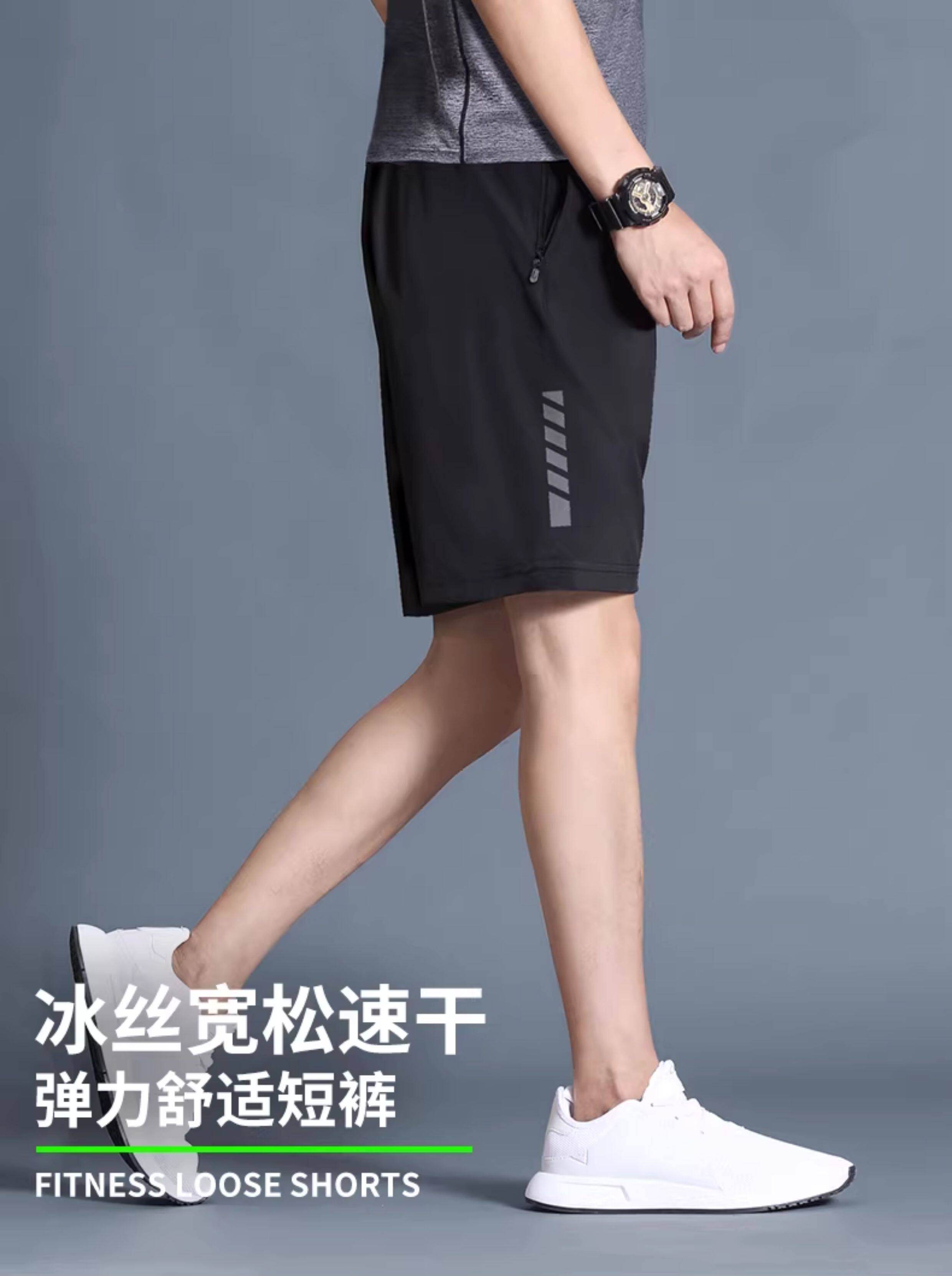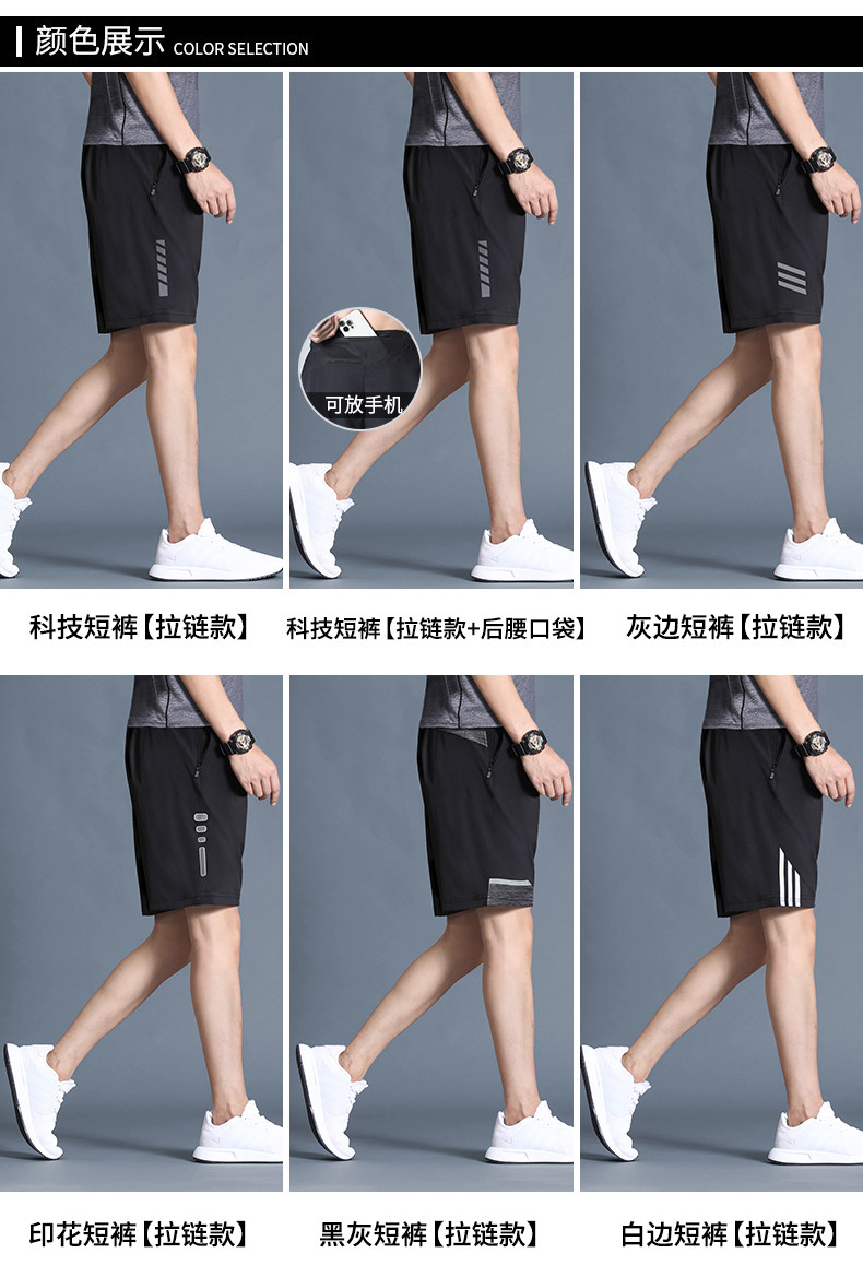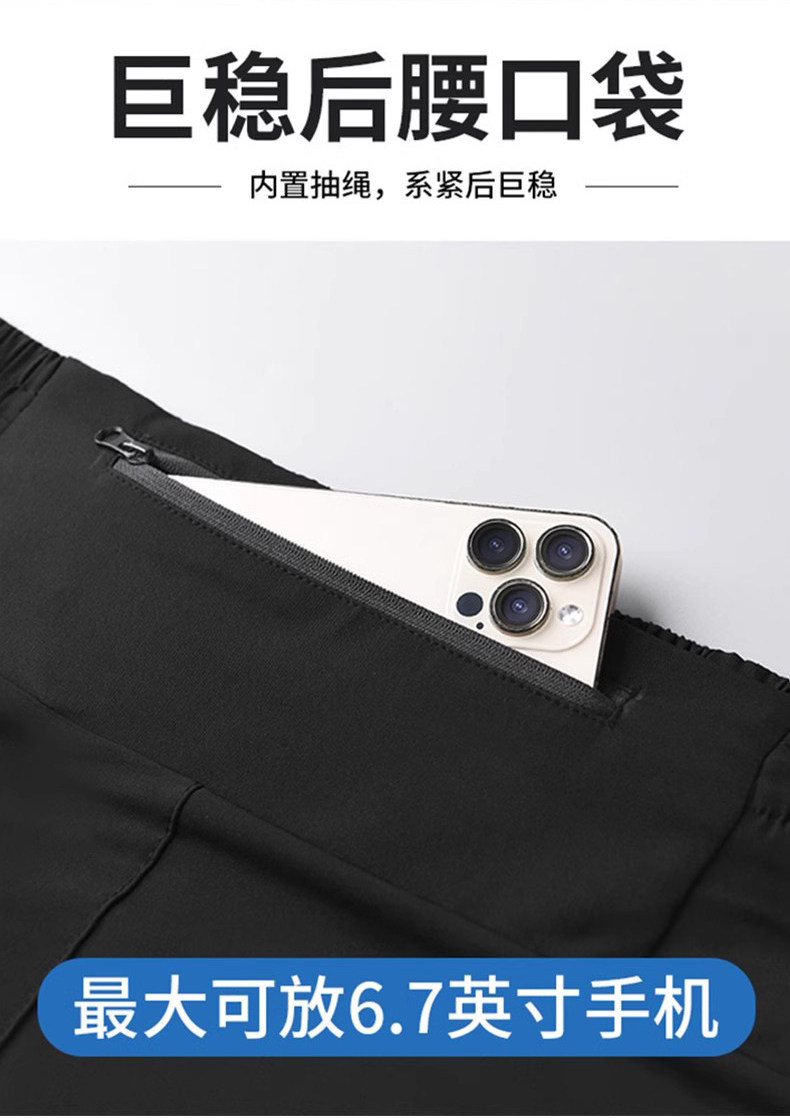 Men's Sports Shorts, Casual, Quick-Drying, Running, Fitness, Ice Silk, Can Hold a Phone, Summer, Marathon, Zipper Pocket, Five-Point Length