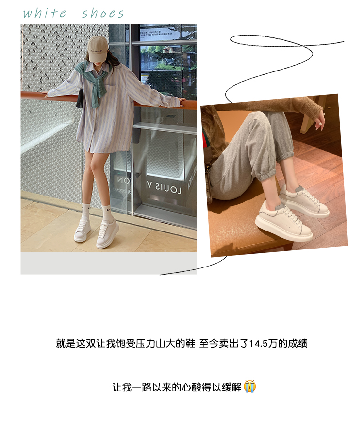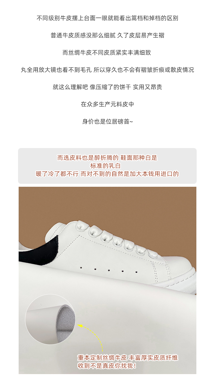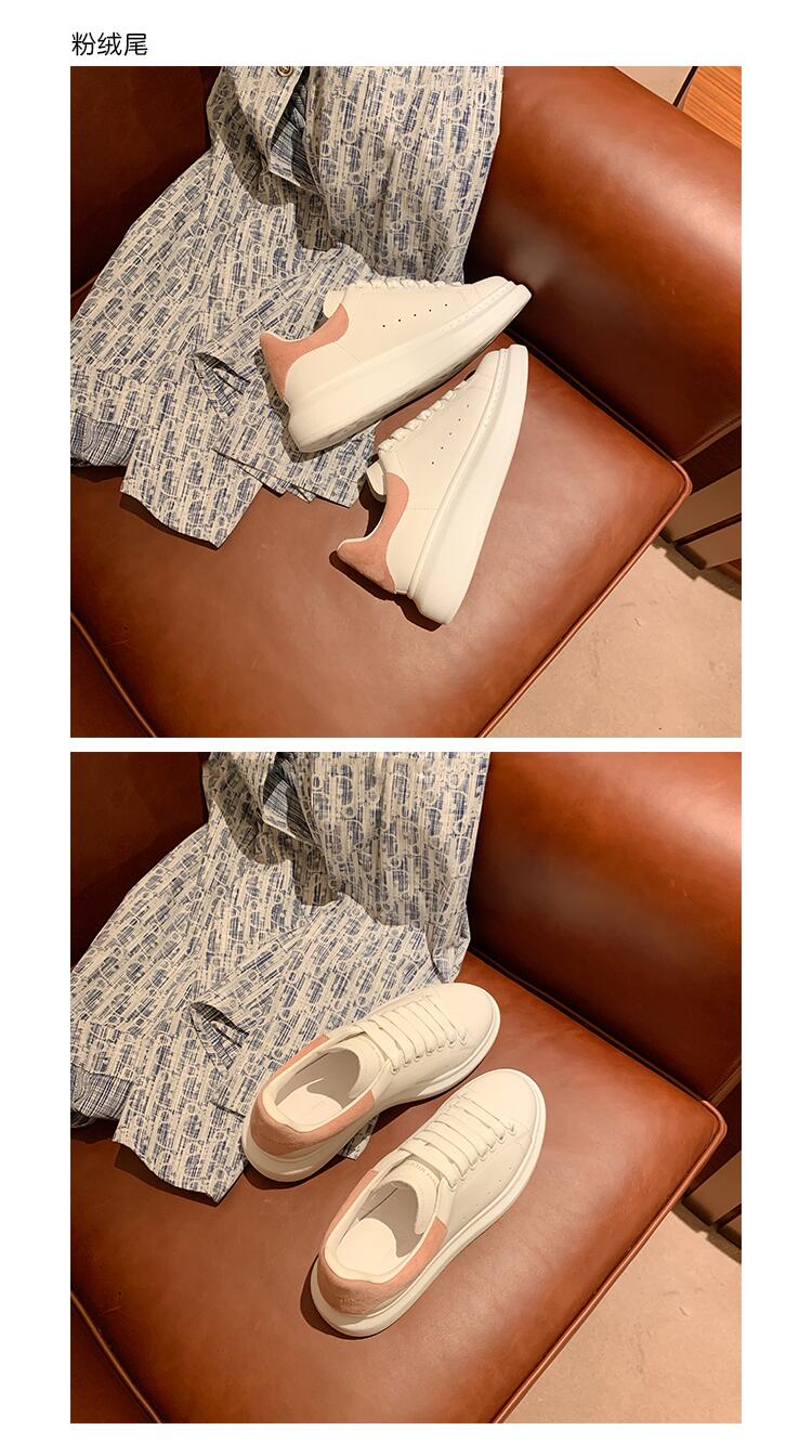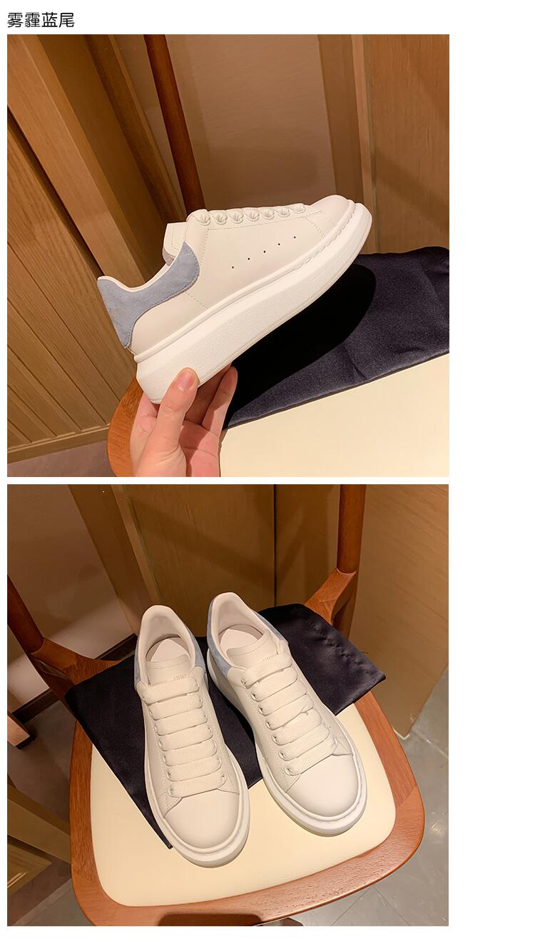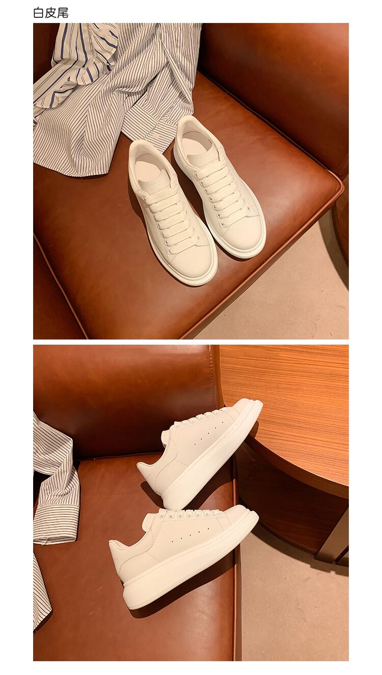 Hong Kong Mcqueen Genuine Leather White Sneakers for Women 2025 Spring and Autumn New Lace-Up Casual Fashion Platform Thick-Soled Sneakers Korean Version
