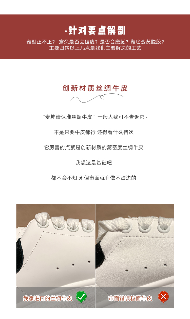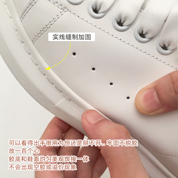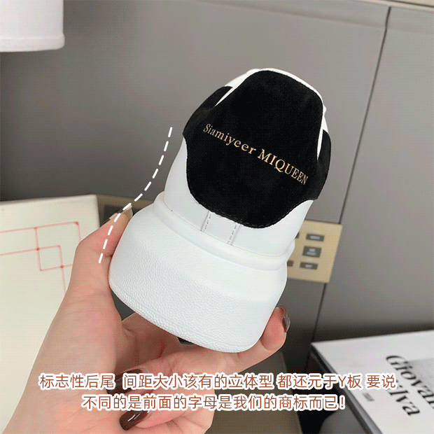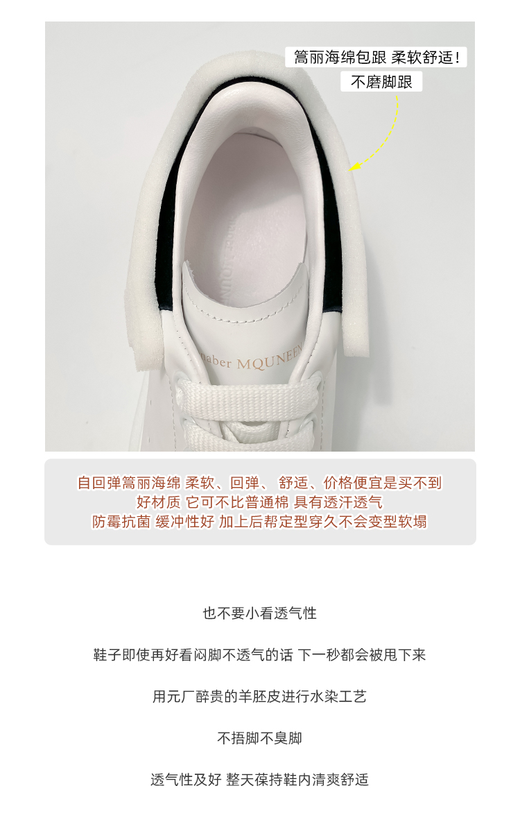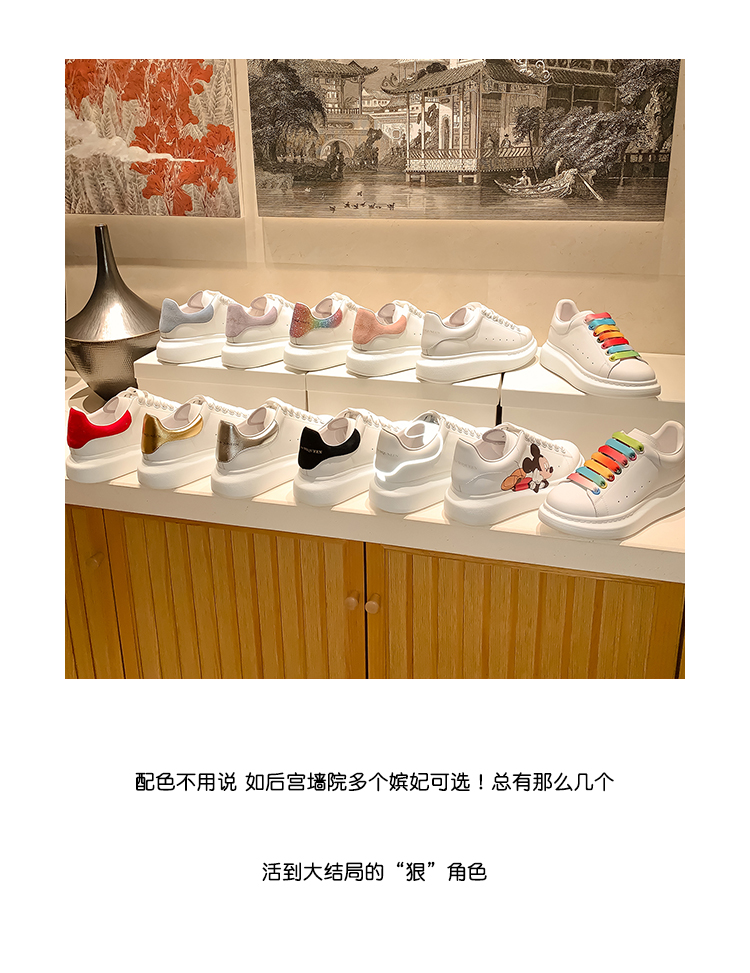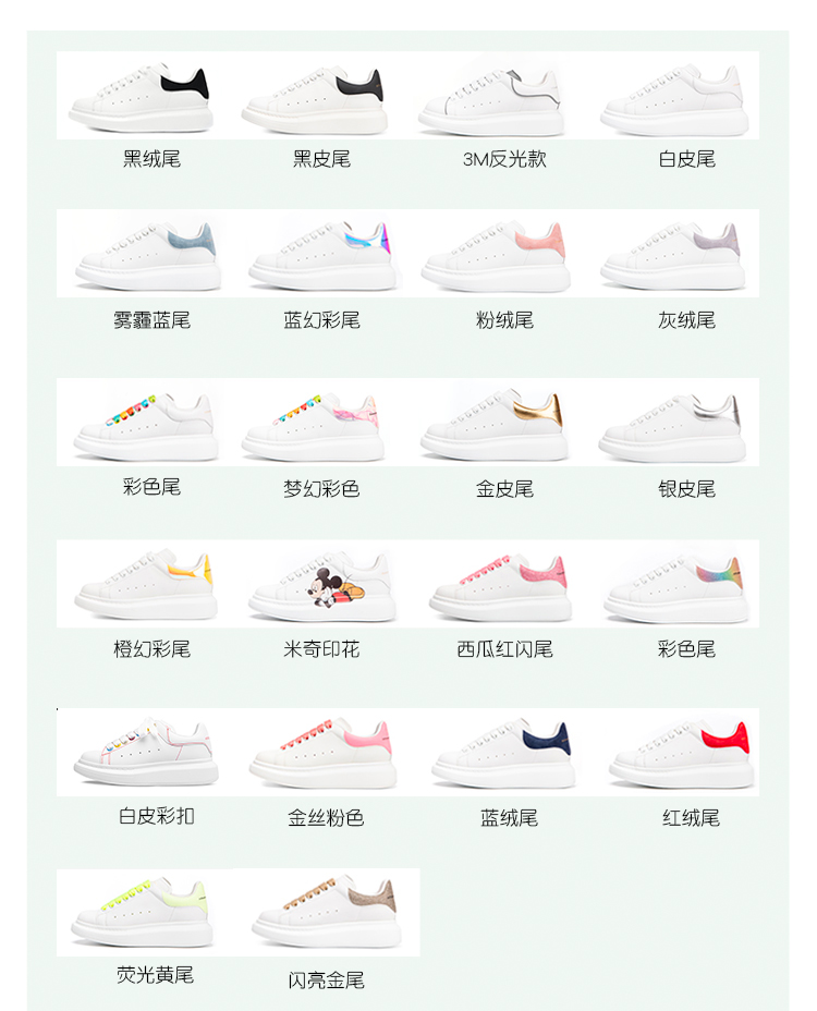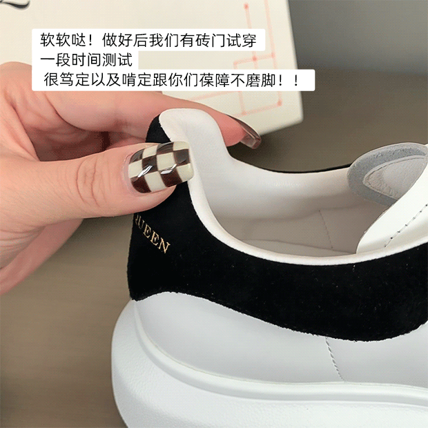 Hong Kong Mcqueen Genuine Leather White Sneakers for Women 2025 Spring and Autumn New Lace-Up Casual Fashion Platform Thick-Soled Sneakers Korean Version