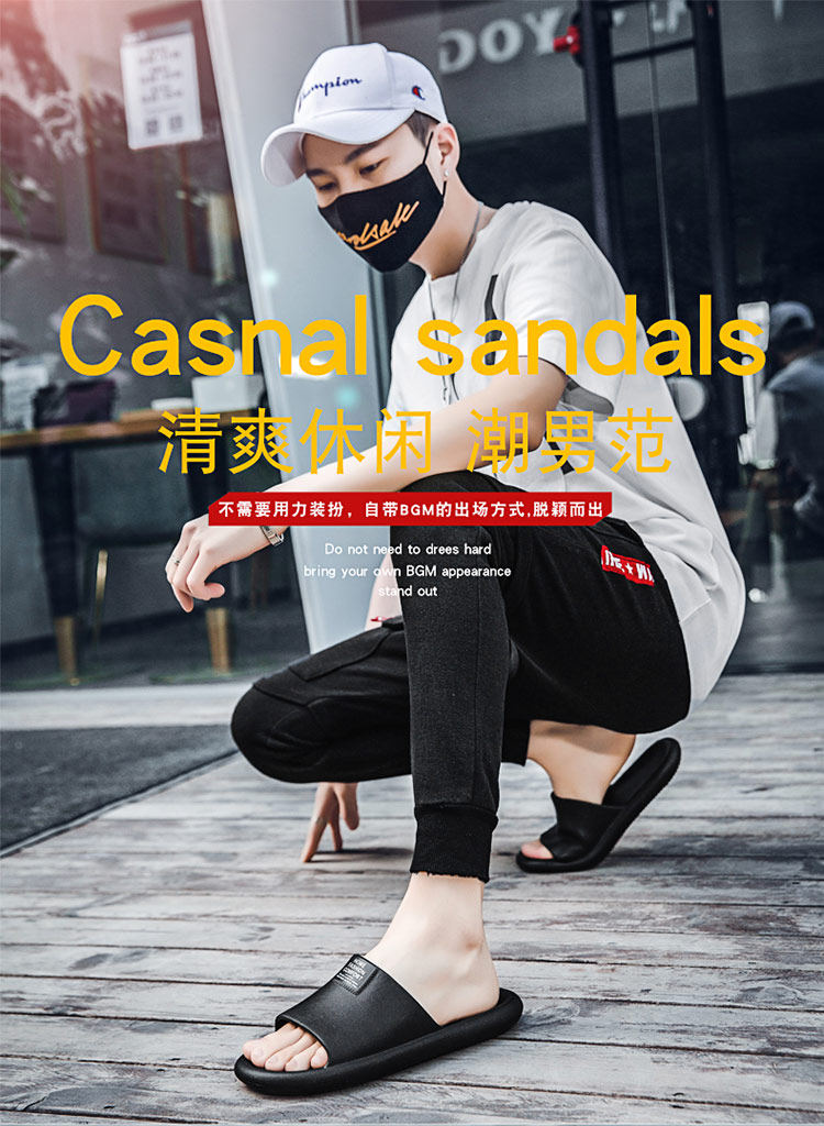 Men's Slippers soft sole Trendy Sports and Leisure Indoor Bathing Non-Slip Anti-Odor Wear-Resistant Flat Sandals Outdoor Beach