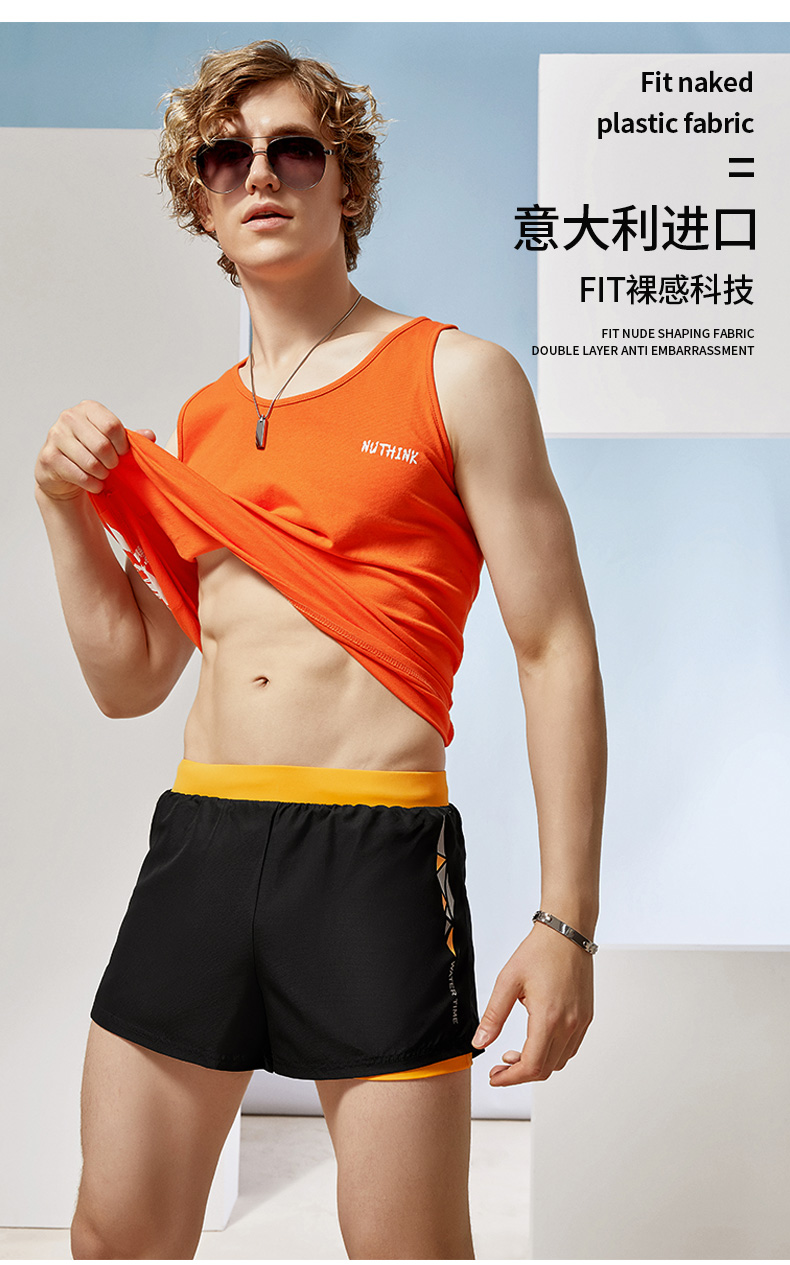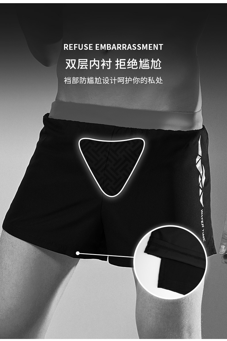 Watertime Swimming Trunks for Men, Double-Layered, Anti-Embarrassment, Quick-Drying, Professional Swimwear, Boxer-Style Sports Beach Pants Set