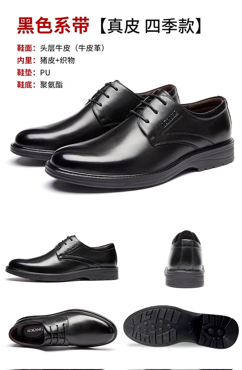 Aokang Men's Shoes 2025 Autumn/Winter New Business Shoes Soft Sole Casual Lace-Up Round Toe Formal Height-Increasing Leather Shoes Men's Footwear