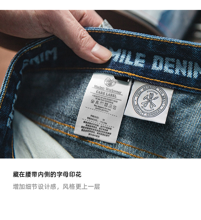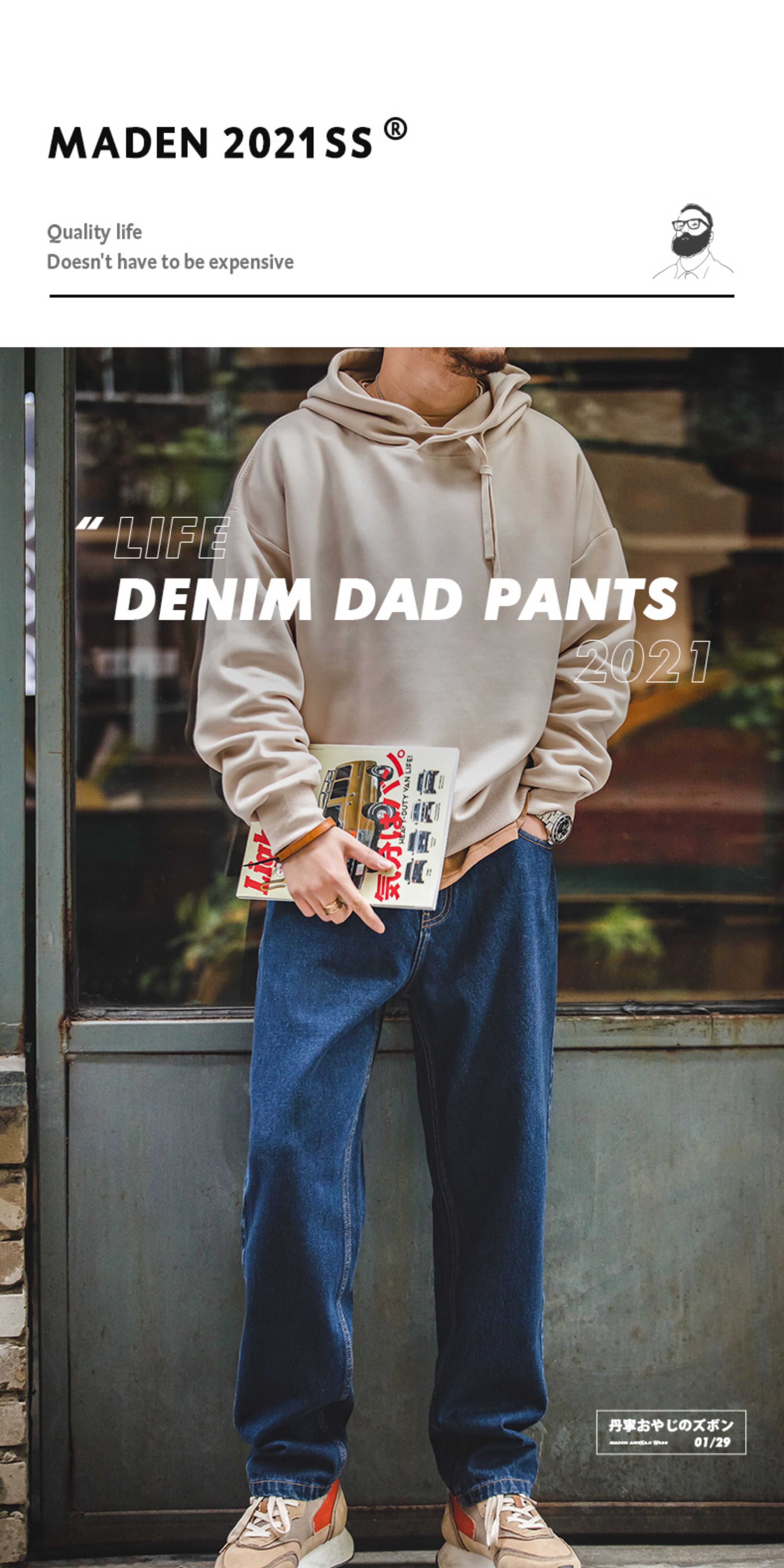 Madden Workwear American-Style Washed Denim Soft Jeans Nine-Point Straight-Leg Dark Blue Loose Casual Long Pants for Men Autumn