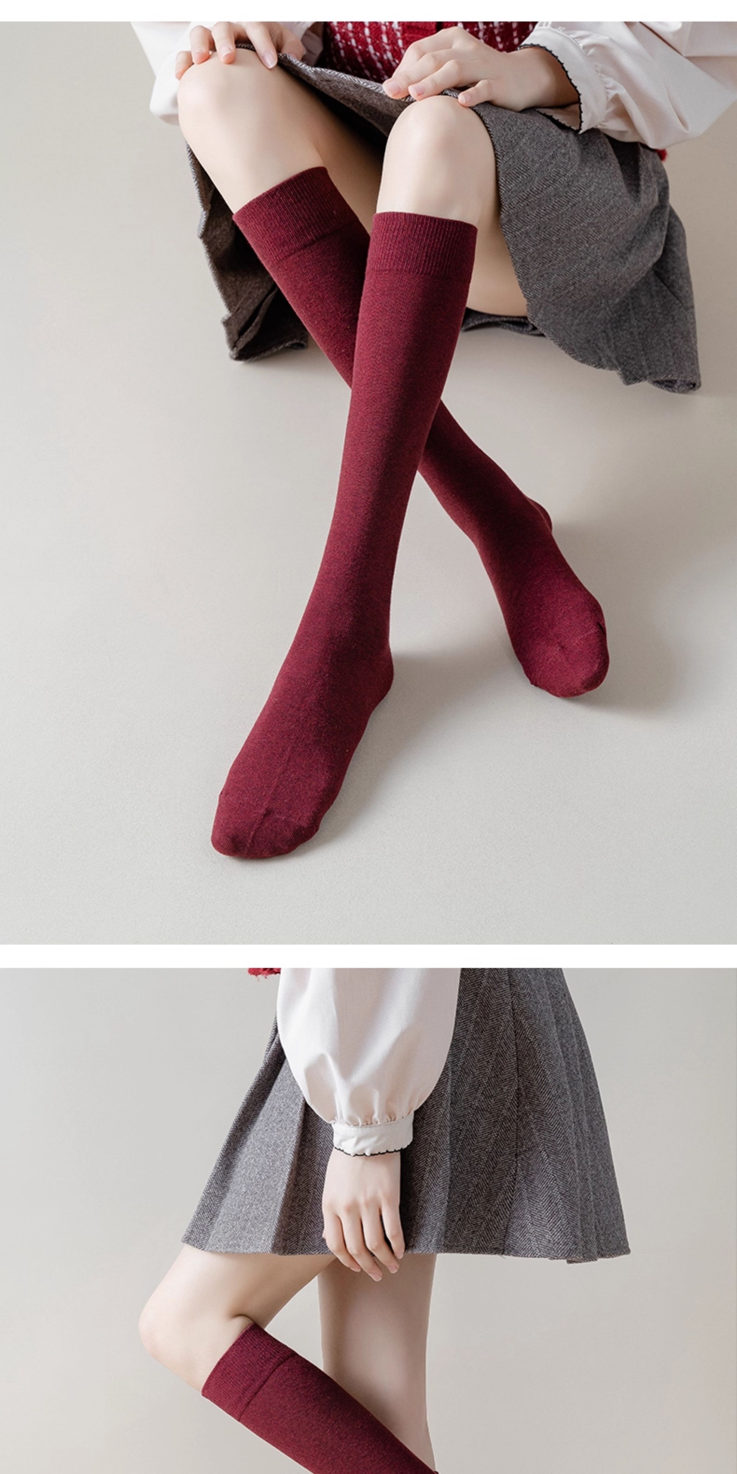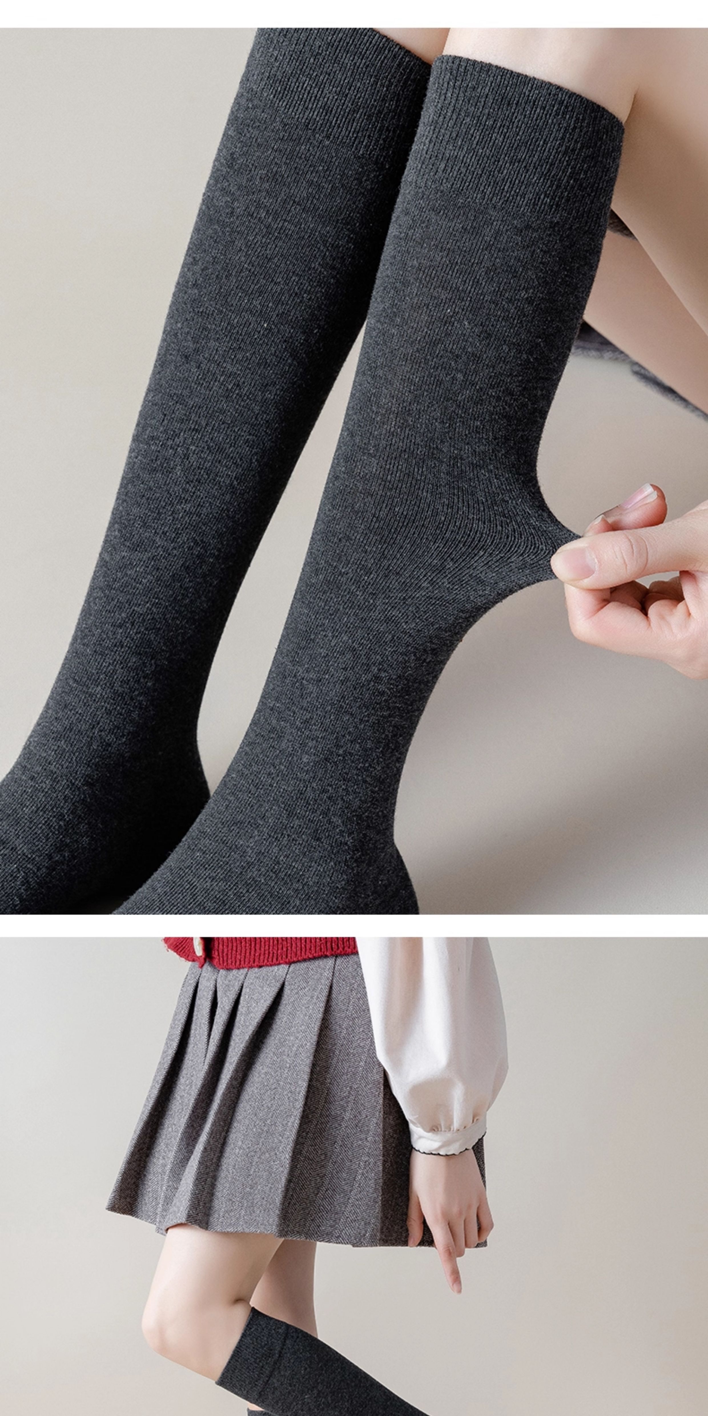Women's Calf Socks for Spring, Autumn, and Winter, Japanese Style, Full Cotton, Jk Mid-Length Socks, Pure Cotton, Black, Summer Knee-High Socks for Women